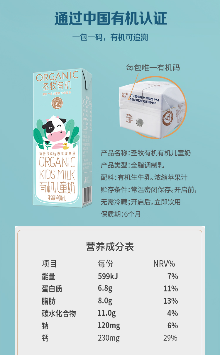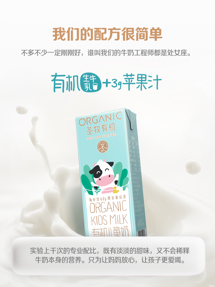 【79.9到手一件!圣牧有机苹果汁儿童奶】甄选品质原料,源自内蒙古巴彦淖尔有机牧场,每份添加3g苹果汁,儿童营养搭配优选, 每份6.8g原生蛋白,圣牧有机儿童奶怎么选都对L
