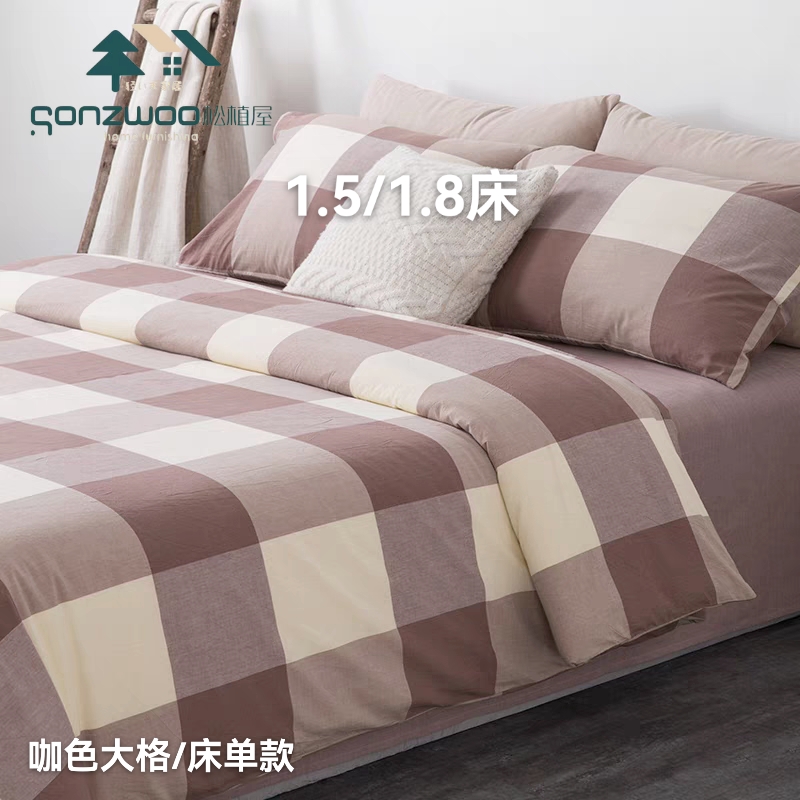 松植屋简约日式A类100%全棉水洗棉四件套床单被罩双人加大 高温水洗双面热烫工艺 久洗不易变形不易缩水