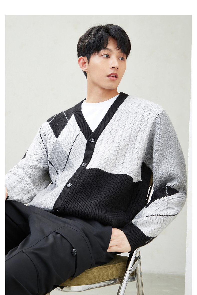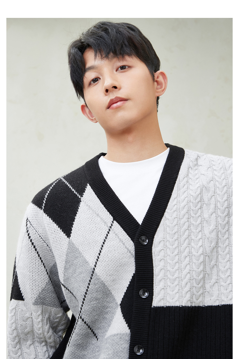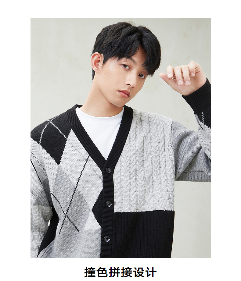 gxg.jeans男装春季热卖圆领撞色拼接开襟毛衫JFD13000511