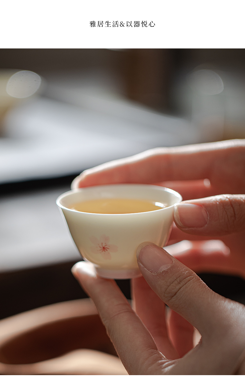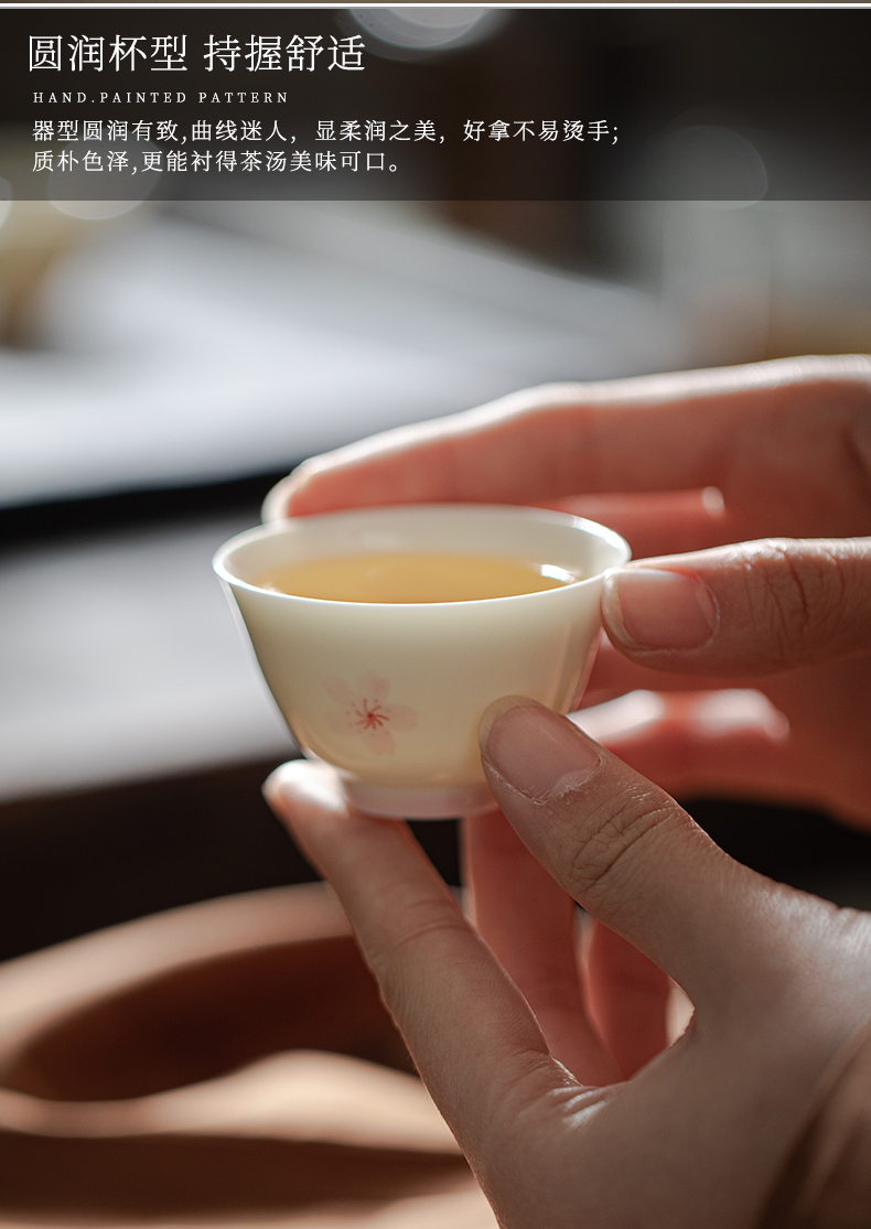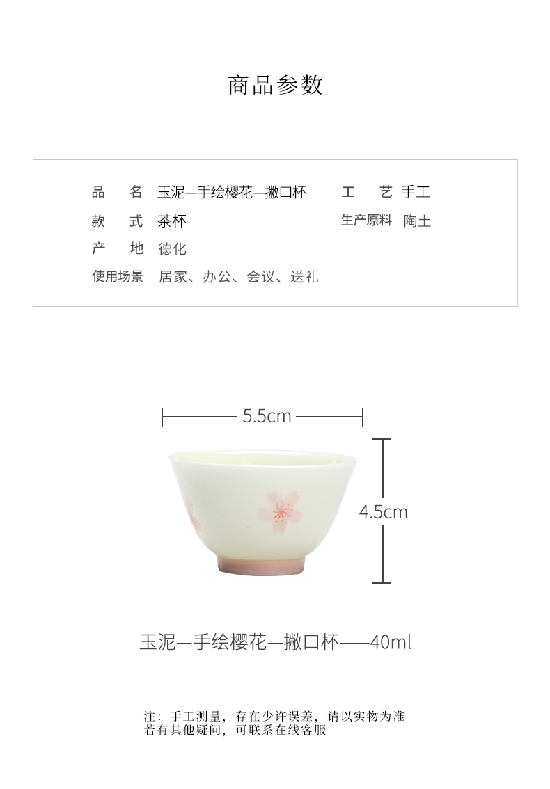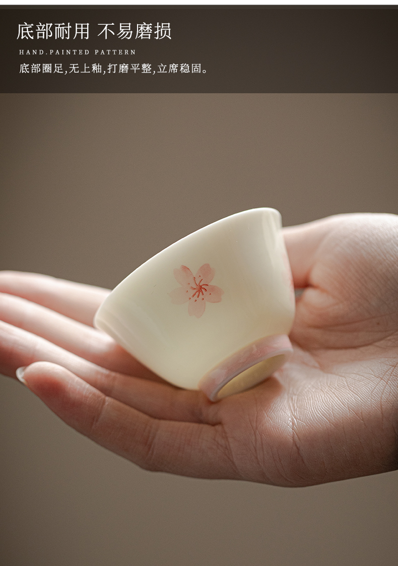 束刻/玉泥/手绘樱花撇口杯茶杯浪漫手绘粉色樱花白瓷品茗杯家用小清新个人喝茶陶瓷单杯
