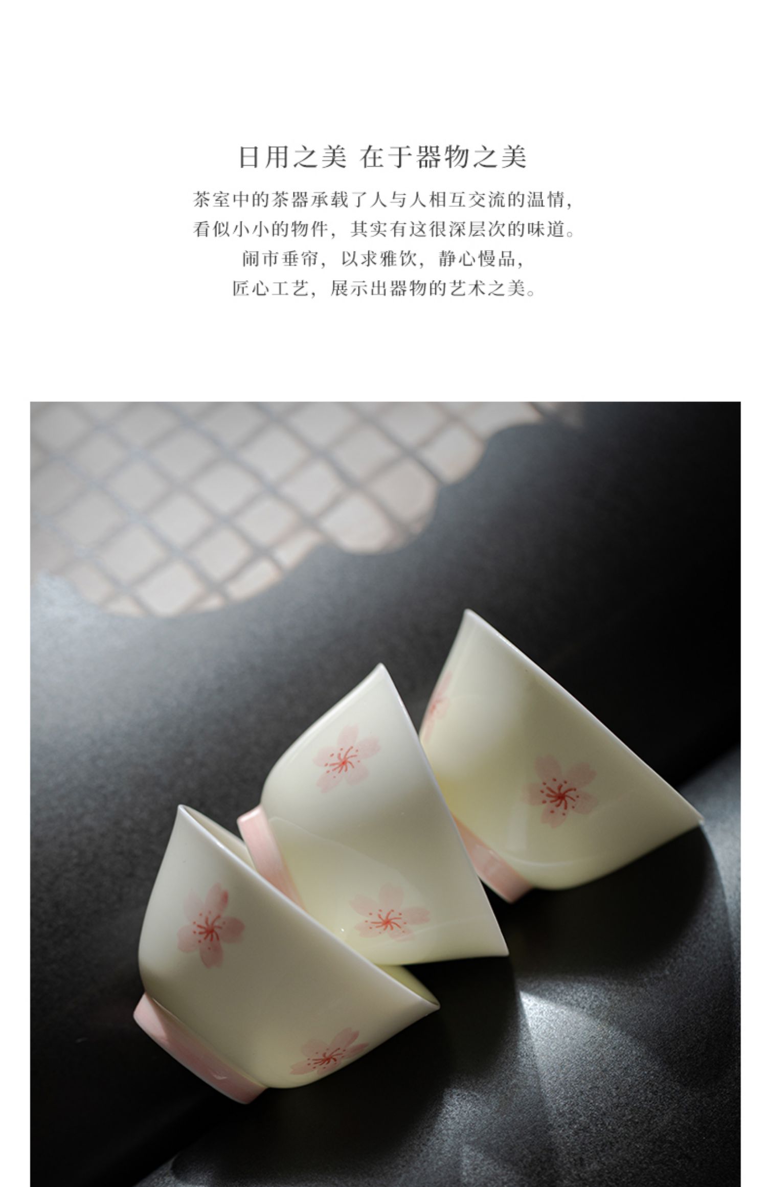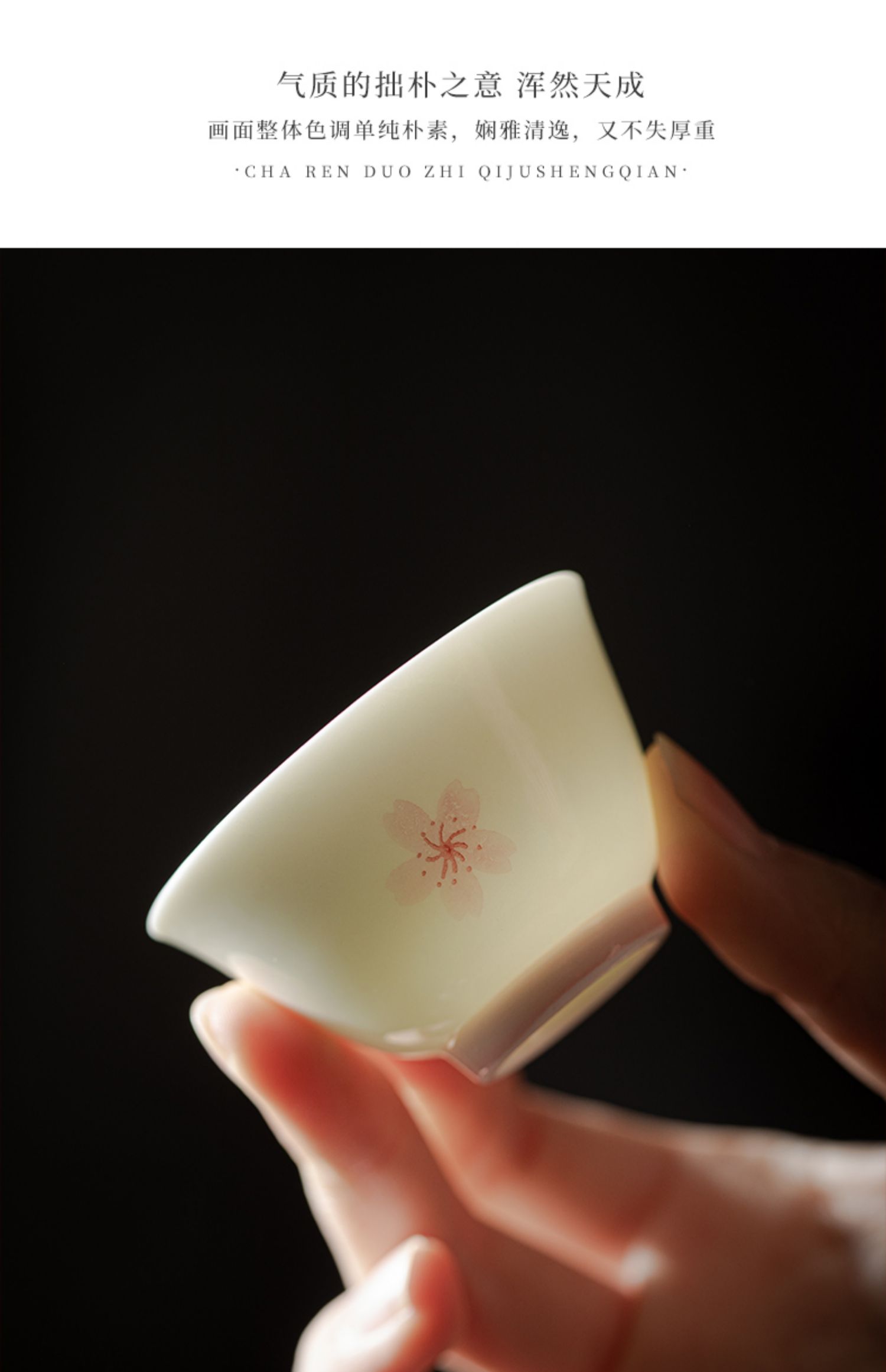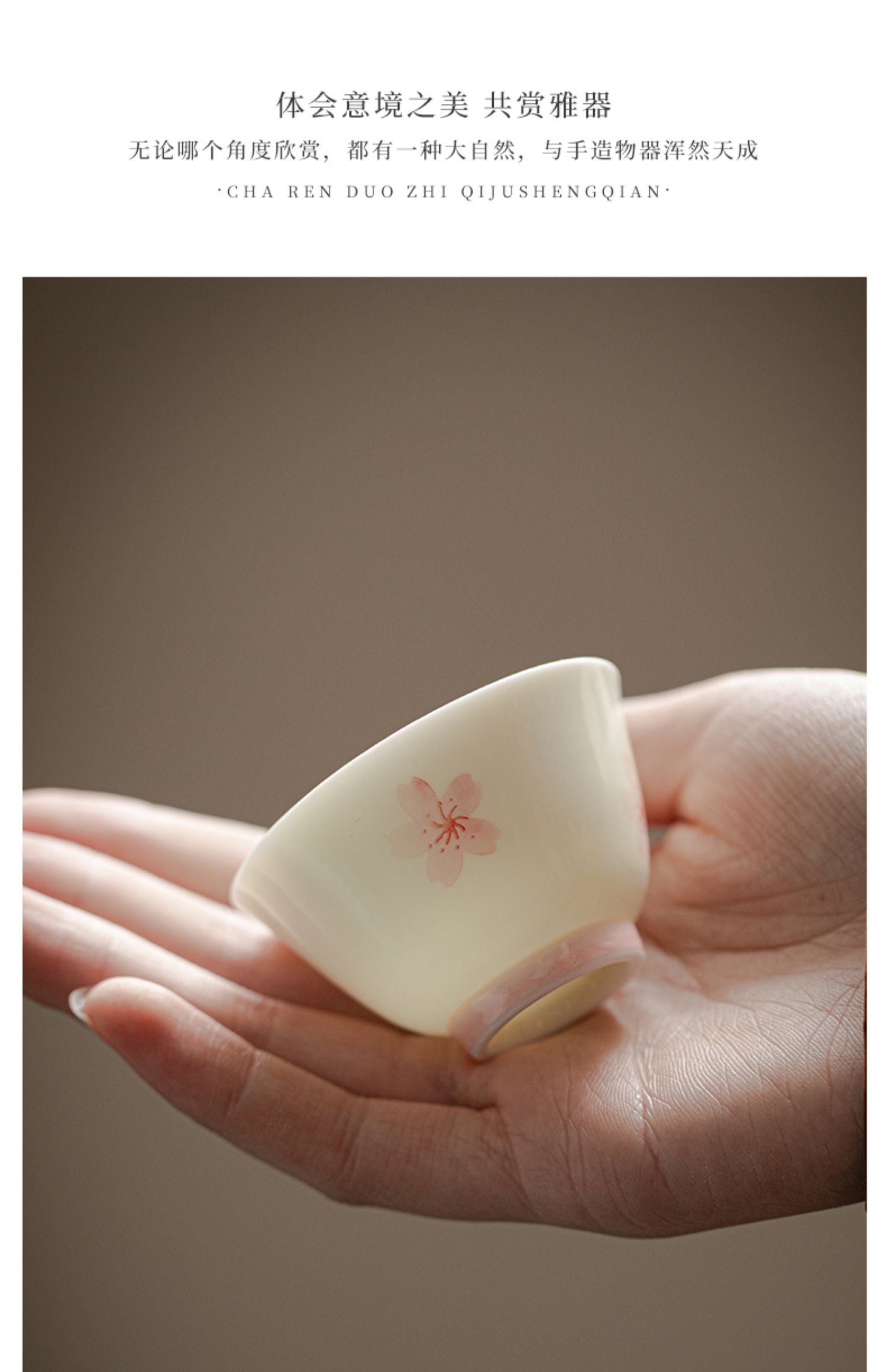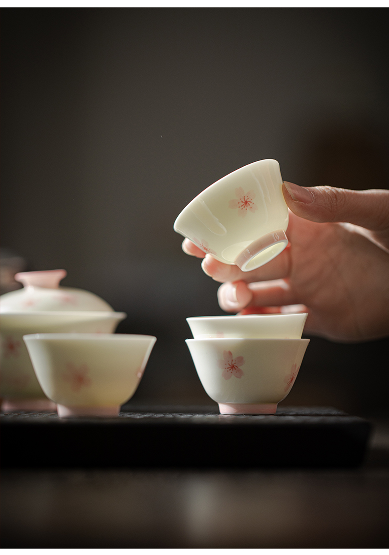 束刻/玉泥/手绘樱花撇口杯茶杯浪漫手绘粉色樱花白瓷品茗杯家用小清新个人喝茶陶瓷单杯