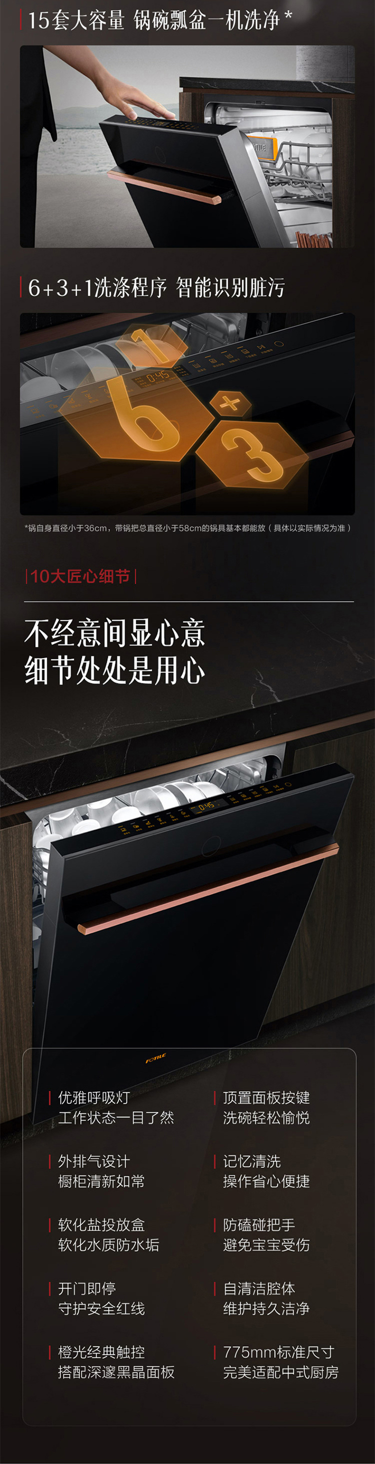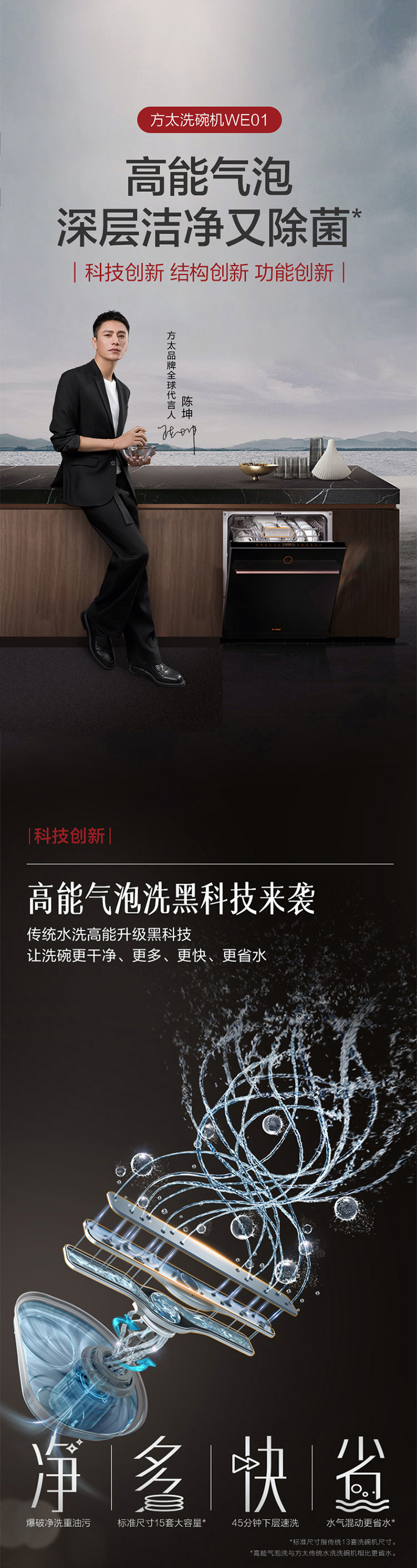 方太洗碗机嵌入式家用高能气泡洗15套洗消烘一体JBCD15E-WE01大容量洗碗机 嵌入式WE01洗碗机