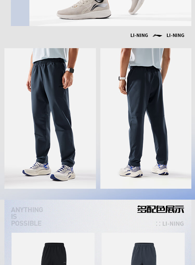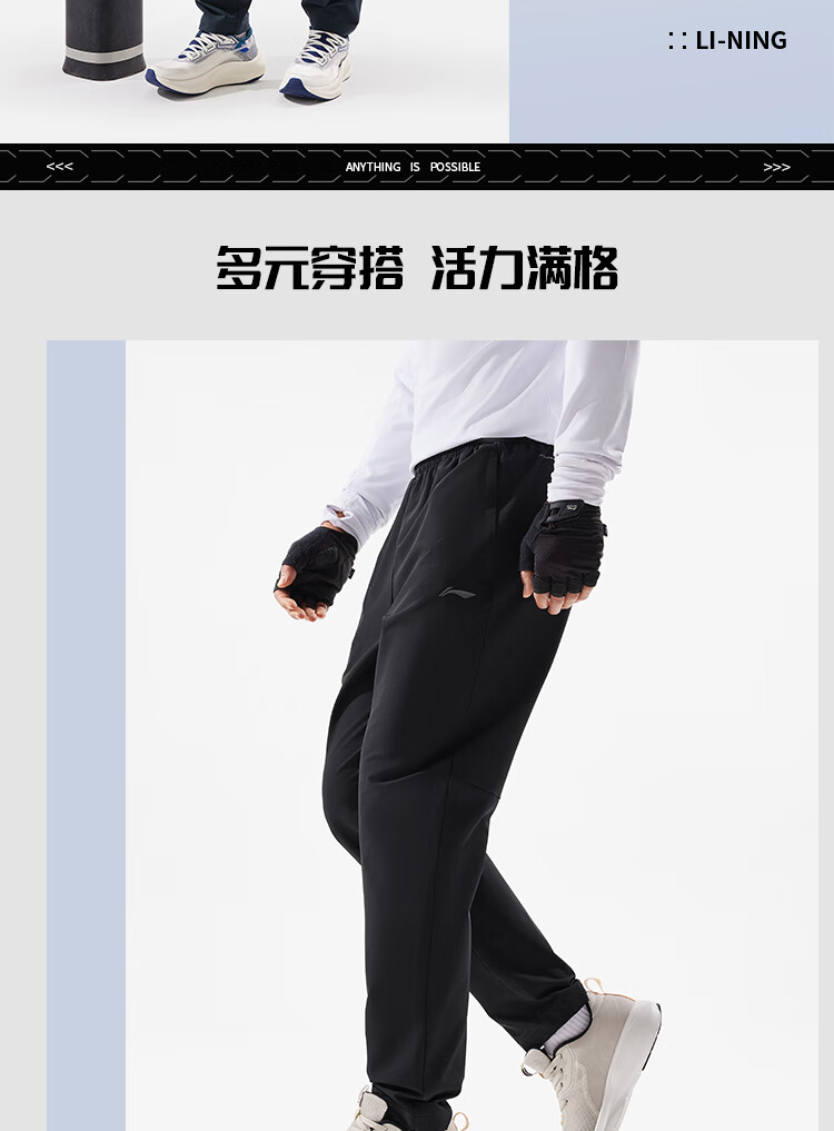李宁直筒运动长裤男春季新款健身系列时尚潮流休闲裤AYKV055