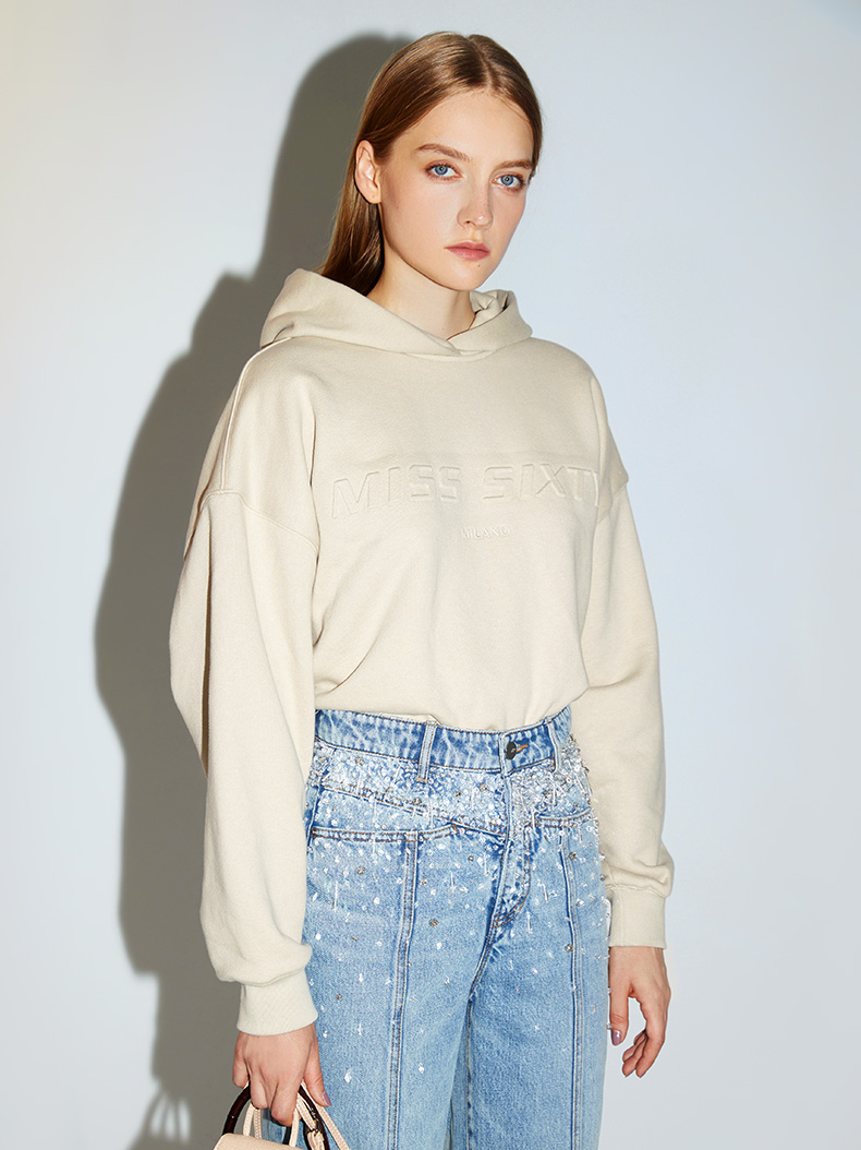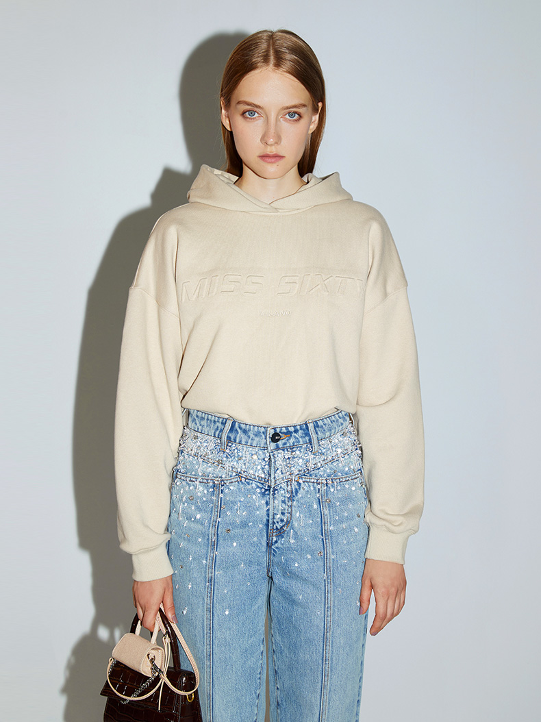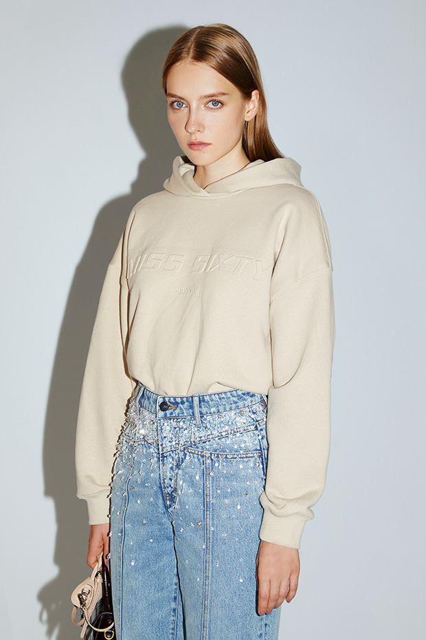 Miss Sixty2020冬季新款纯棉连帽字母抽褶套头卫衣女604TJ0270000