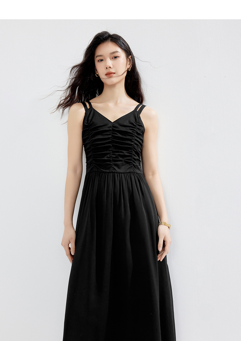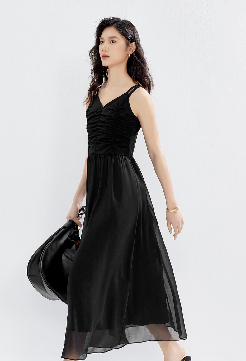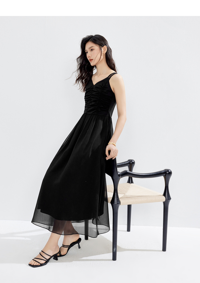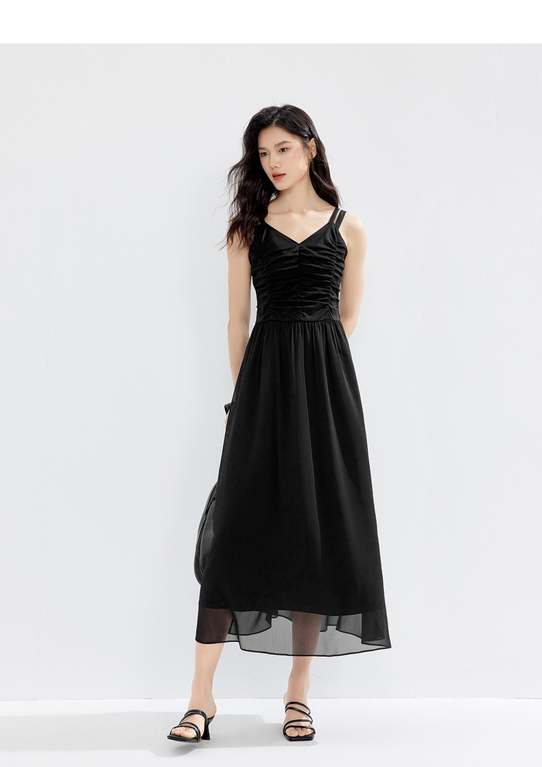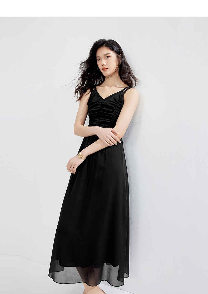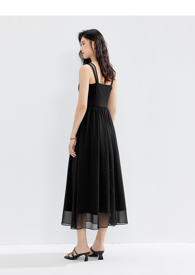 【严选】伊芙丽浪漫设计感假两件透感飘逸感吊带长款连衣裙2024夏装新款1F4992411