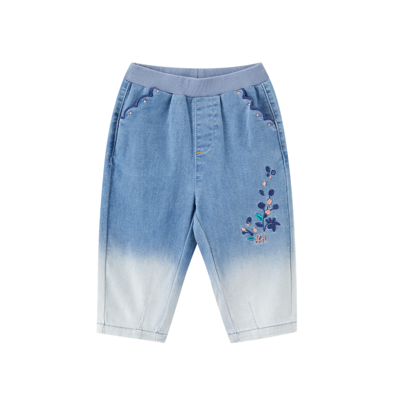 英氏女童牛仔裤儿童渐变刺绣时尚裤子超萌长裤22新品YRKCJ12189A