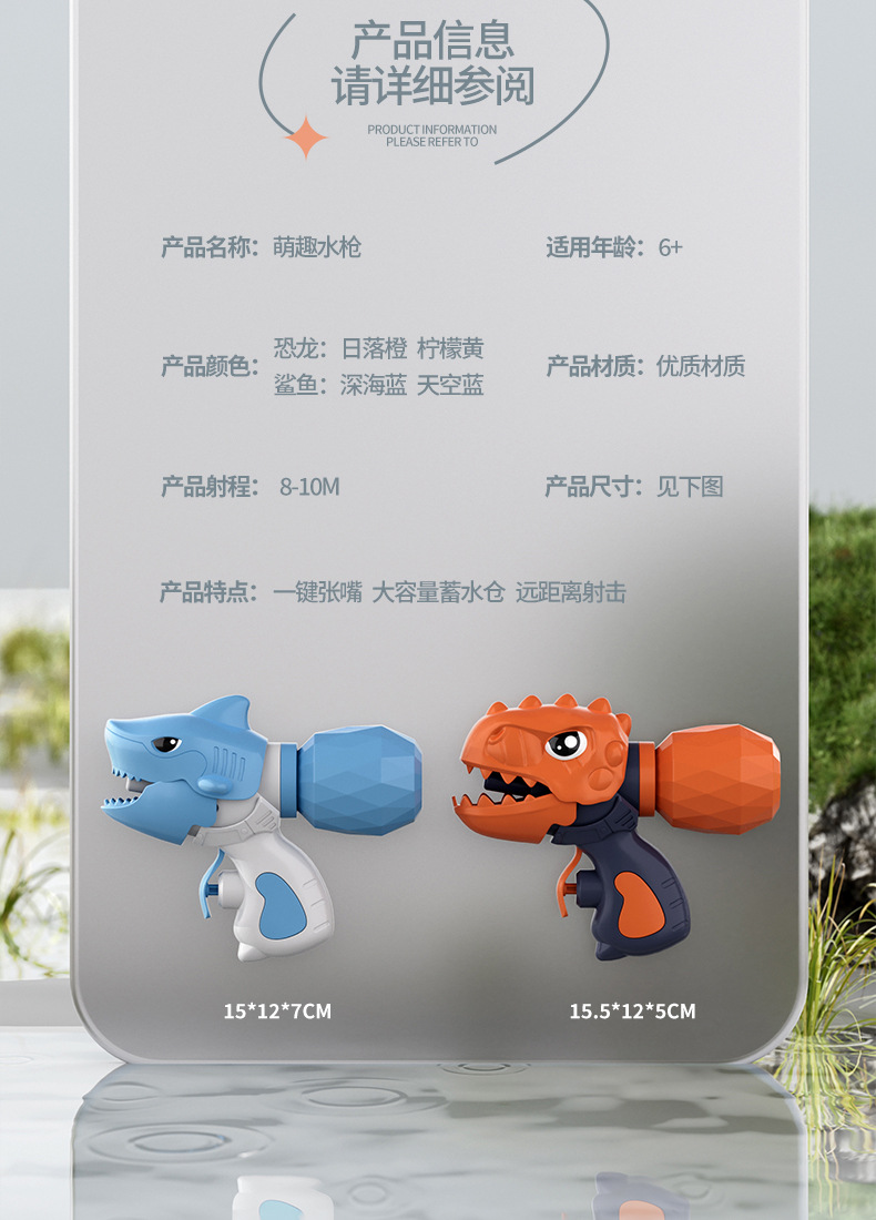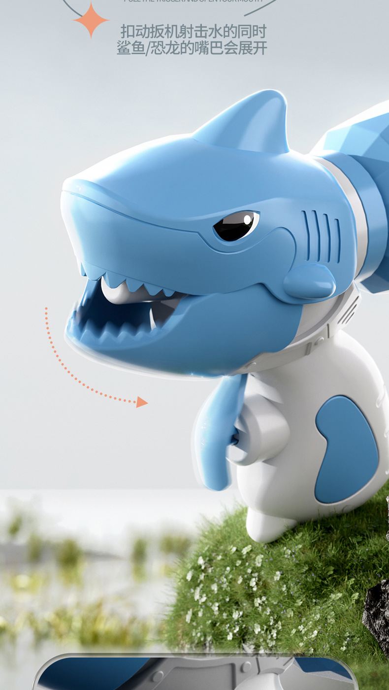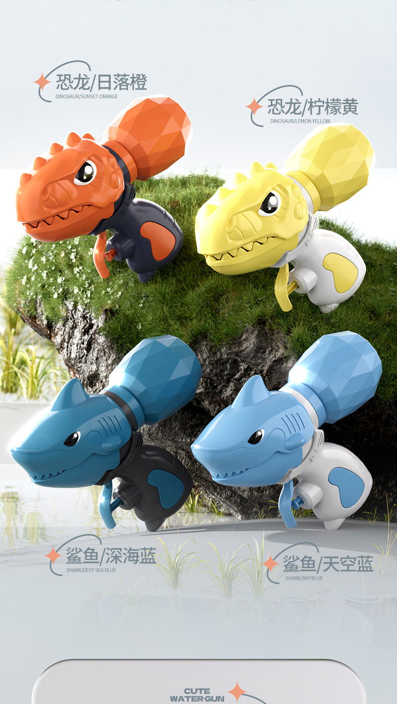【新款迷你儿童恐龙手动小水枪】夏季滋水枪 鲨鱼萌趣按压喷戏水枪玩具