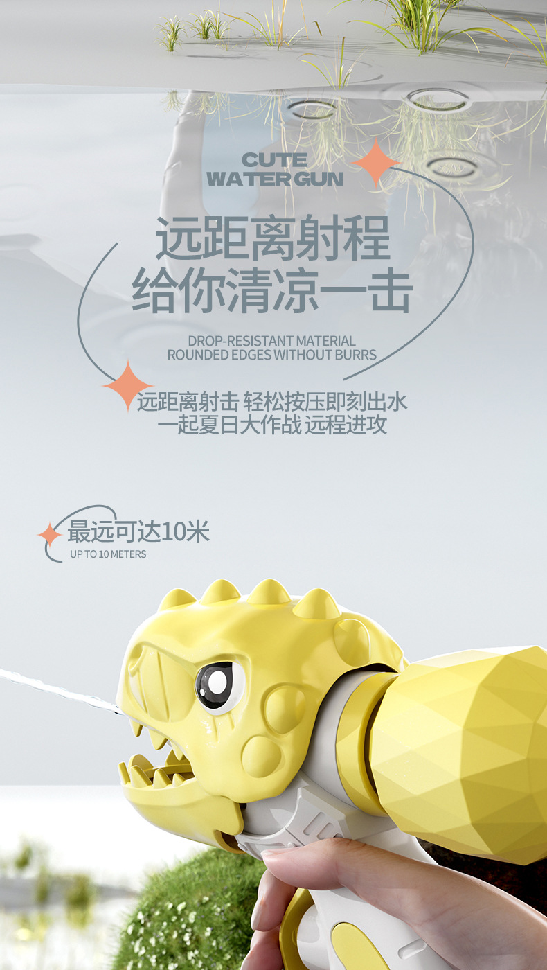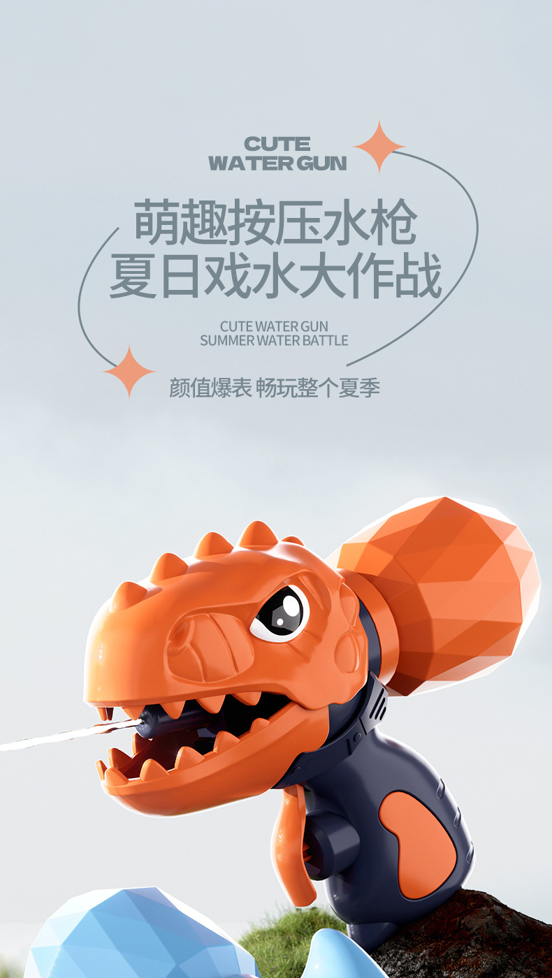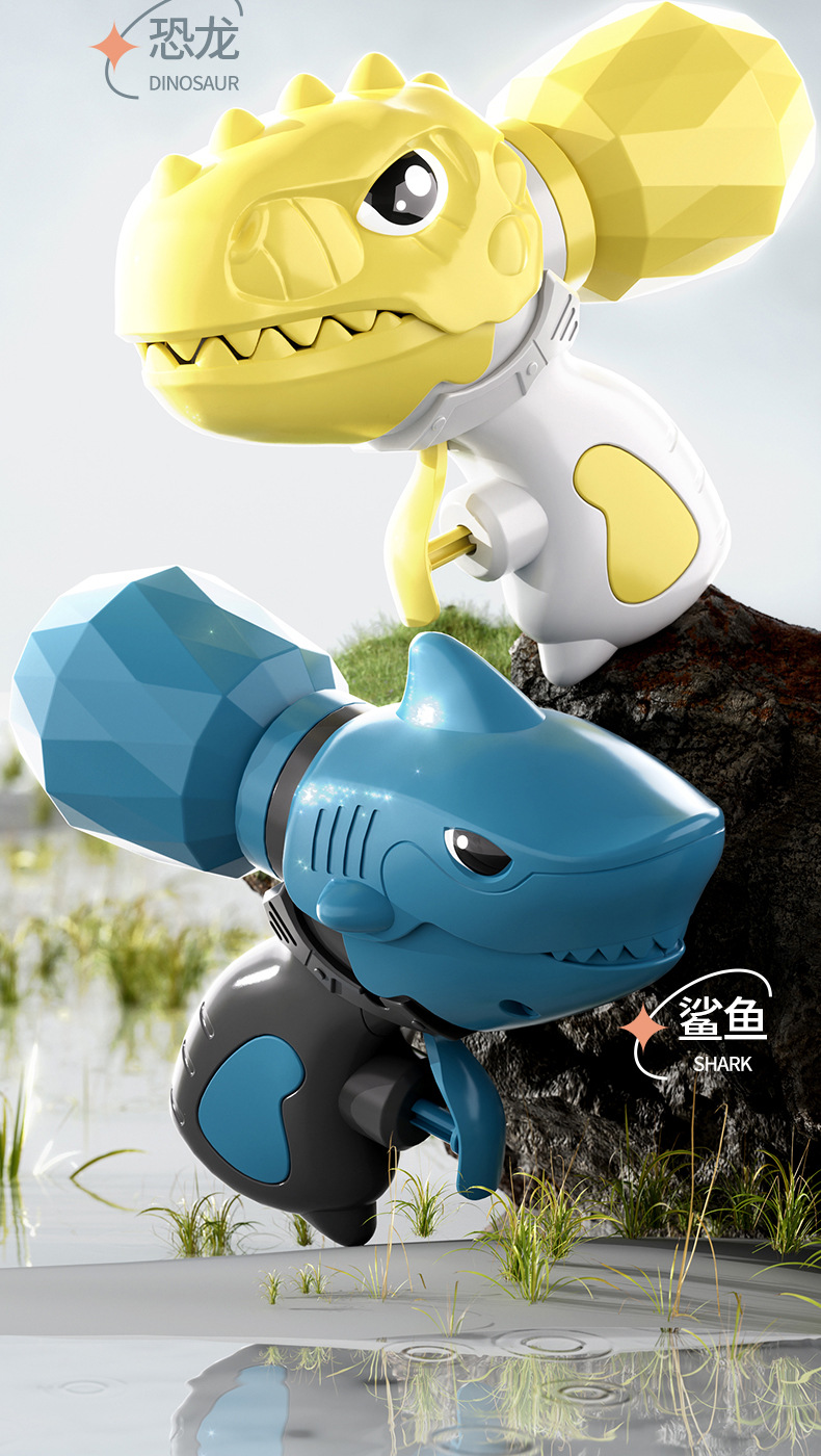 【新款迷你儿童恐龙手动小水枪】夏季滋水枪 鲨鱼萌趣按压喷戏水枪玩具