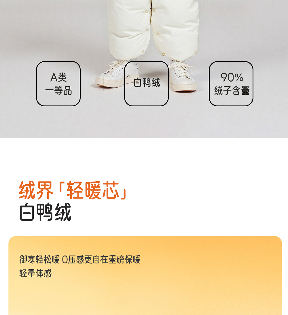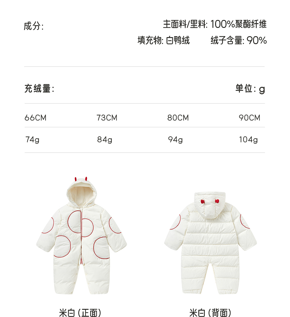 【高定系列】英氏婴儿羽绒连体衣白鸭绒冬保暖长袖宝宝哈衣超韧绒YRHFJ4R068A