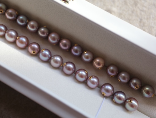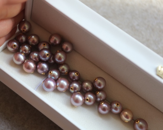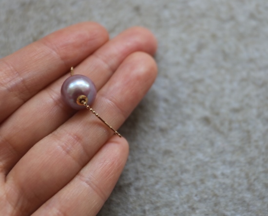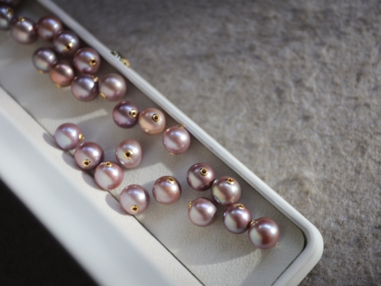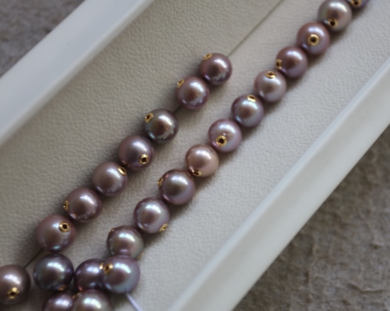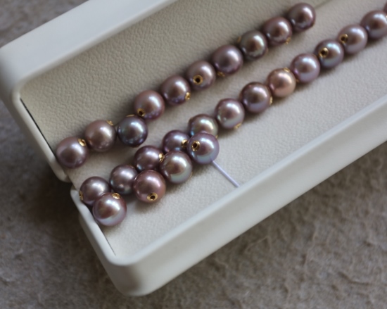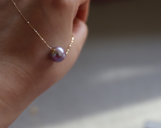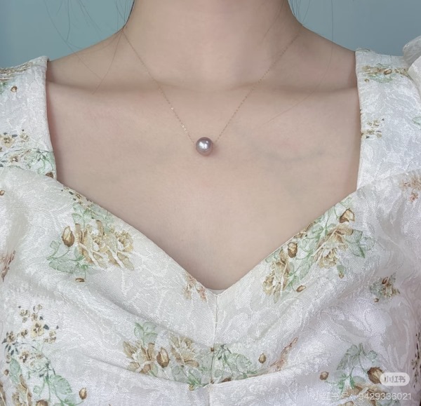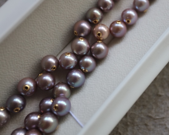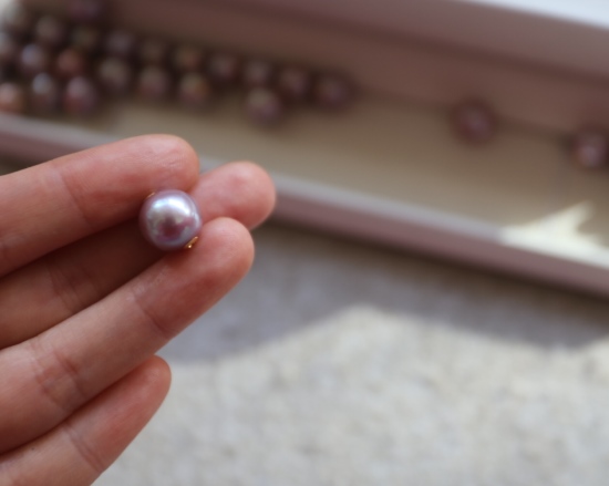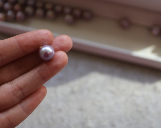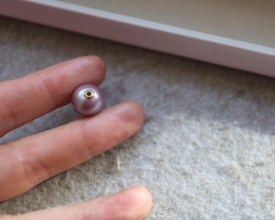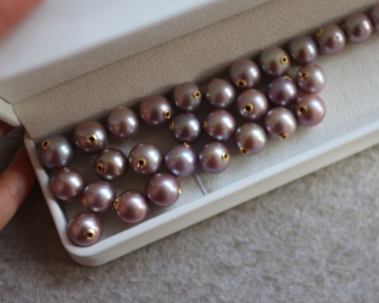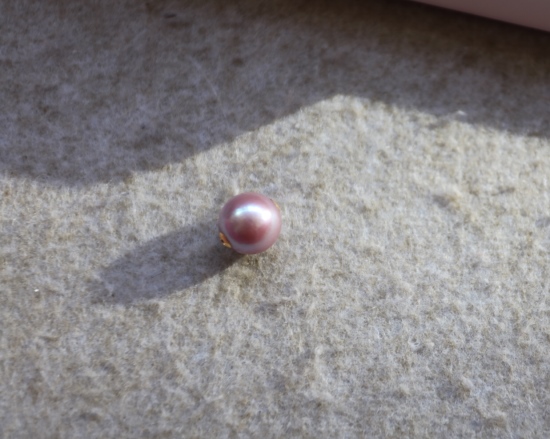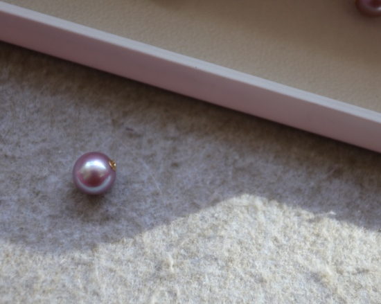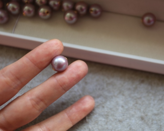 天然淡水 淡紫色系的爱迪生 有核珍珠 近圆 可照出虚影的 弱镜面级别吧
