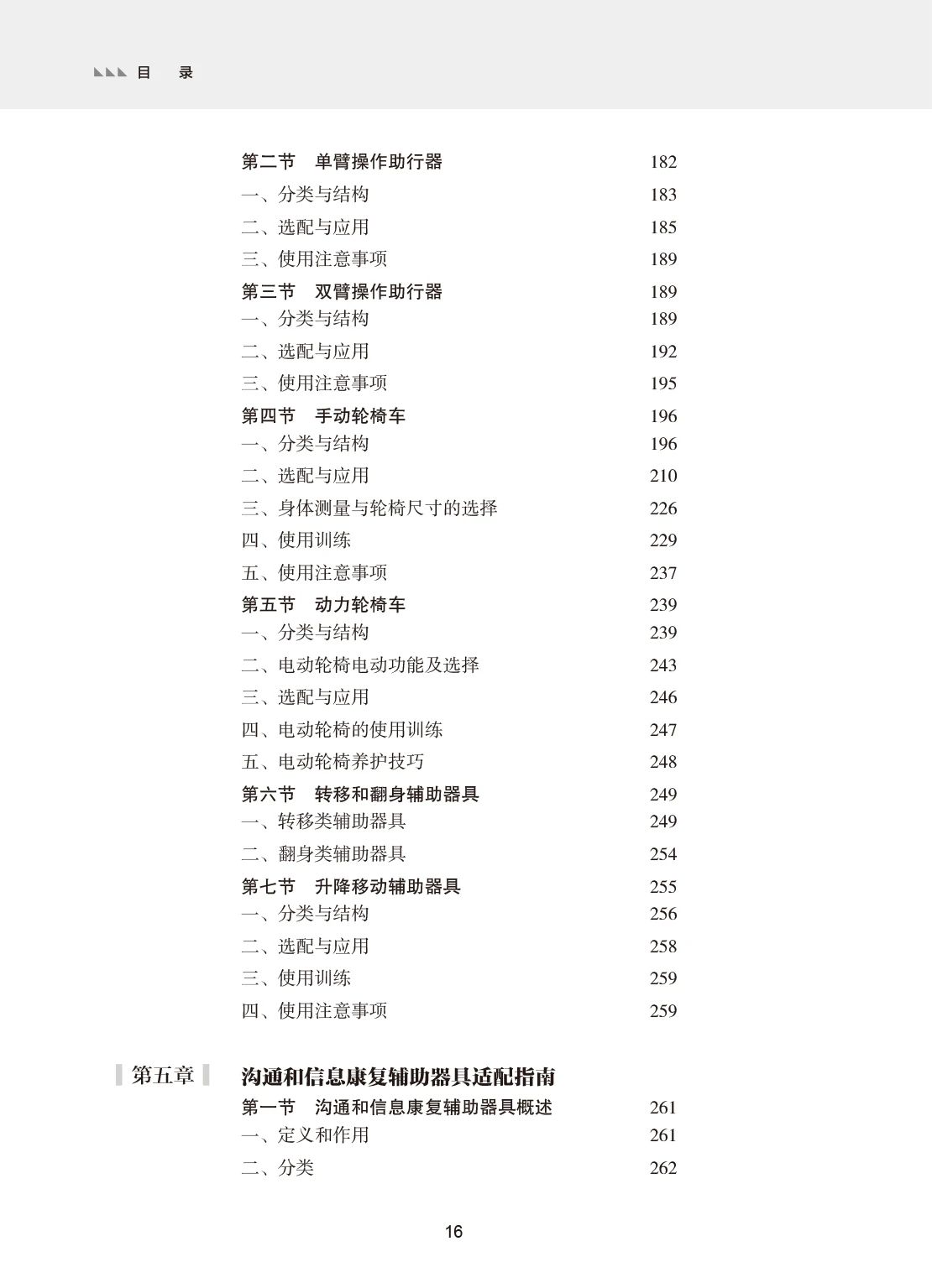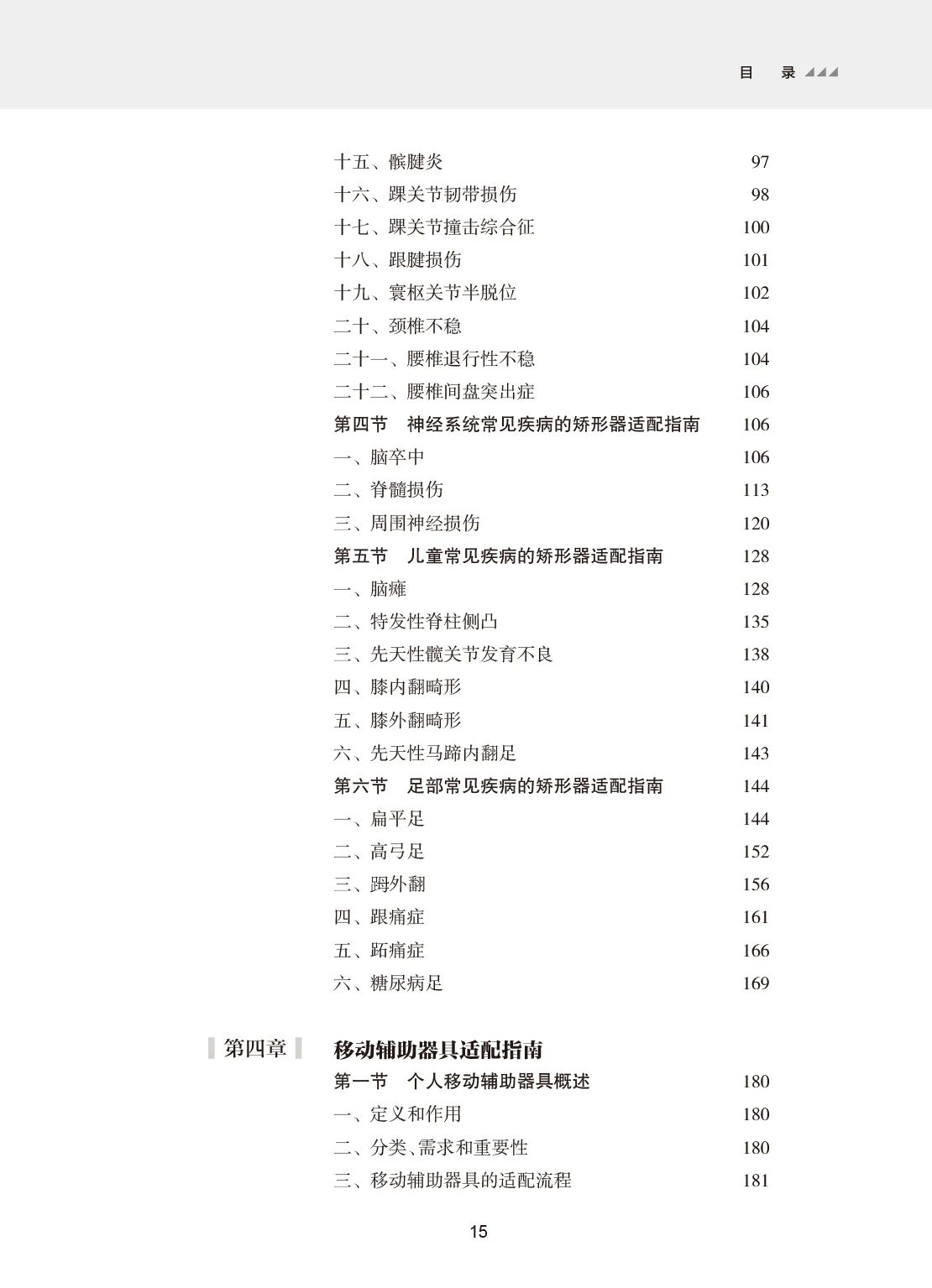 全书分为七章,图文并茂,操作性和实践性很强,围绕康复辅助器具应用的康复评定和治疗方法比较多,涉及的康复辅助器具种类也比较多。向读者全面介绍康复辅助器具的基本知识和分类、临床常见疾病和功能障碍的评定和康复治疗,重点是针对常见疾病的各个阶段、各种功能障碍,详细介绍了康复辅助器具的临床适配。