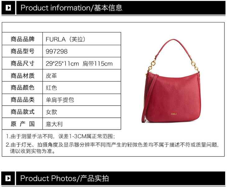 【香港直邮】QH Furla 芙拉 女士红色皮革手提包 997298