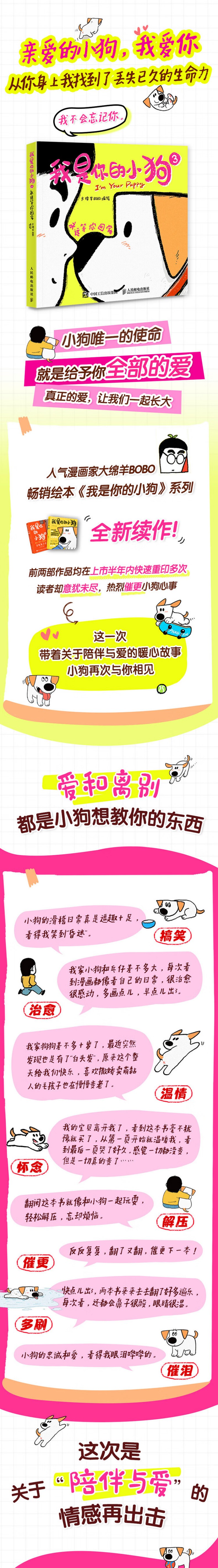 一只小狗,给主人的生活带来了无穷的乐趣。本书是一本有趣的图画书,作者通过拟人的手法,从小狗的视角展现了它和主人有趣的日常生活,记录了他们的点点滴滴。 小狗就如同人类的亲人一般,陪伴在主人的身边。它的眼神里藏着故事,行为透露出性格,甚至连它的呼吸都似乎在诉说着什么。喜欢小狗的朋友们,你们是否好奇自己的小狗每天都在做些什么,又在想些什么呢?本书将为你们揭开这些谜底。本书记录了作者与小狗相处的最开心、最搞笑、最感动的瞬间,道出了所有小狗主人的心声!