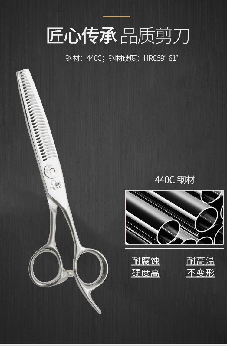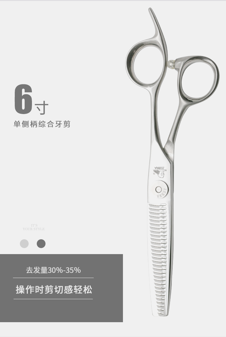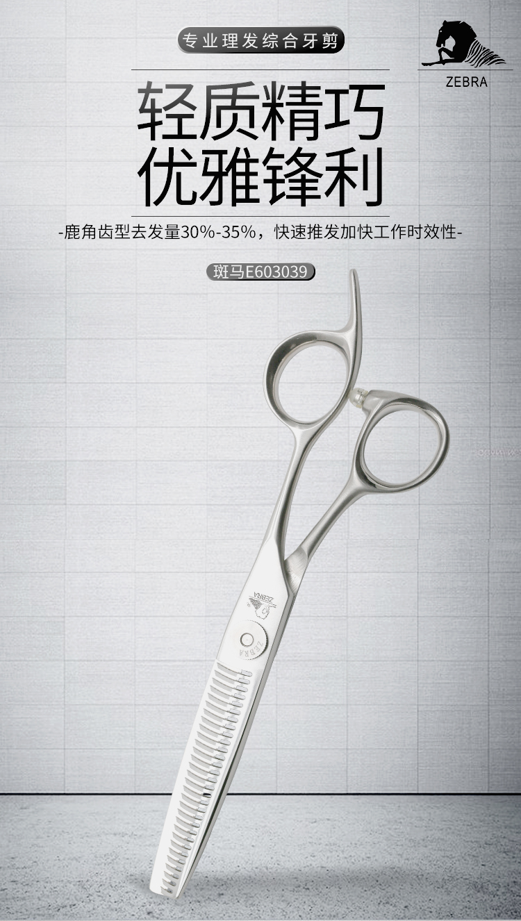 ZEBRA斑马 剪刀 E603039 牙剪/调量剪/综合牙剪/打薄剪/去发量30-35%/ 单侧柄/鹿角齿/30根齿/正刃
