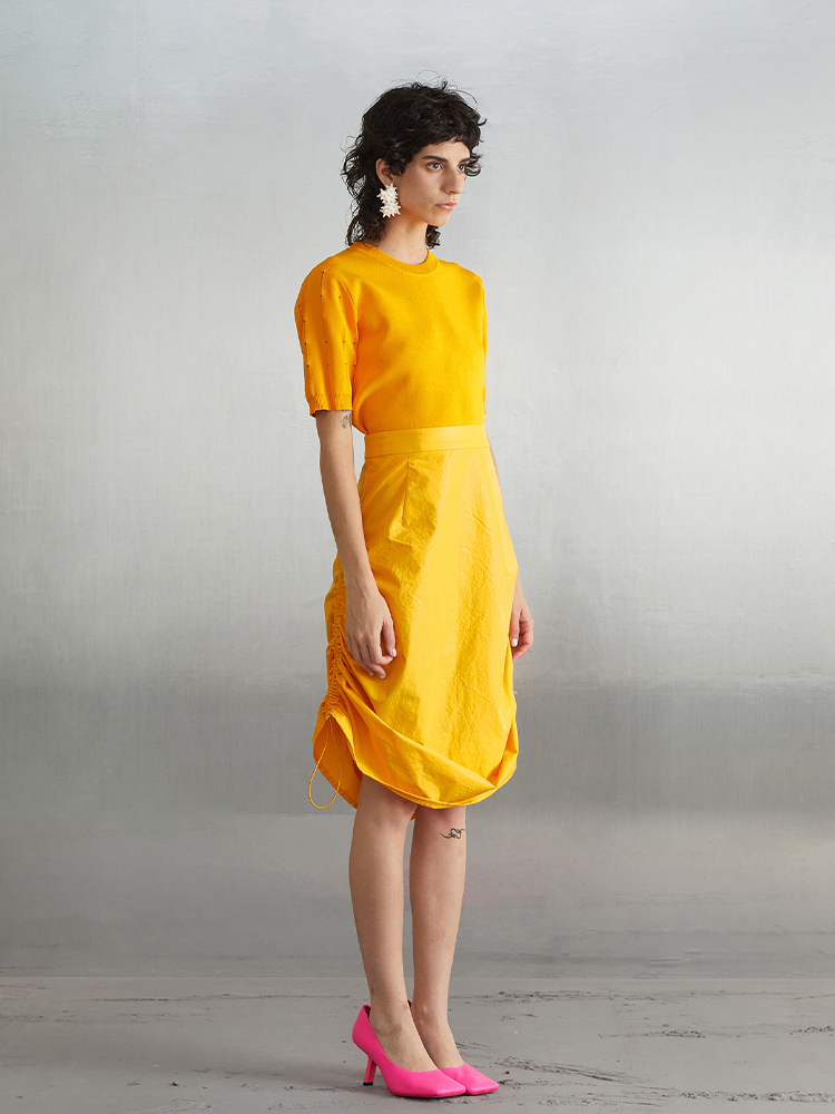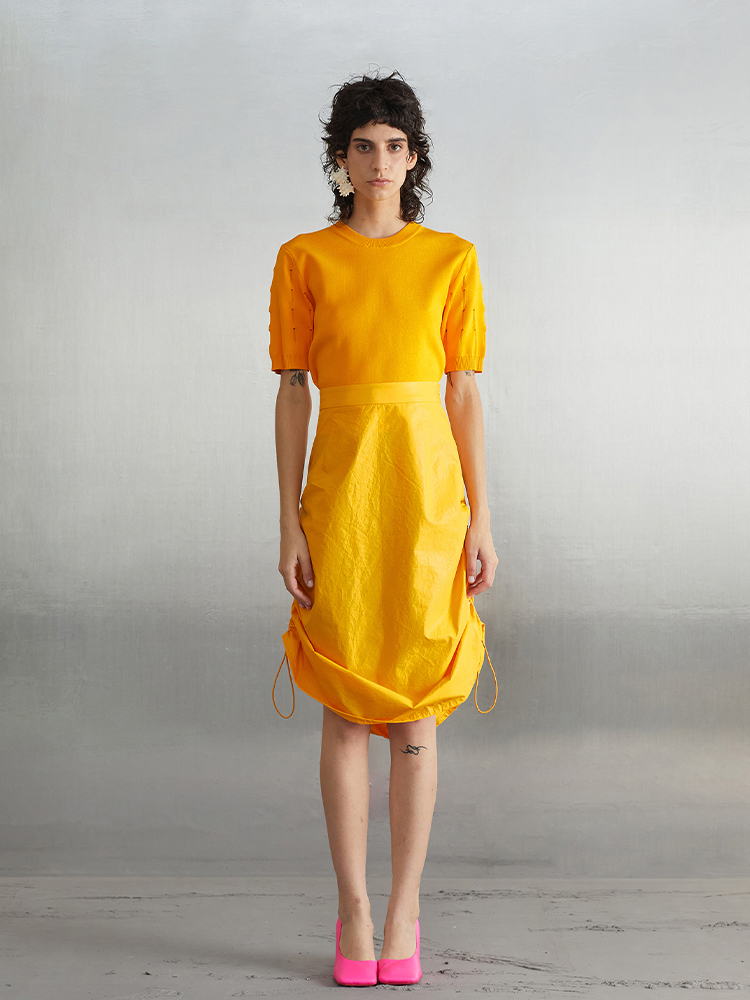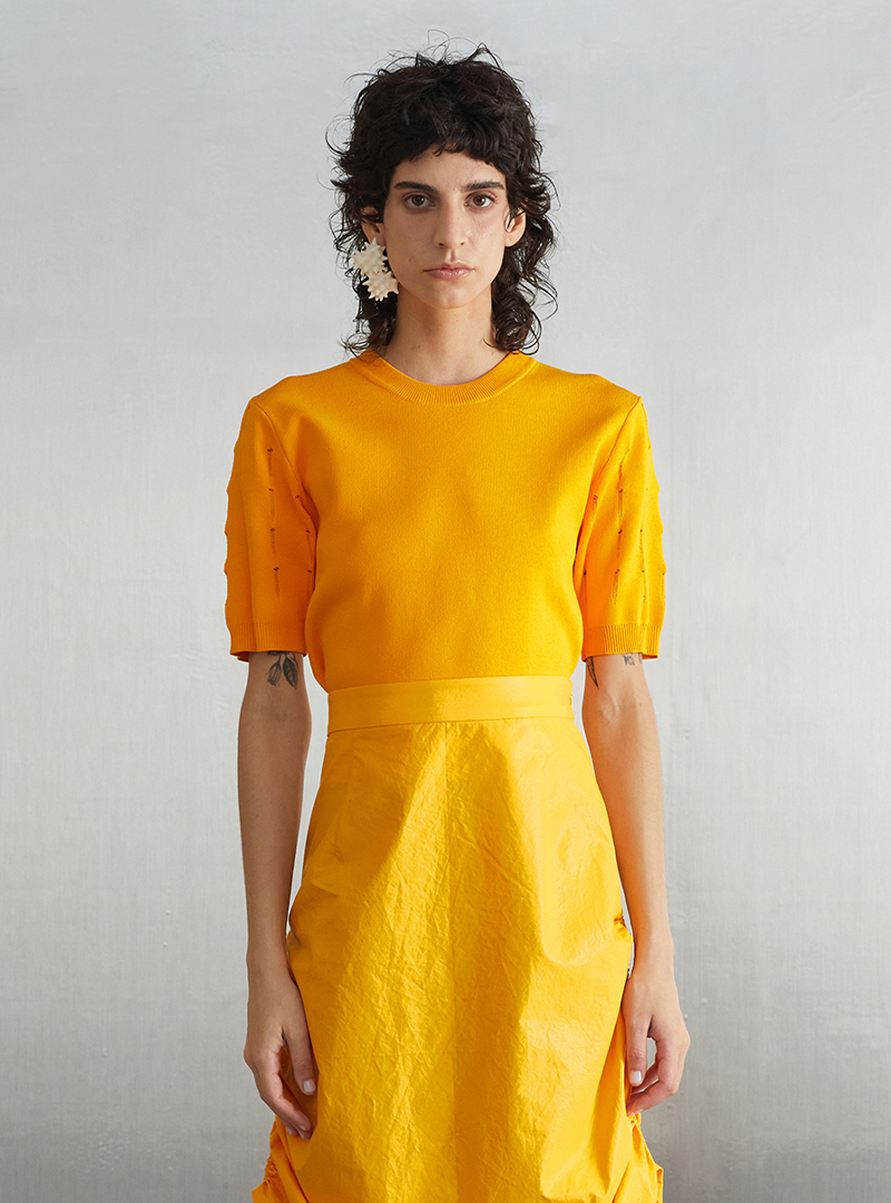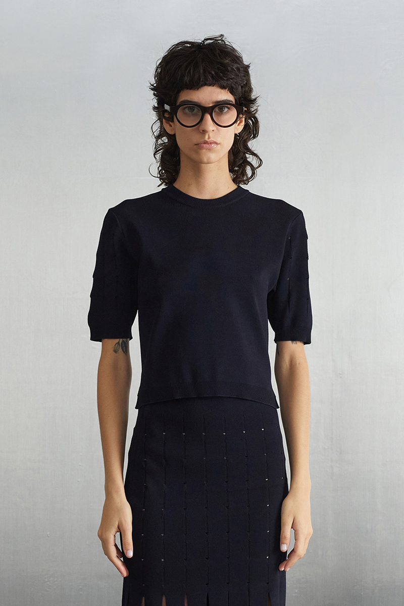 四平组织的针织轮廓让表⾯呈现平整廓形