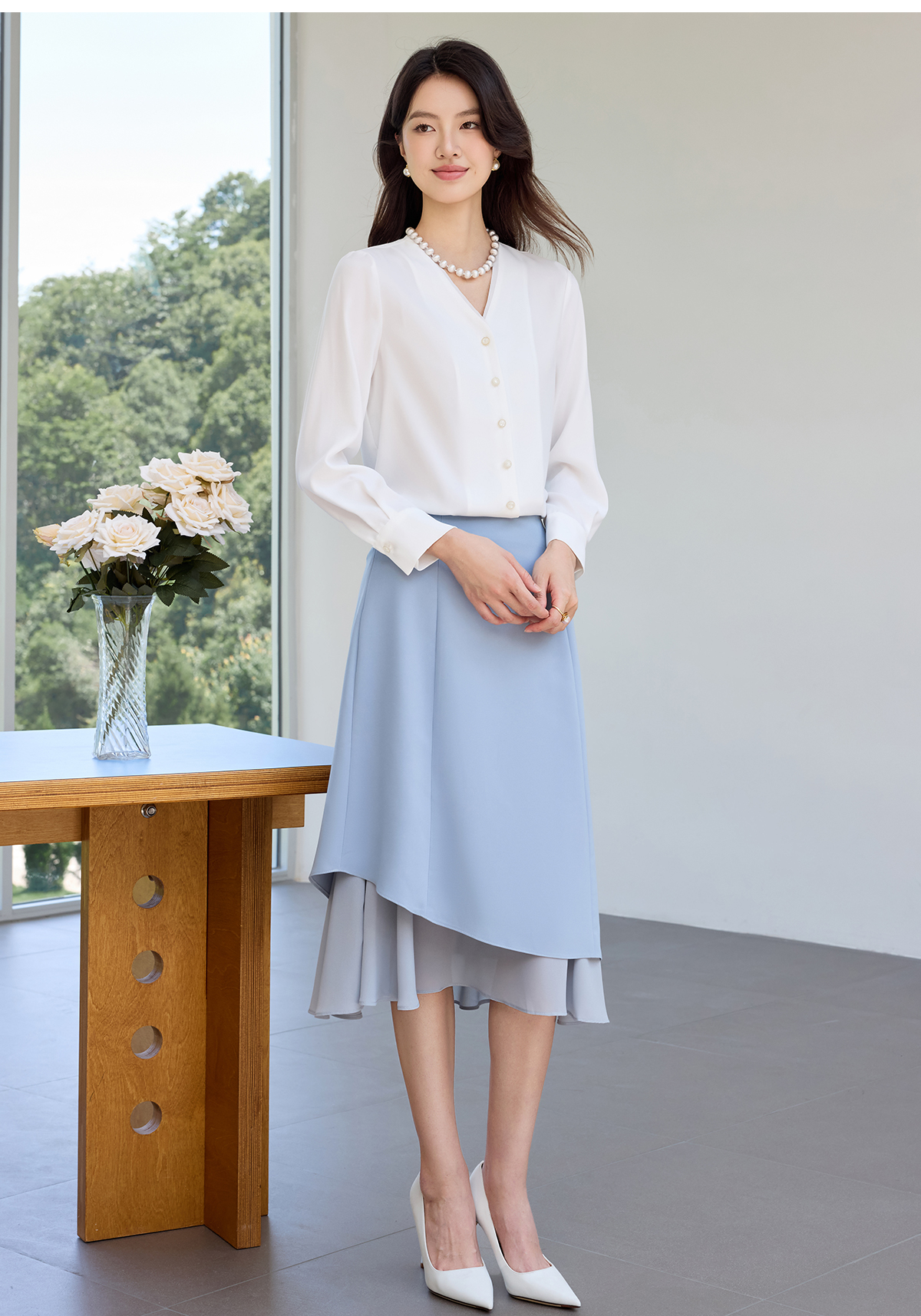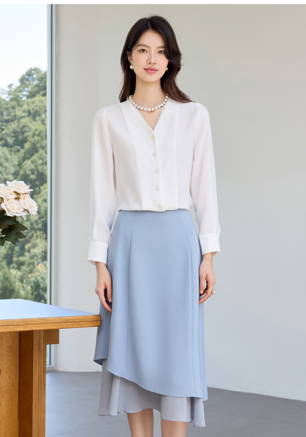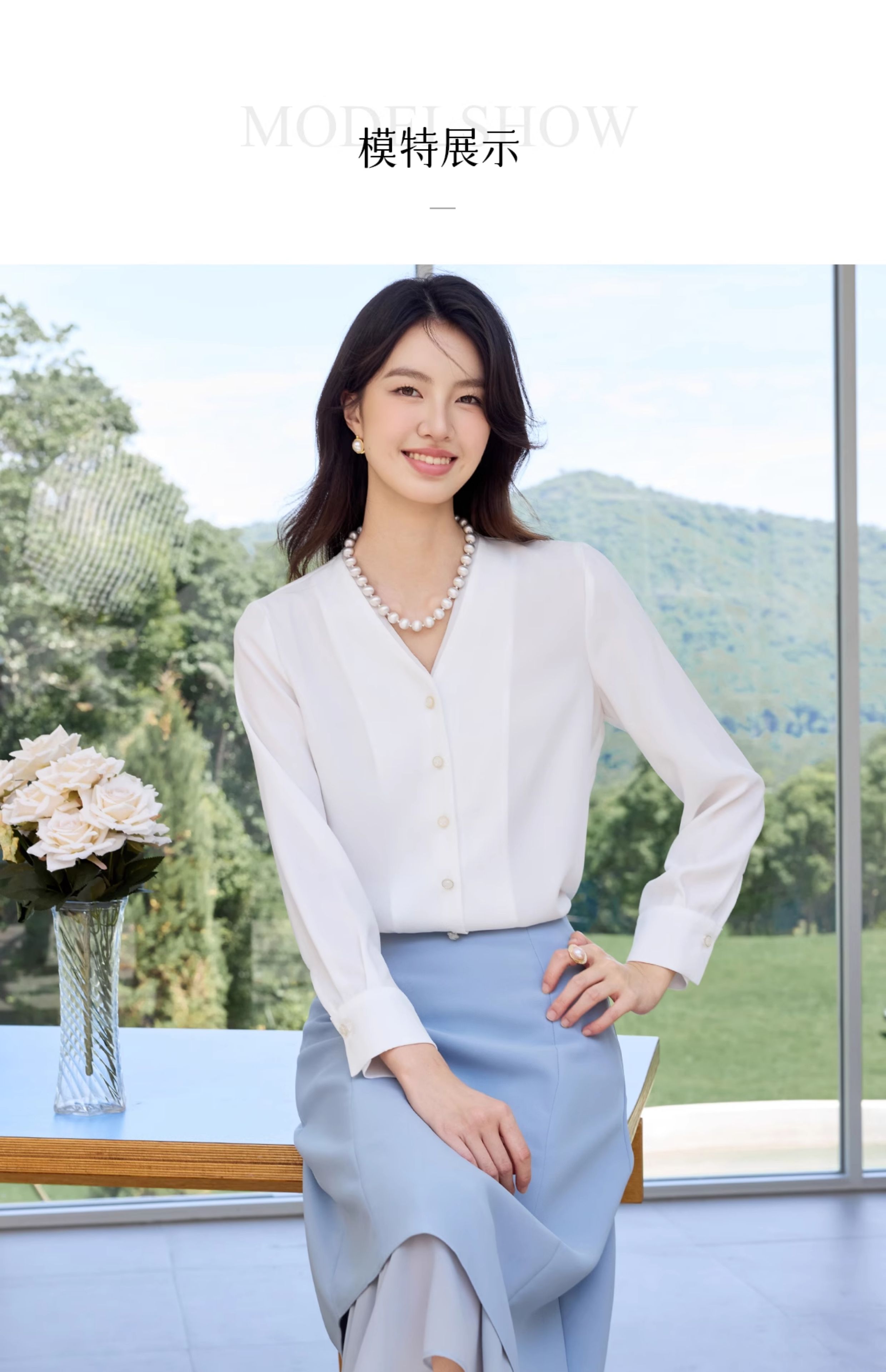 IWY/高级感V领白色衬衫女新款时尚百搭显瘦衬衣半身裙装23B489+25S777