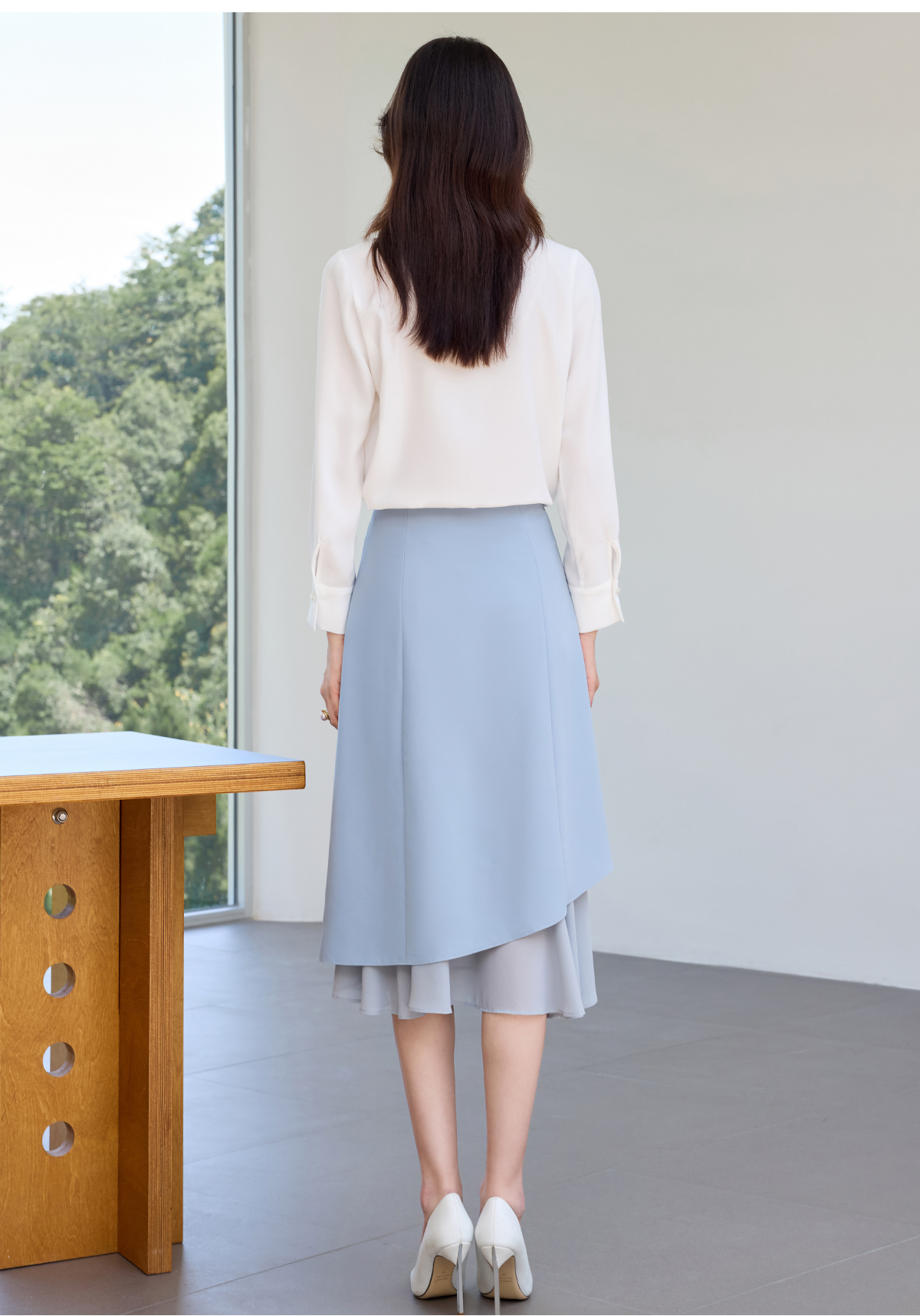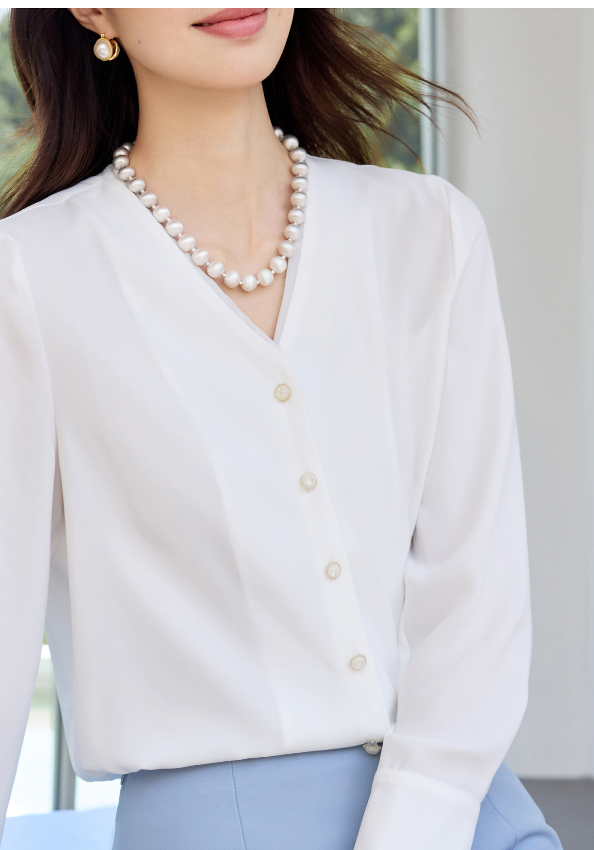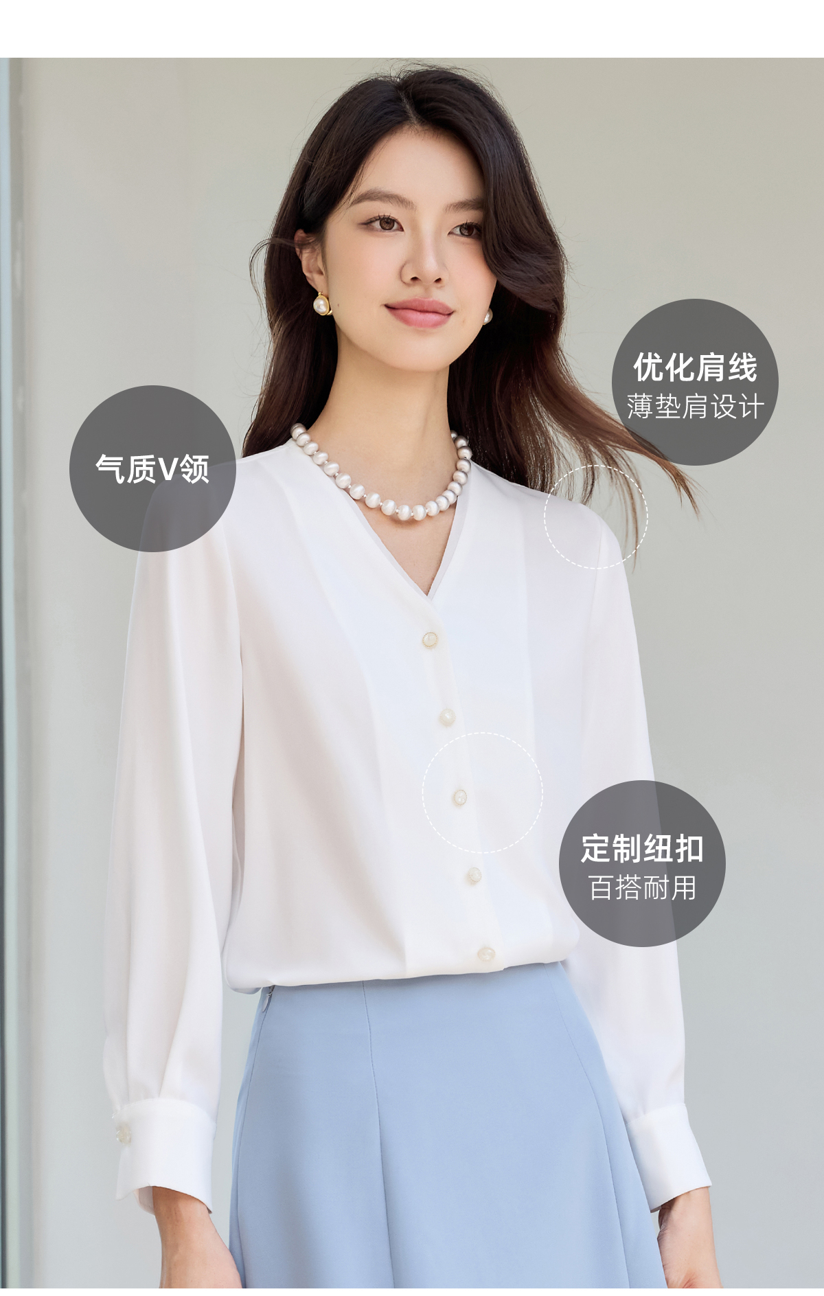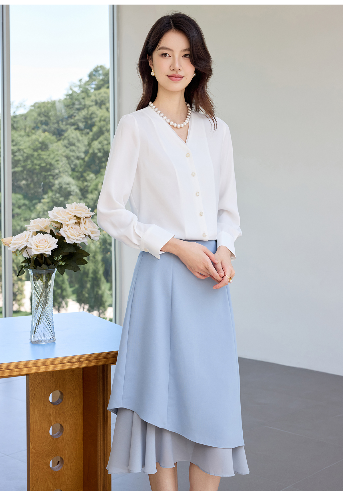 IWY/高级感V领白色衬衫女新款时尚百搭显瘦衬衣半身裙装23B489+25S777