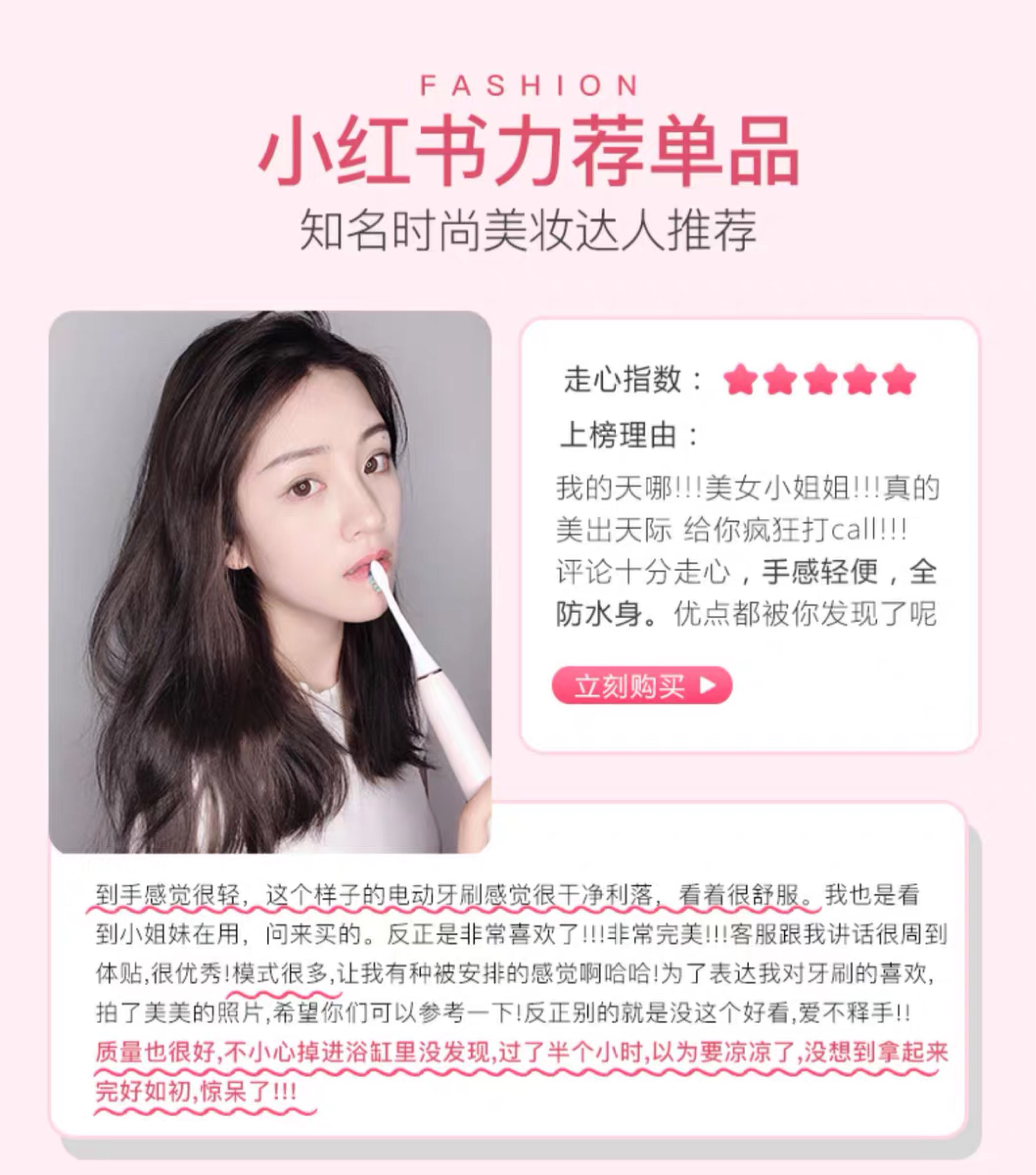 这款就是声波牙刷。其实很便宜啦!旗舰店299,本店再优惠80,💰219!!一顿小火锅的钱