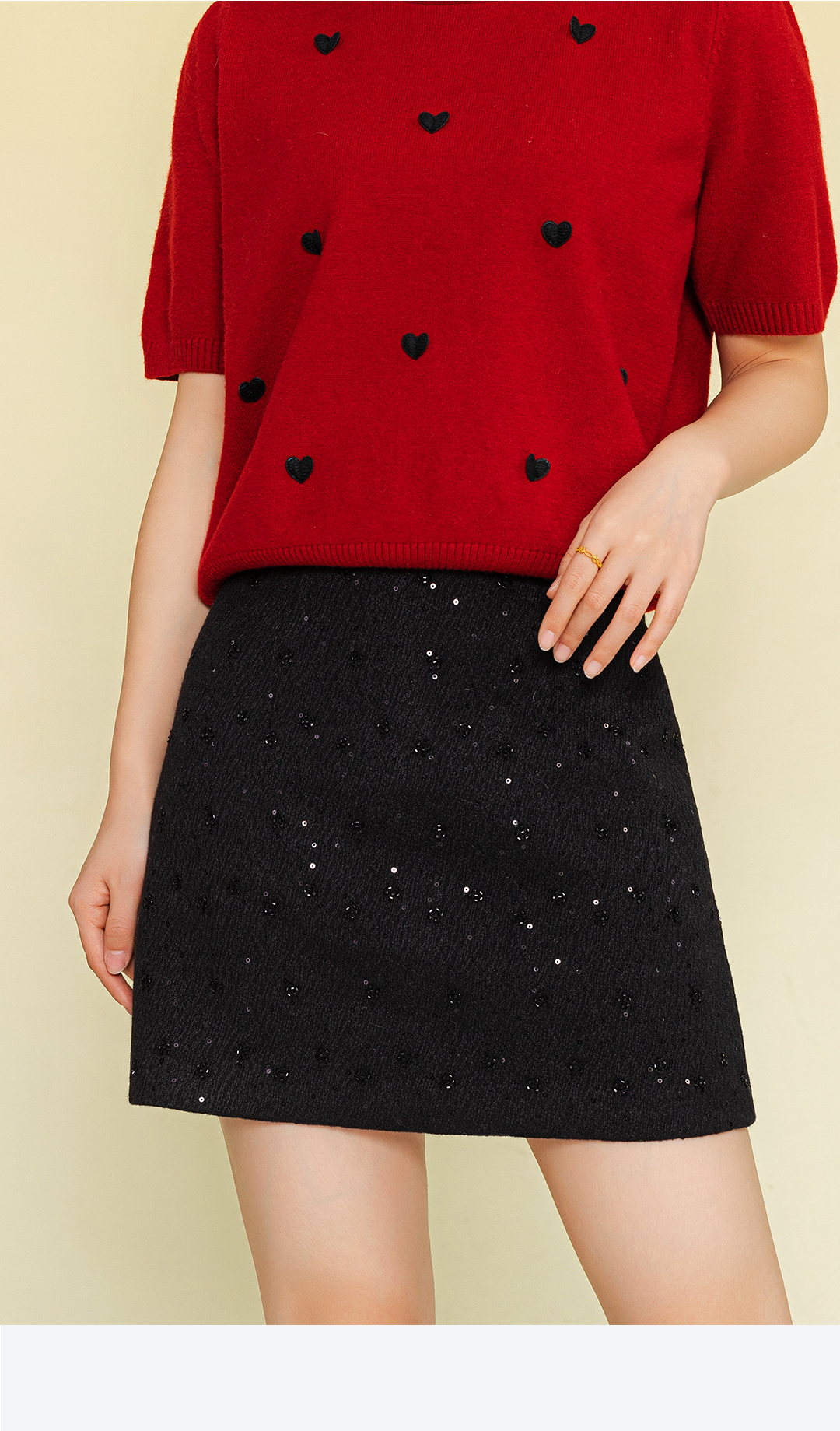 春上新修身显瘦时尚简约高级感羊毛A字包臀裙 3261001 商品图7
