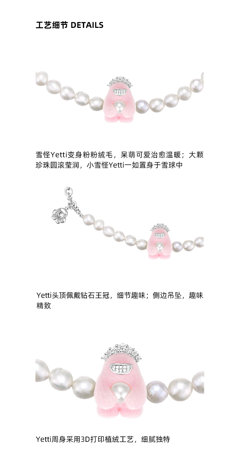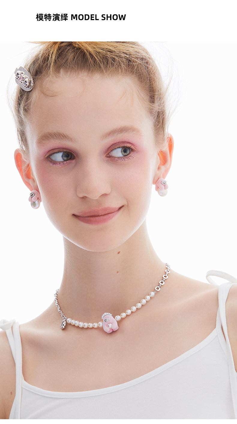 lost in echo2023秋冬新品设计师款Yetti小怪兽珍珠植绒项链气质