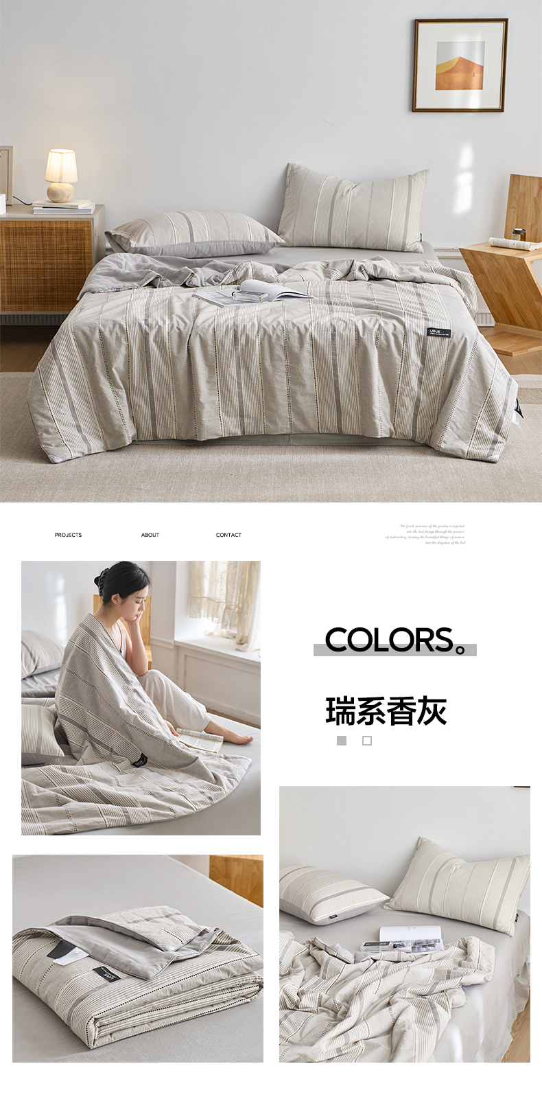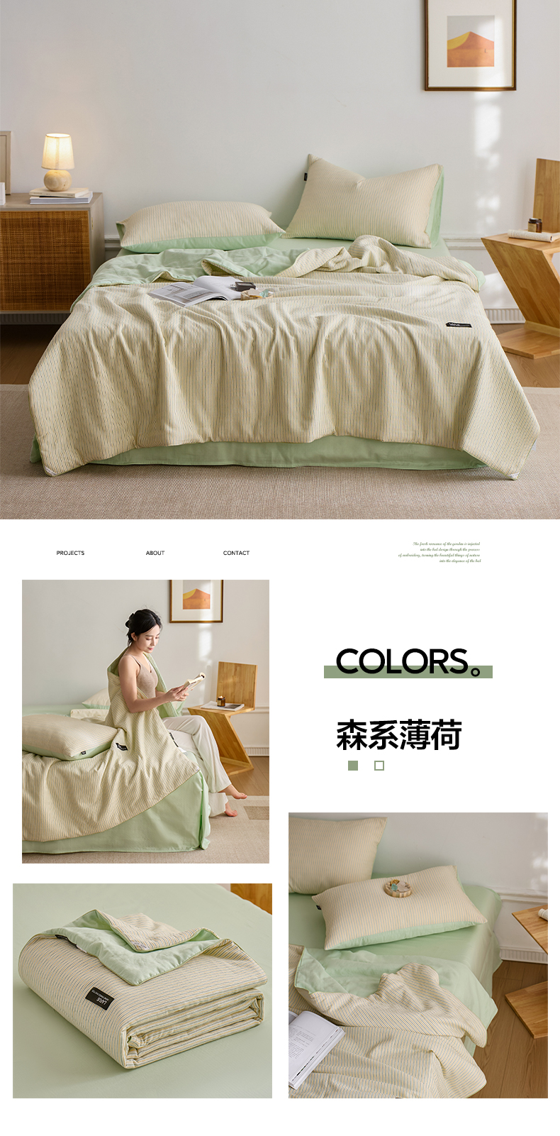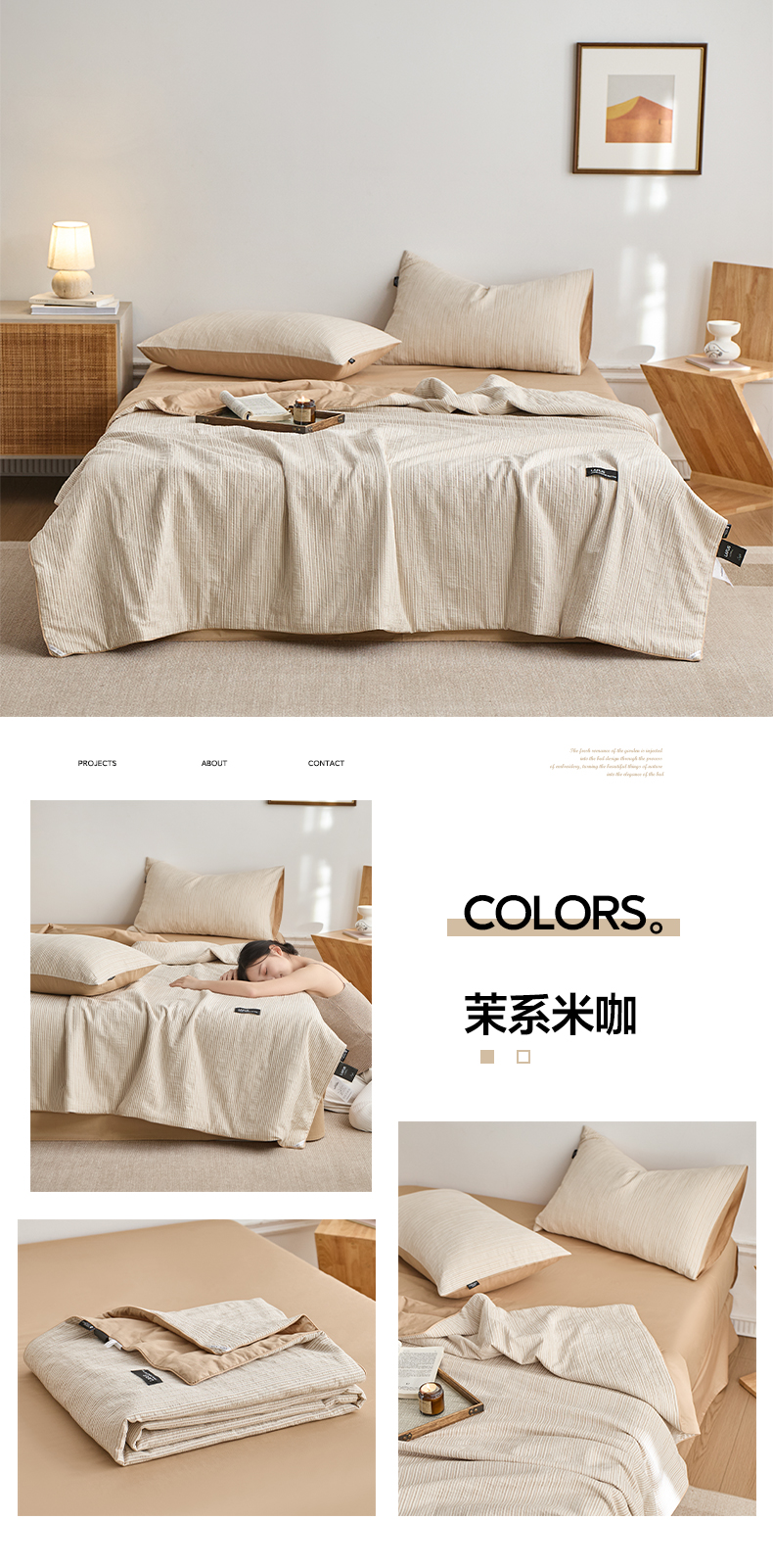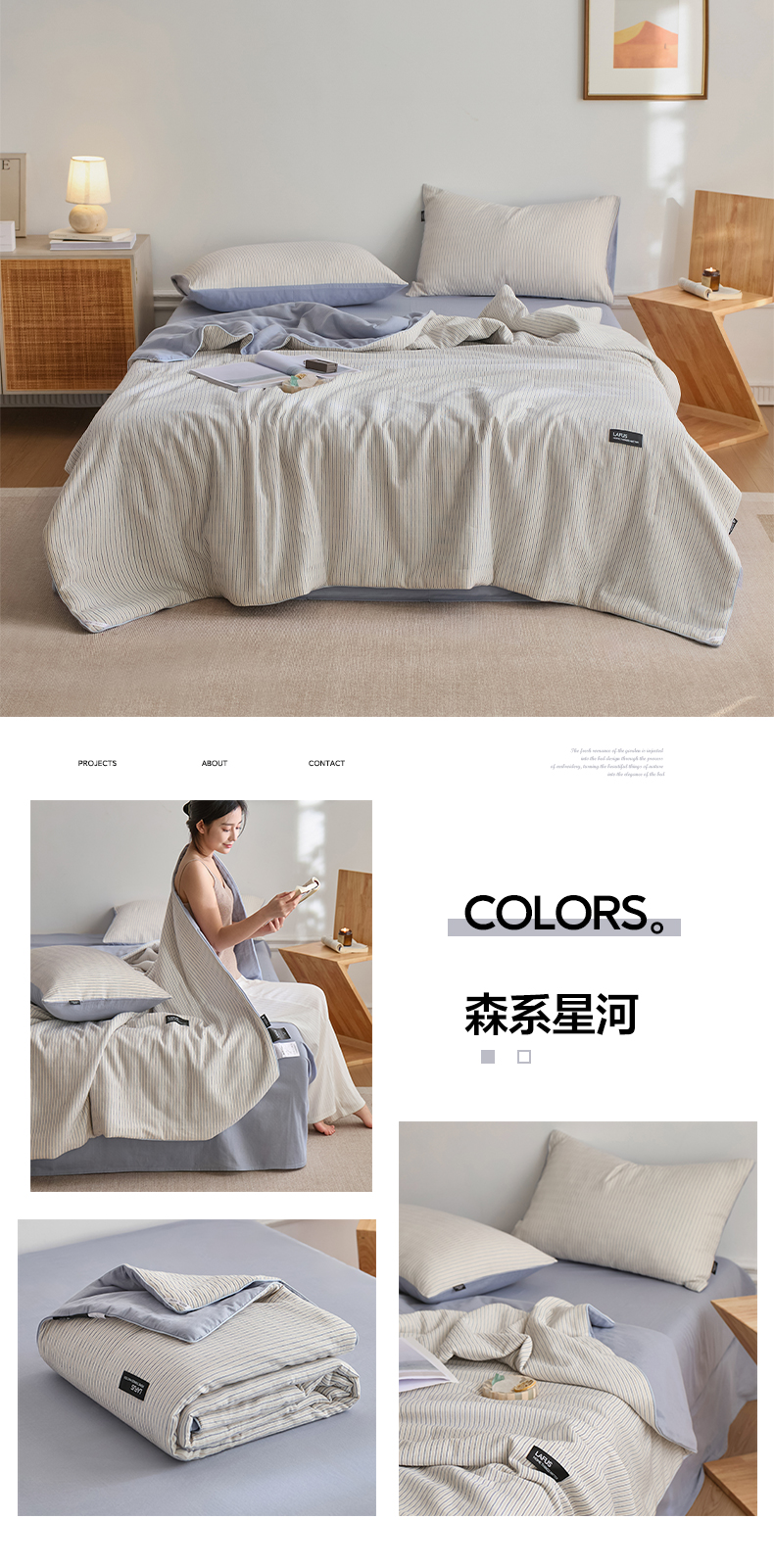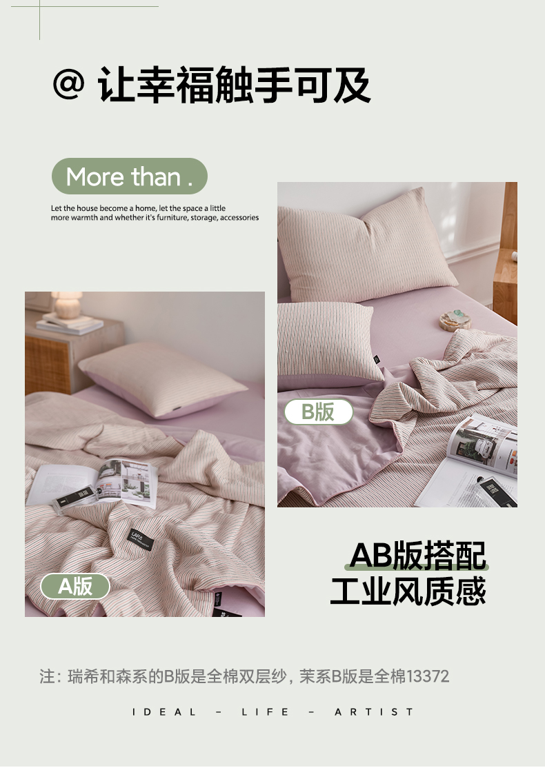 【色织水洗棉全棉夏凉被】2025新款原创侘寂系列全棉夏被-夏被四件套