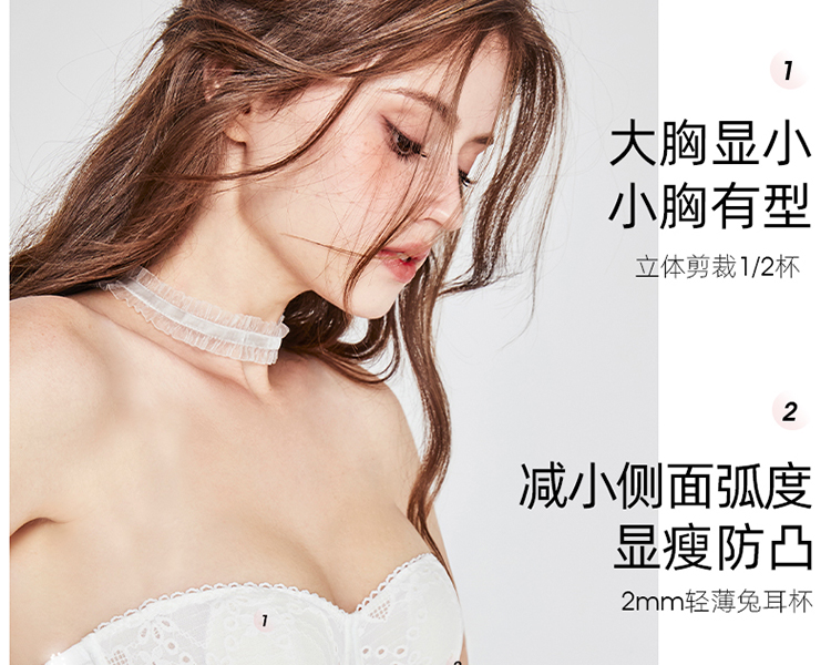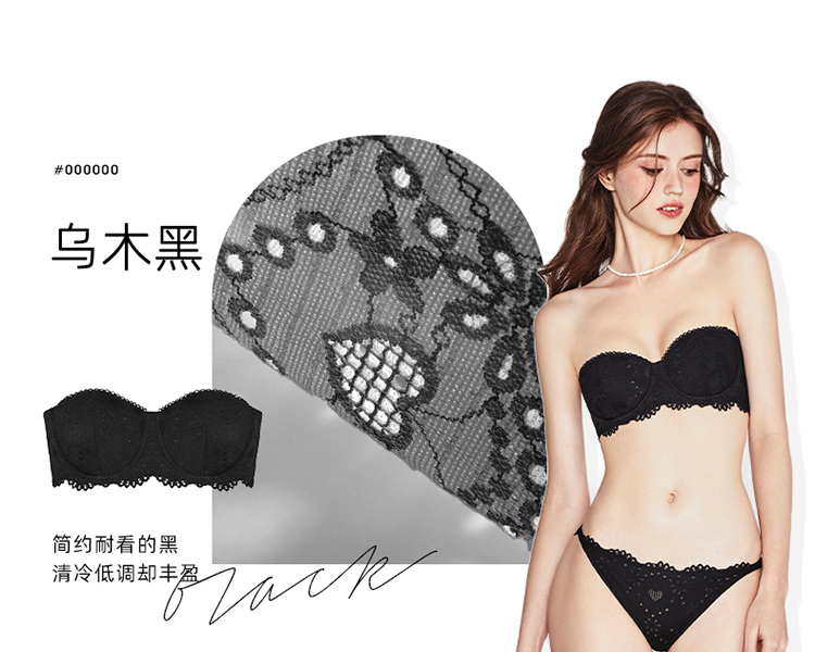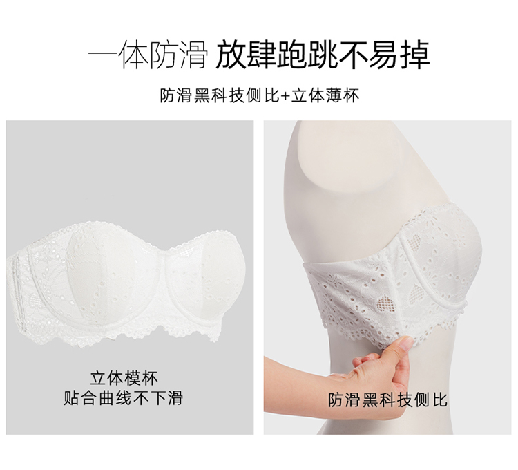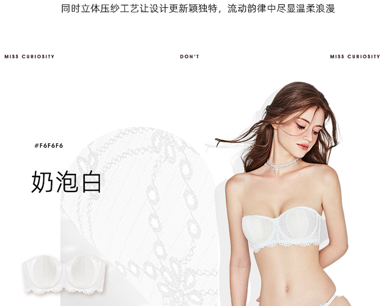 好奇蜜斯蕾丝无肩带内衣女抹胸防滑裹胸文胸罩套装纯欲夏季薄显小-Arno 阿诺