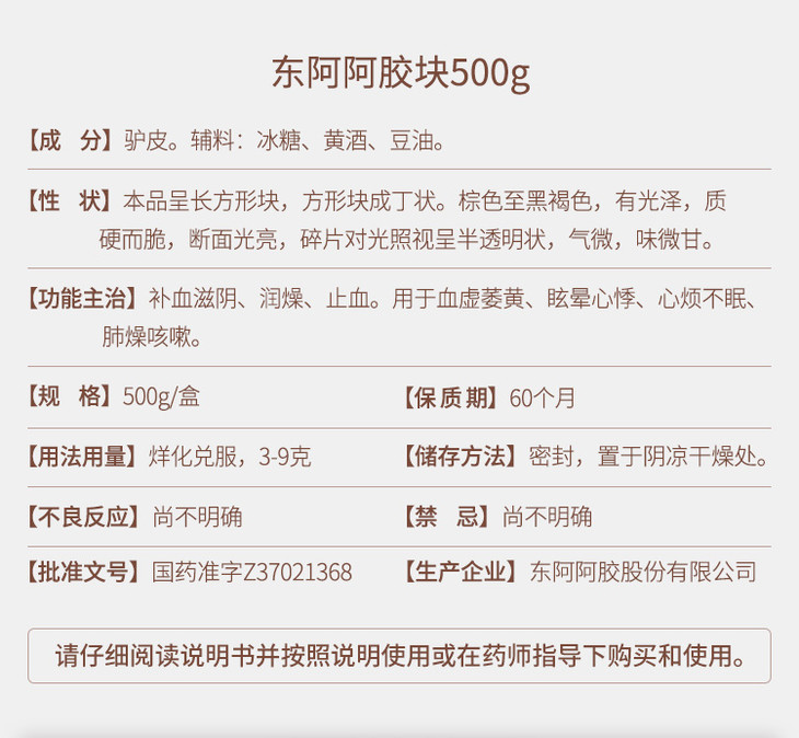 社群会员专属】东阿阿胶块 500g/盒 经典爆款 补血滋阴 润燥止血