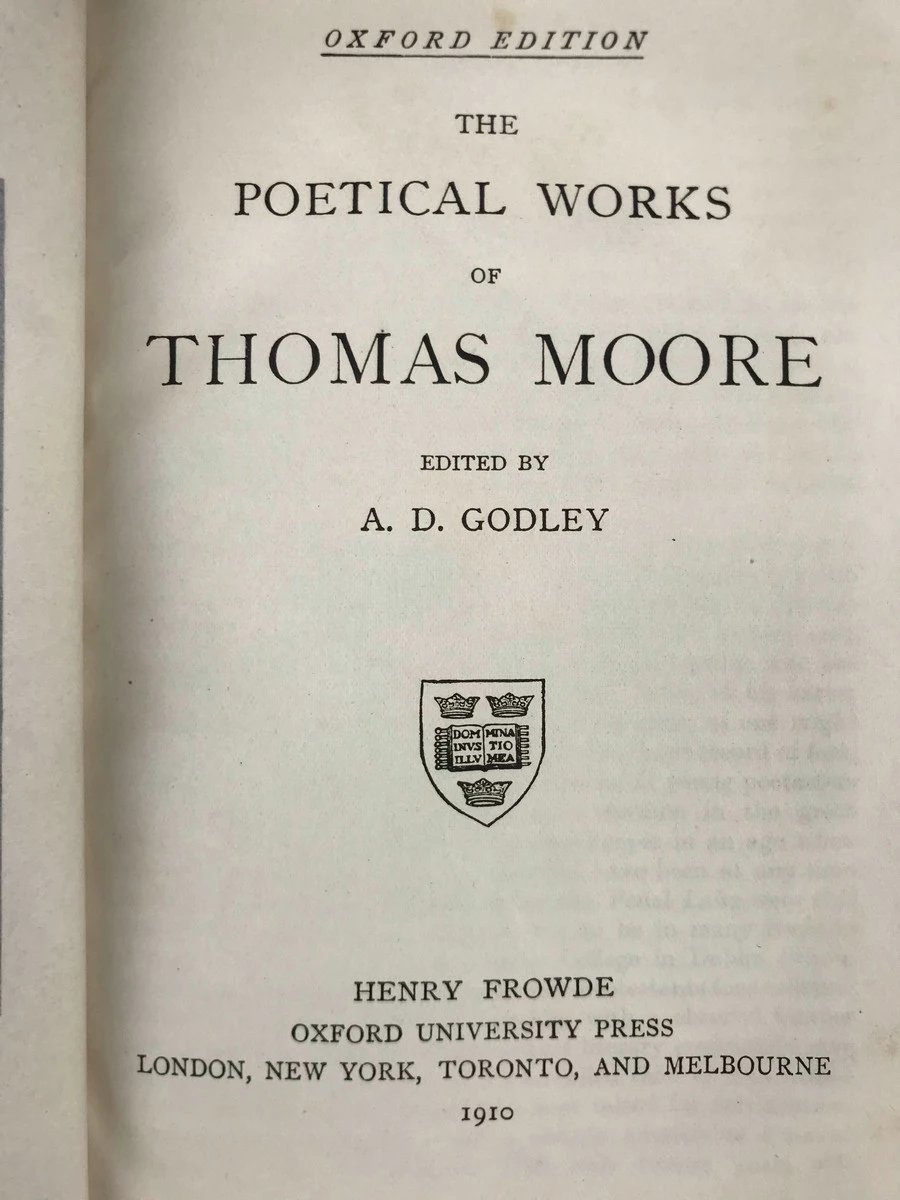 工坊特装本!1910年 托马斯·摩尔诗集 1幅肖像插图 全真皮精装32开