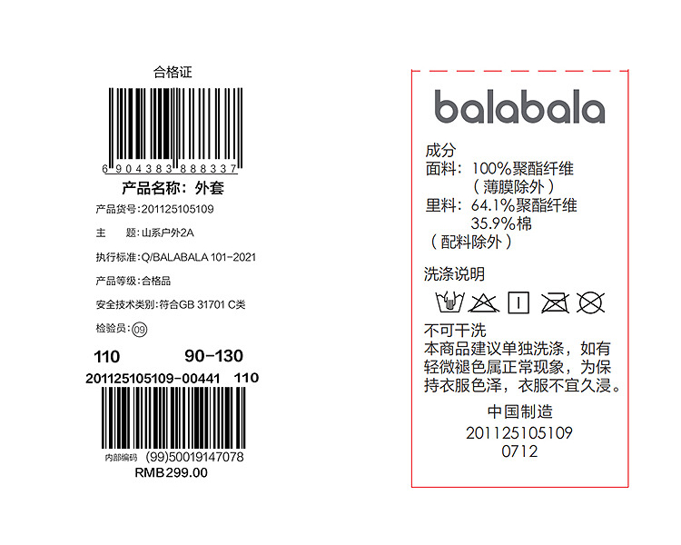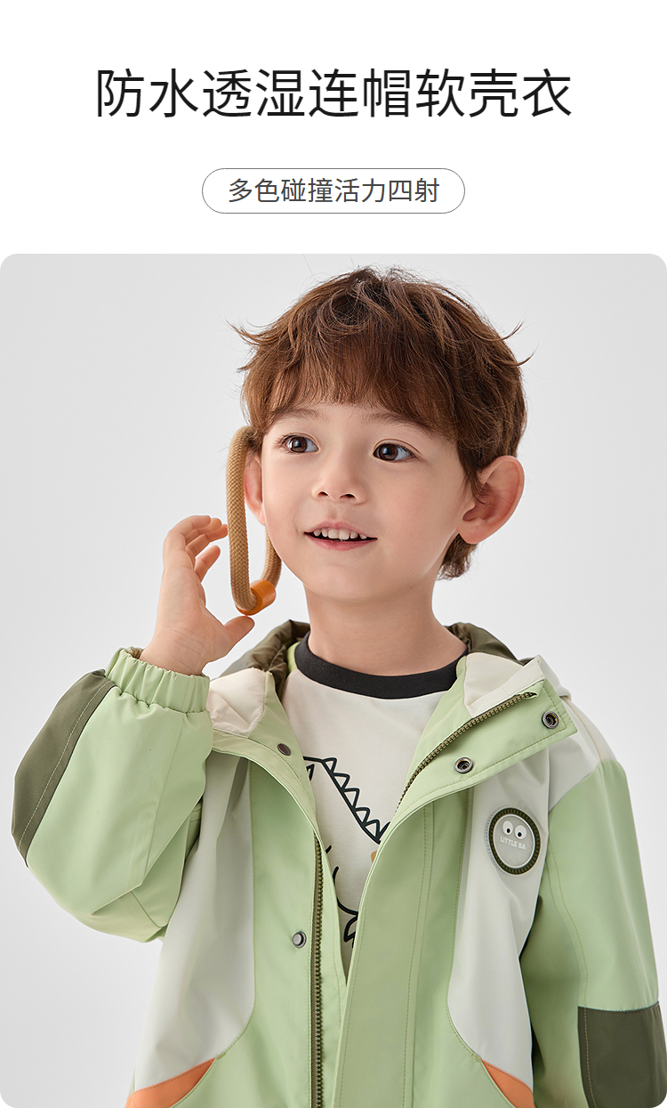巴拉巴拉童装儿童外套男童春秋装连帽软壳衣拼色户外风趣味活泼