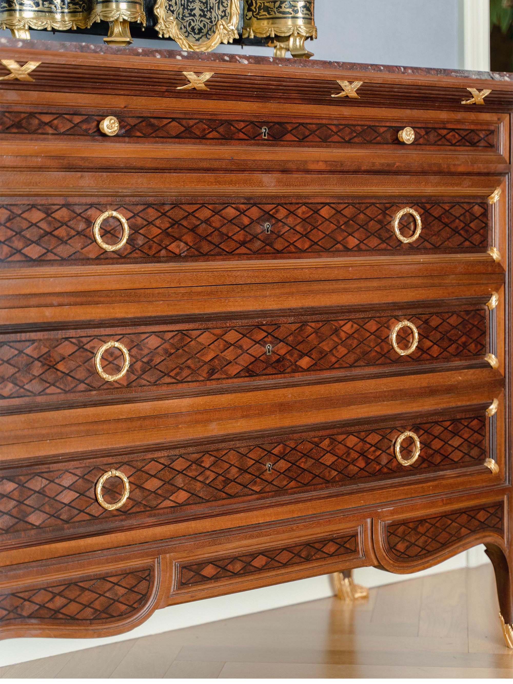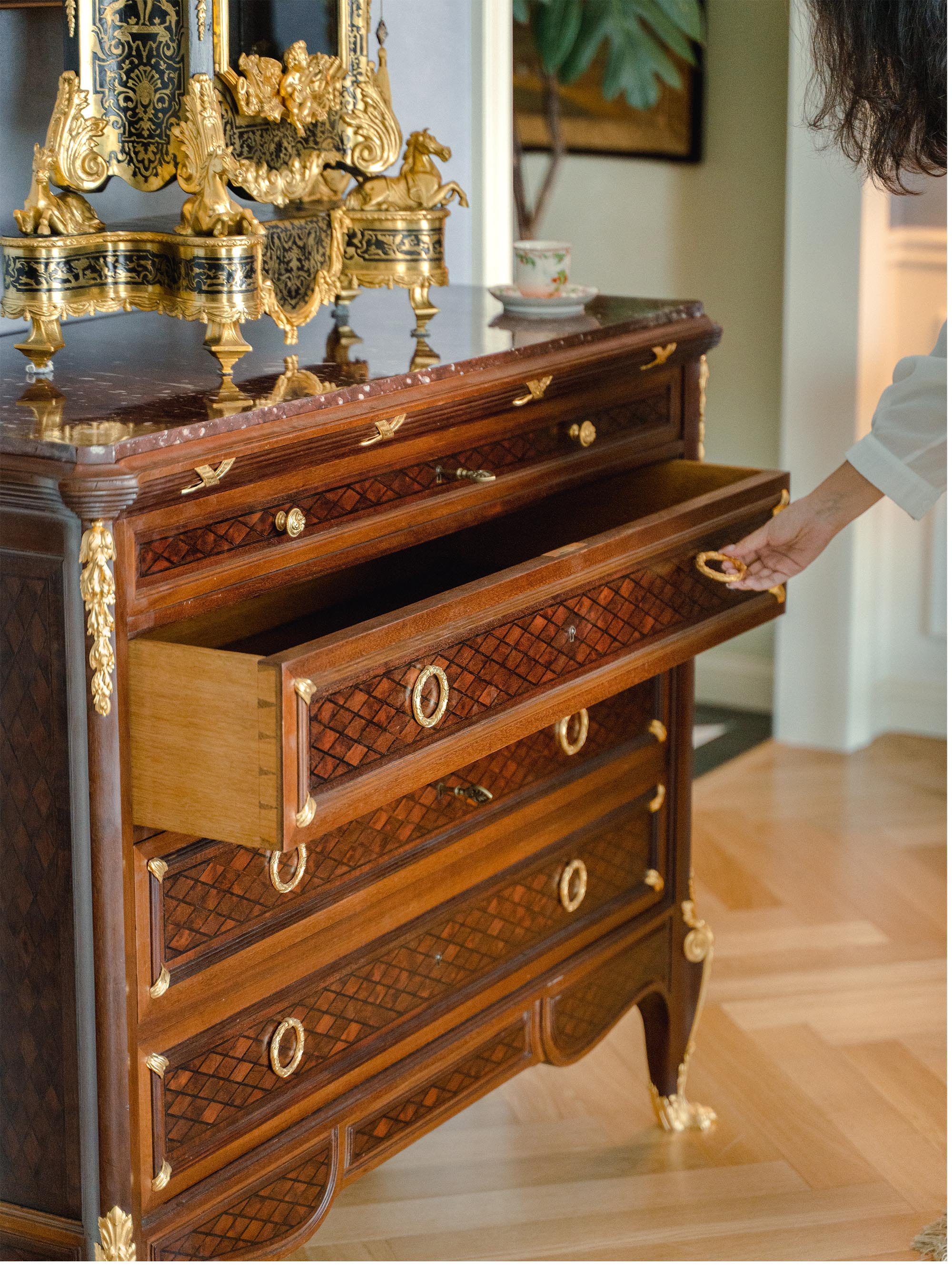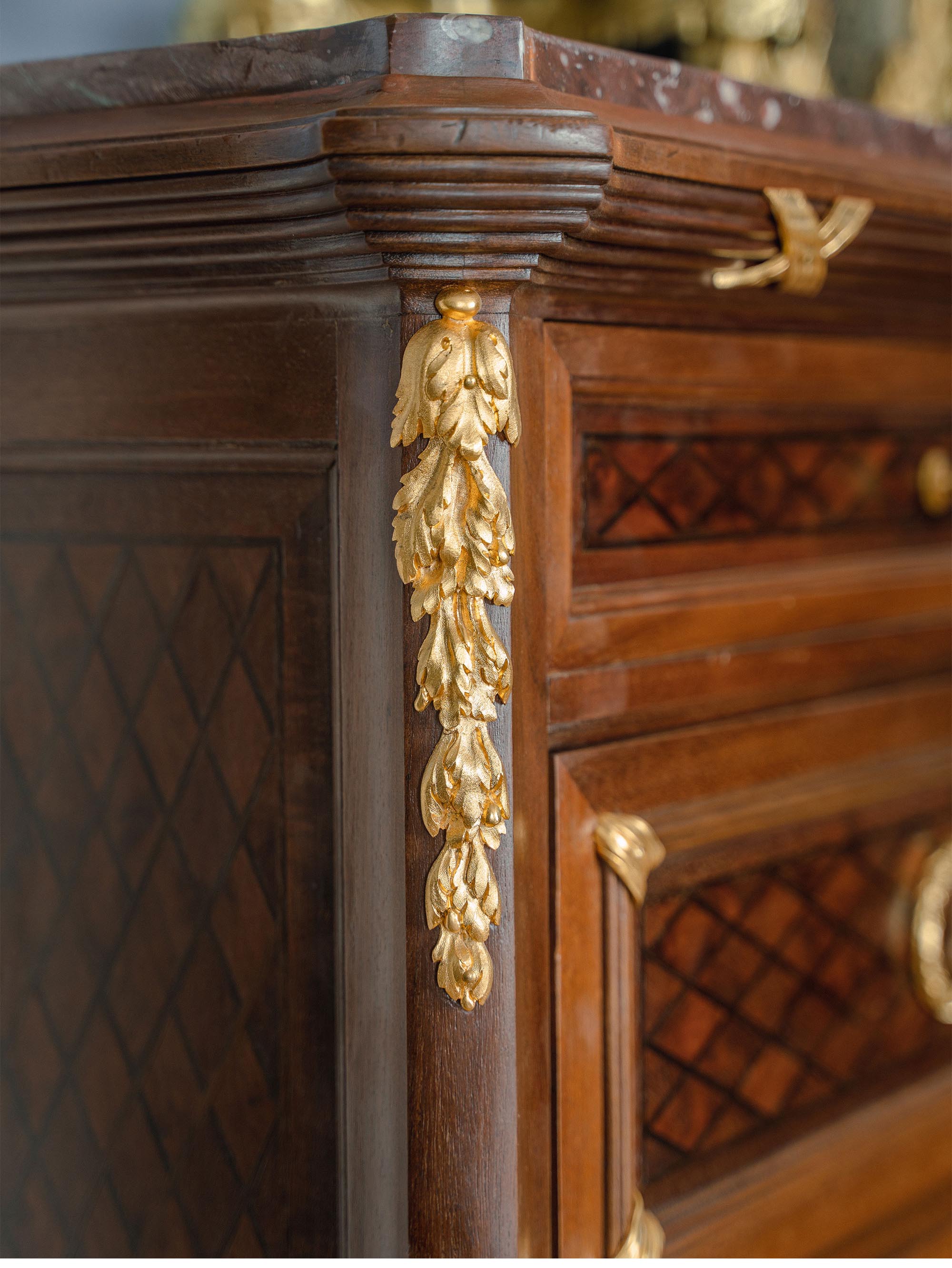 19世纪末法国出品路易十五风格铜鎏金雕饰大理石台面斗柜