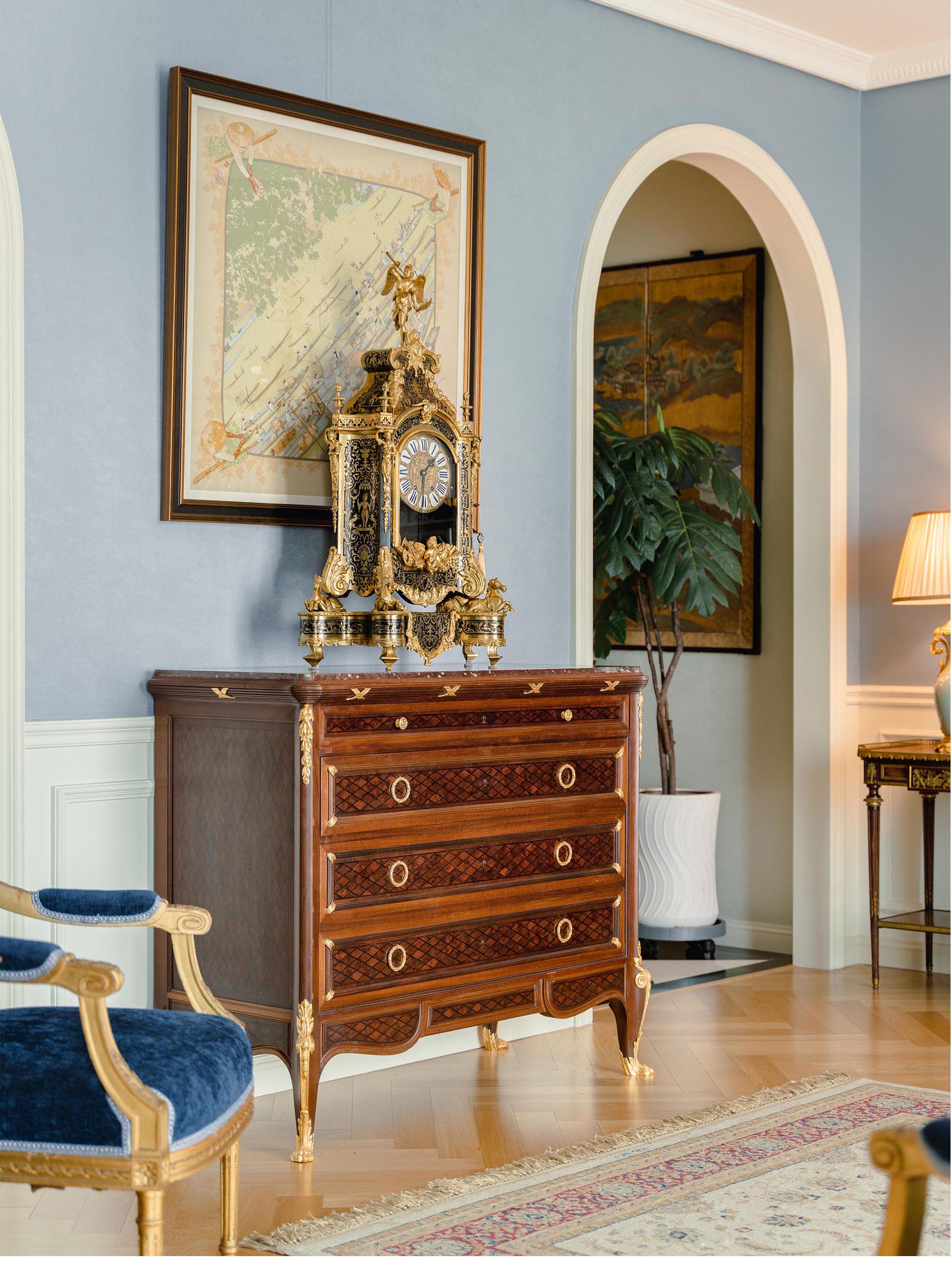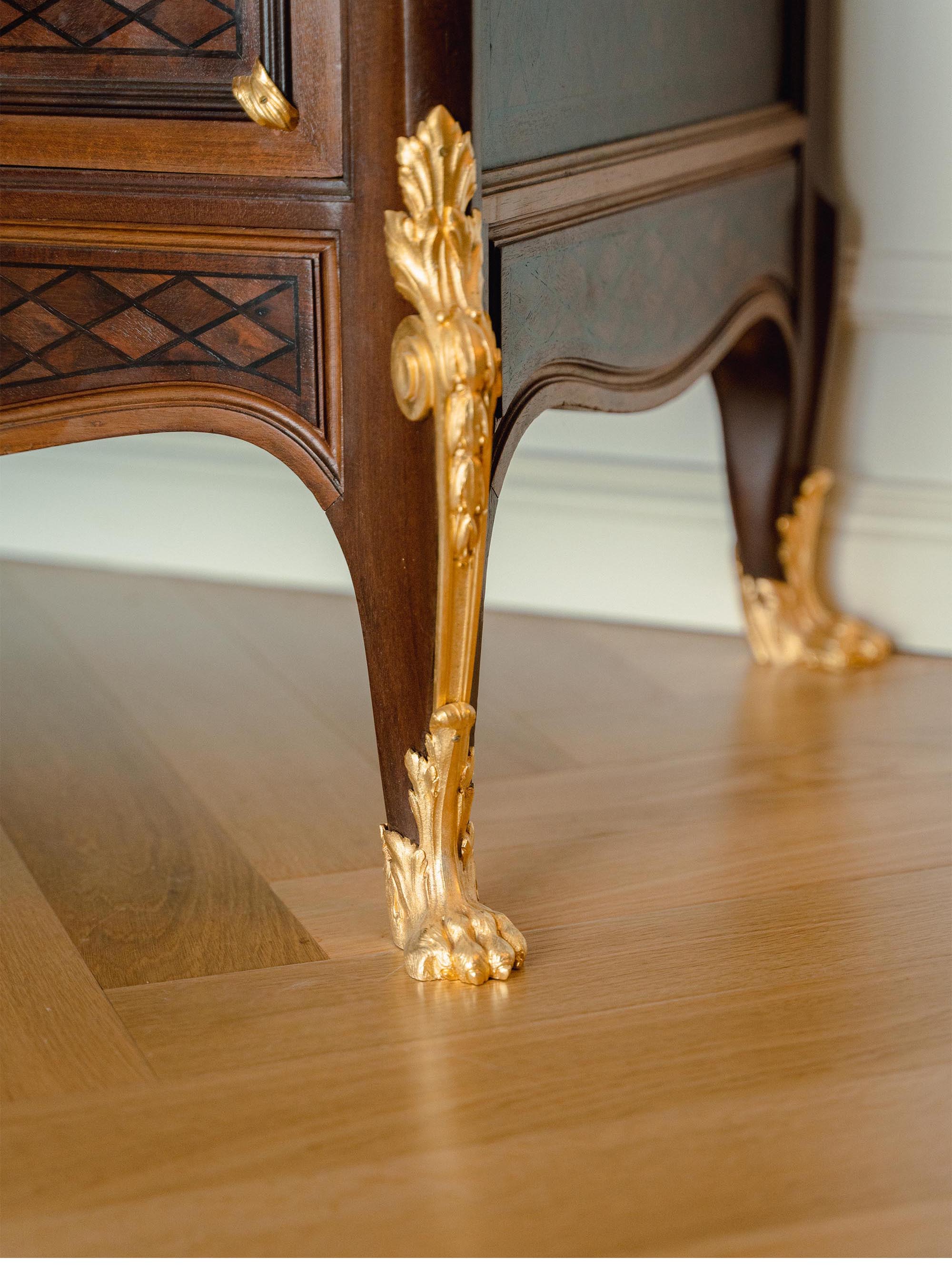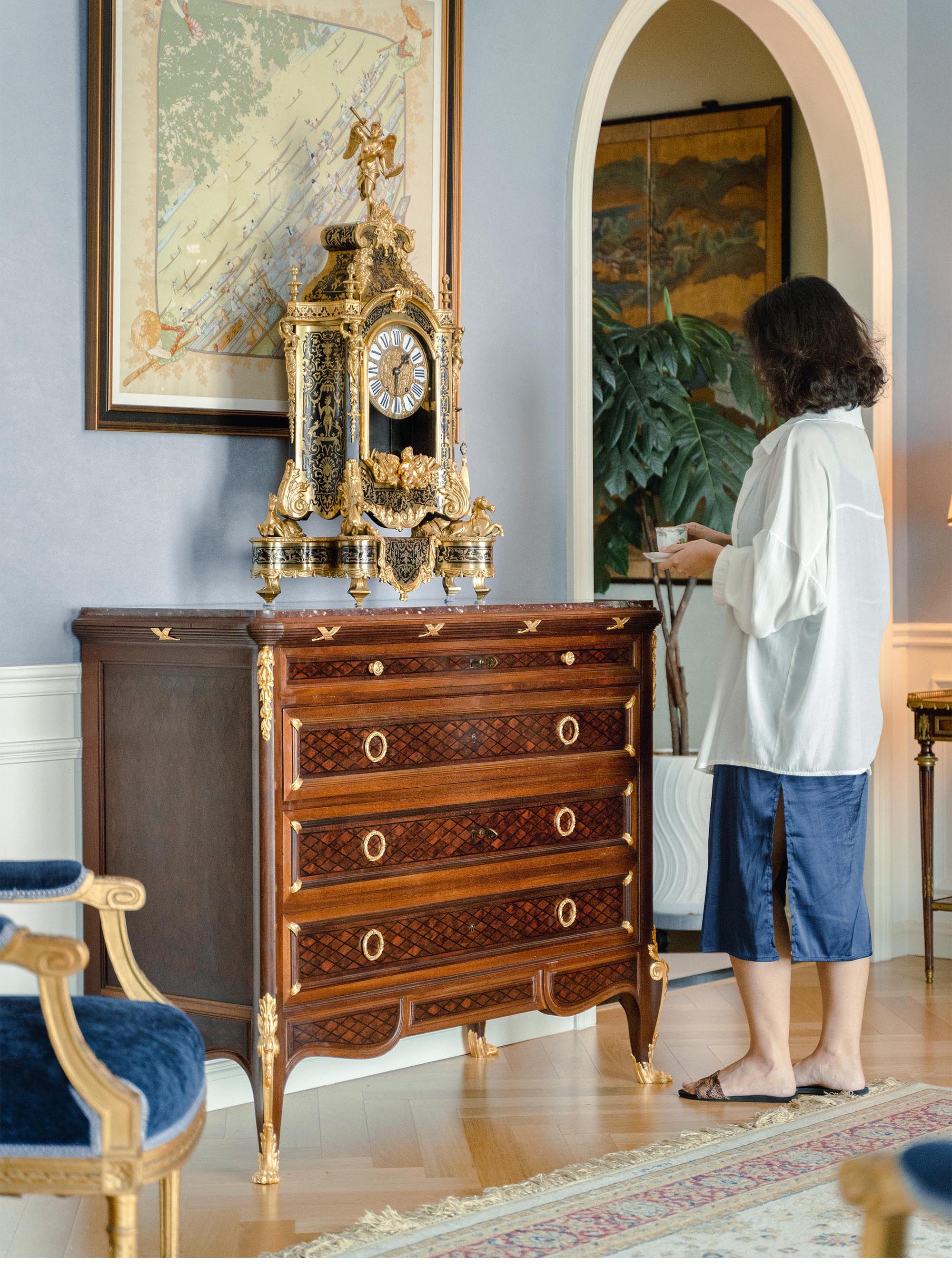 19世纪末法国出品路易十五风格铜鎏金雕饰大理石台面斗柜