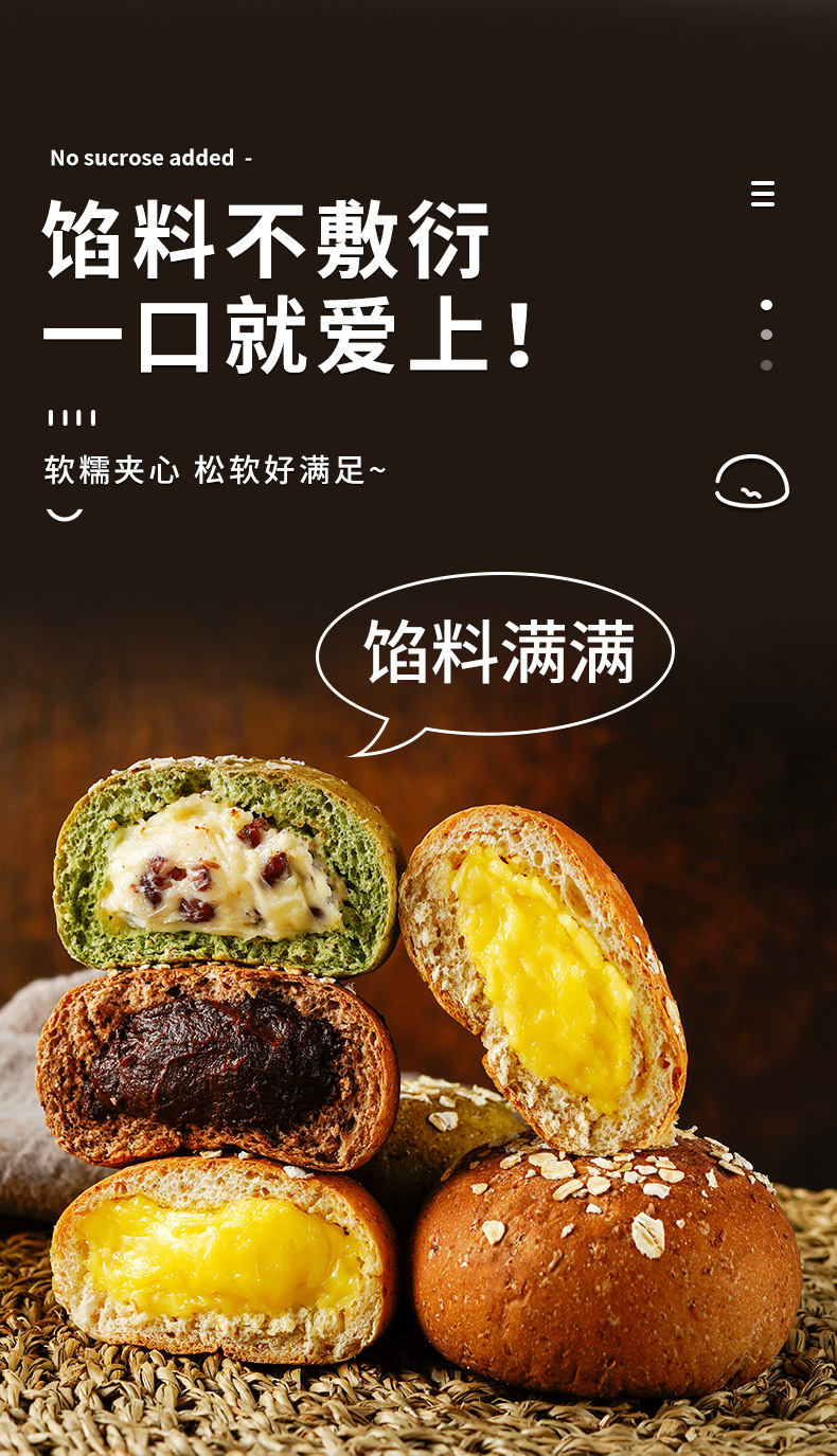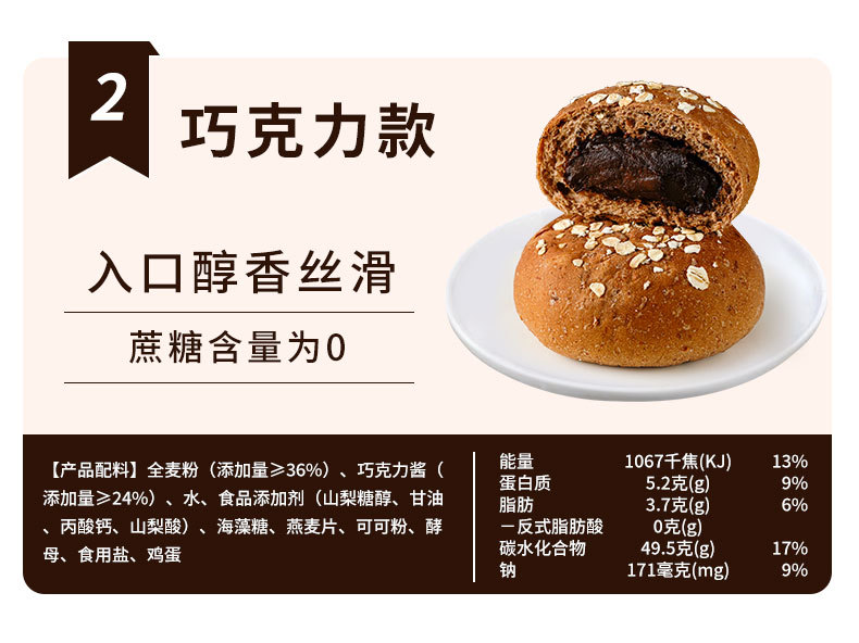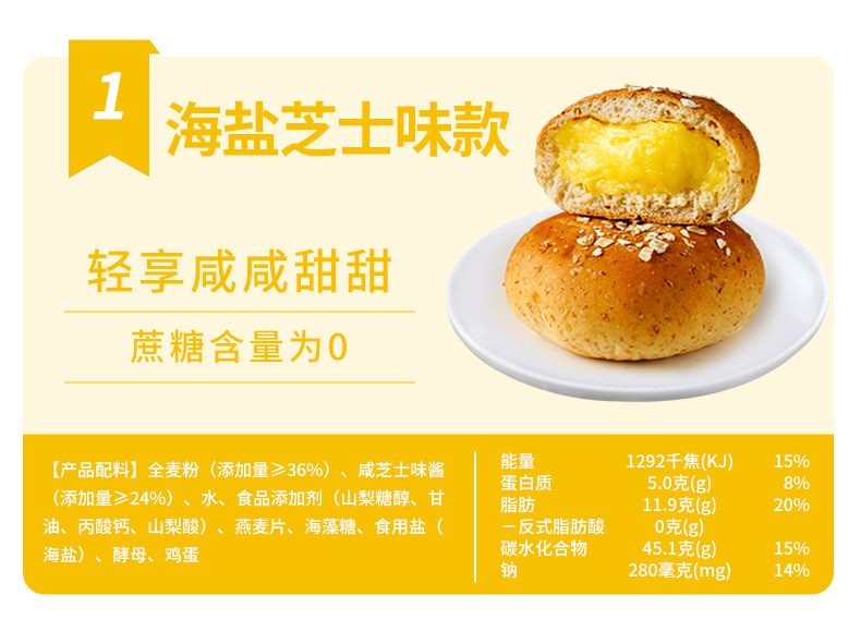 【馅料不敷衍!一口就爱上】多味夹心欧包 口感松软 代餐醇香丝滑 软糯夹心 不单独添加蔗糖全麦夹心面包欧包海盐芝士巧克力抹茶红豆奶酪味健康