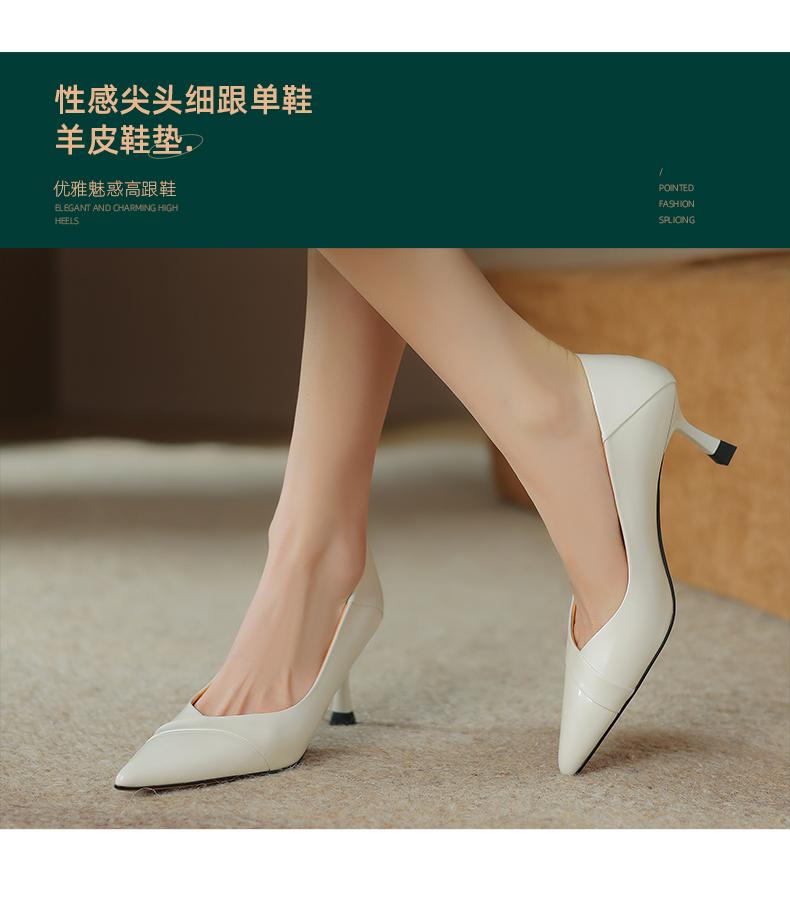 阿么手工女鞋小羊皮气质高跟鞋时尚细跟6.5CM简约百搭单鞋女春季