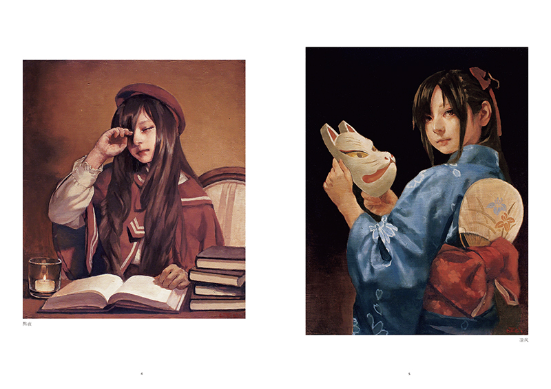 本书是日本著名美术团体“白日会”当红画家今井乔裕近10年来的第1本画集。今井乔裕的作品,乍一看以为是电脑板绘,其实是真正的纯手绘油画。他的作品,大多以少女为主,女仆装手持一些道具,犹豫的眼神,很像电脑插画。其实,他的这种风格还是属于人物写实的。这样的画作看似简单,但整体色彩关系的掌控,光影虚实都须很深的功底。