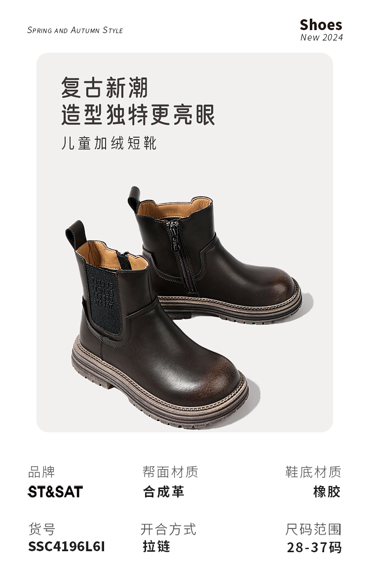 【童鞋】星期六复古简约软底绒里切尔西短靴SSC4196L6I