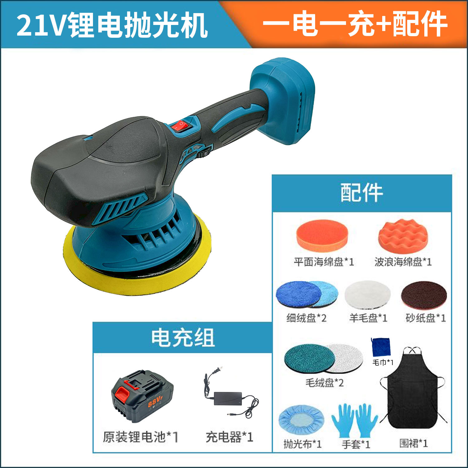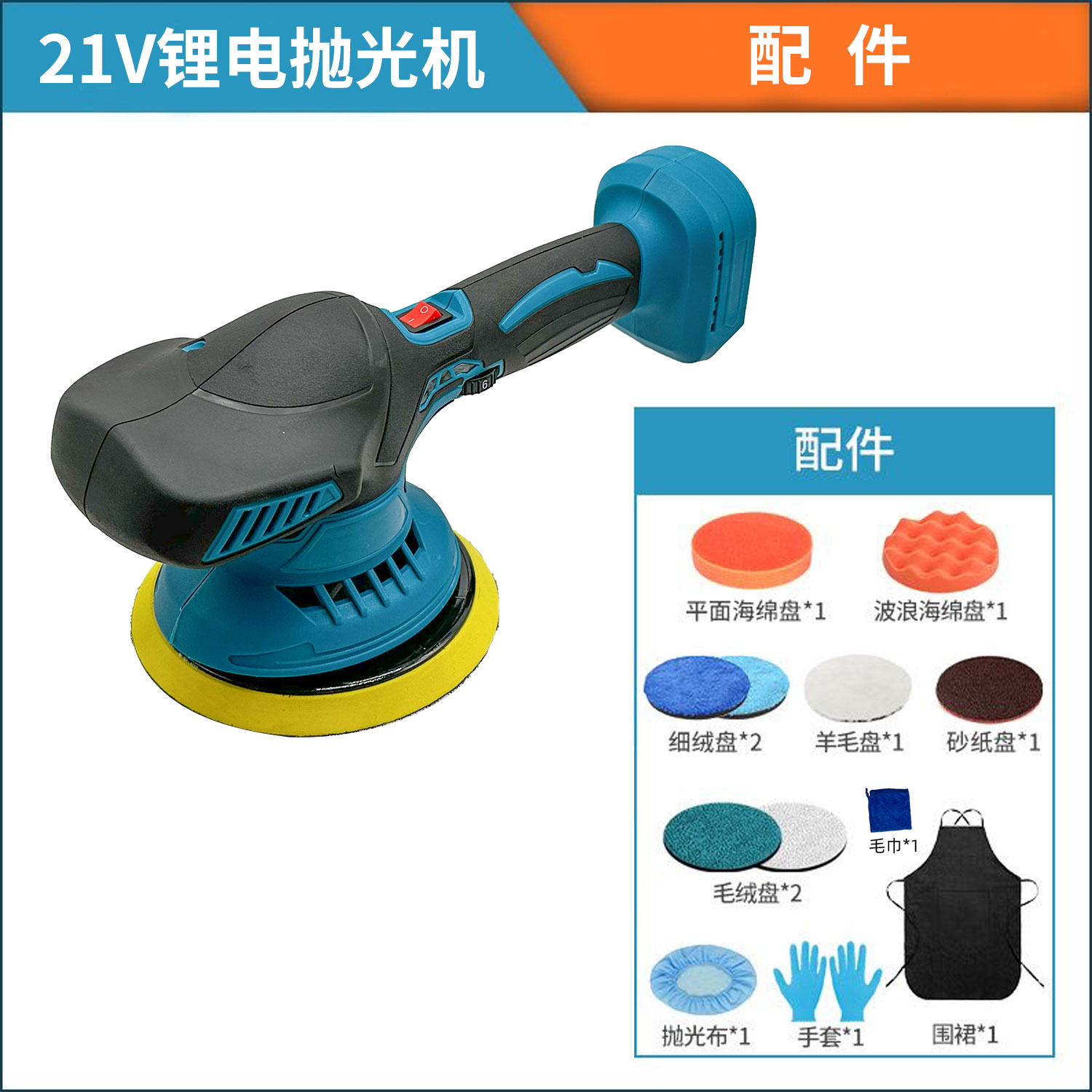 【货号010083】6寸牧田插脚21V锂电汽车抛光机汽车美容打磨机打蜡神器大理石抛光偏心抛光器