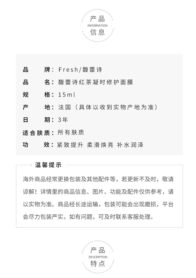 【99任选3件】Fresh馥蕾诗红茶凝时修护面膜 涂抹式面膜 白/黑罐面膜15ml中小样