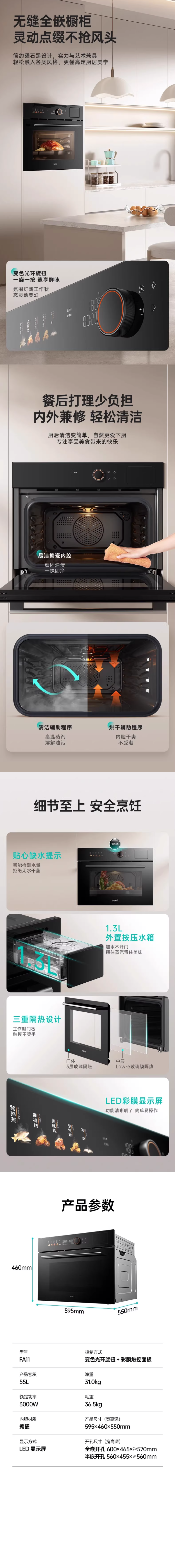 华帝(510878)FA11蒸烤一体机55升炸炖蒸烤箱变频嵌入式家用