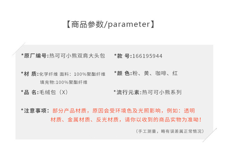 热可可小熊双肩大头包毛绒包-纪念日百货门店同款166195944
