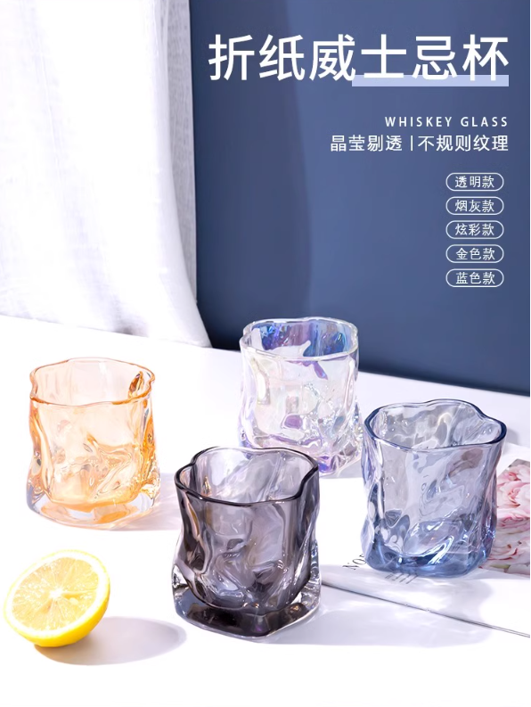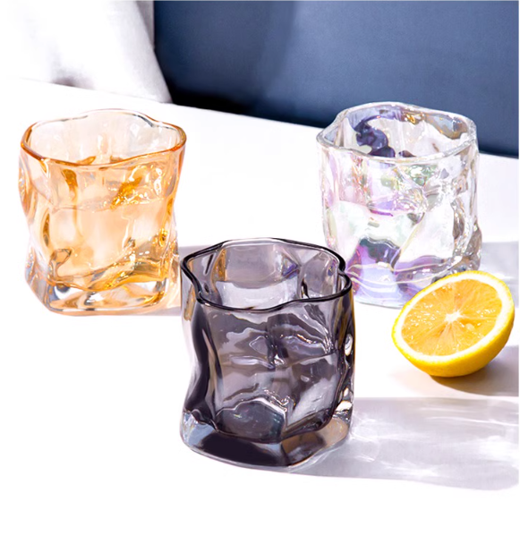 ins风不规则玻璃杯 威士忌酒杯小众高级感家用水杯咖啡牛奶扭扭杯折纸杯子女3.181