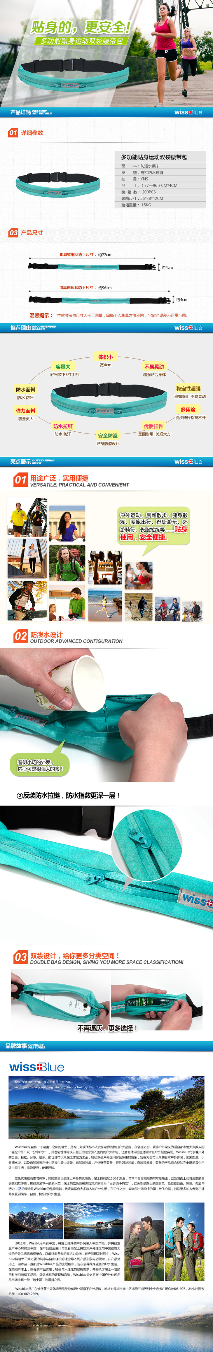维仕蓝 WISSBLUE 多功能贴身运动双袋腰带包TG-WB1065 蓝色