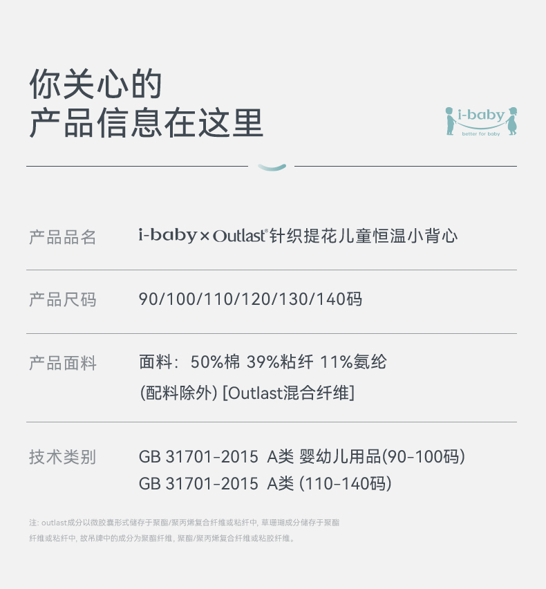 【2026春夏新品69元任选2件】ibaby×outlast太空科技恒温 天然银抑菌防螨小背心