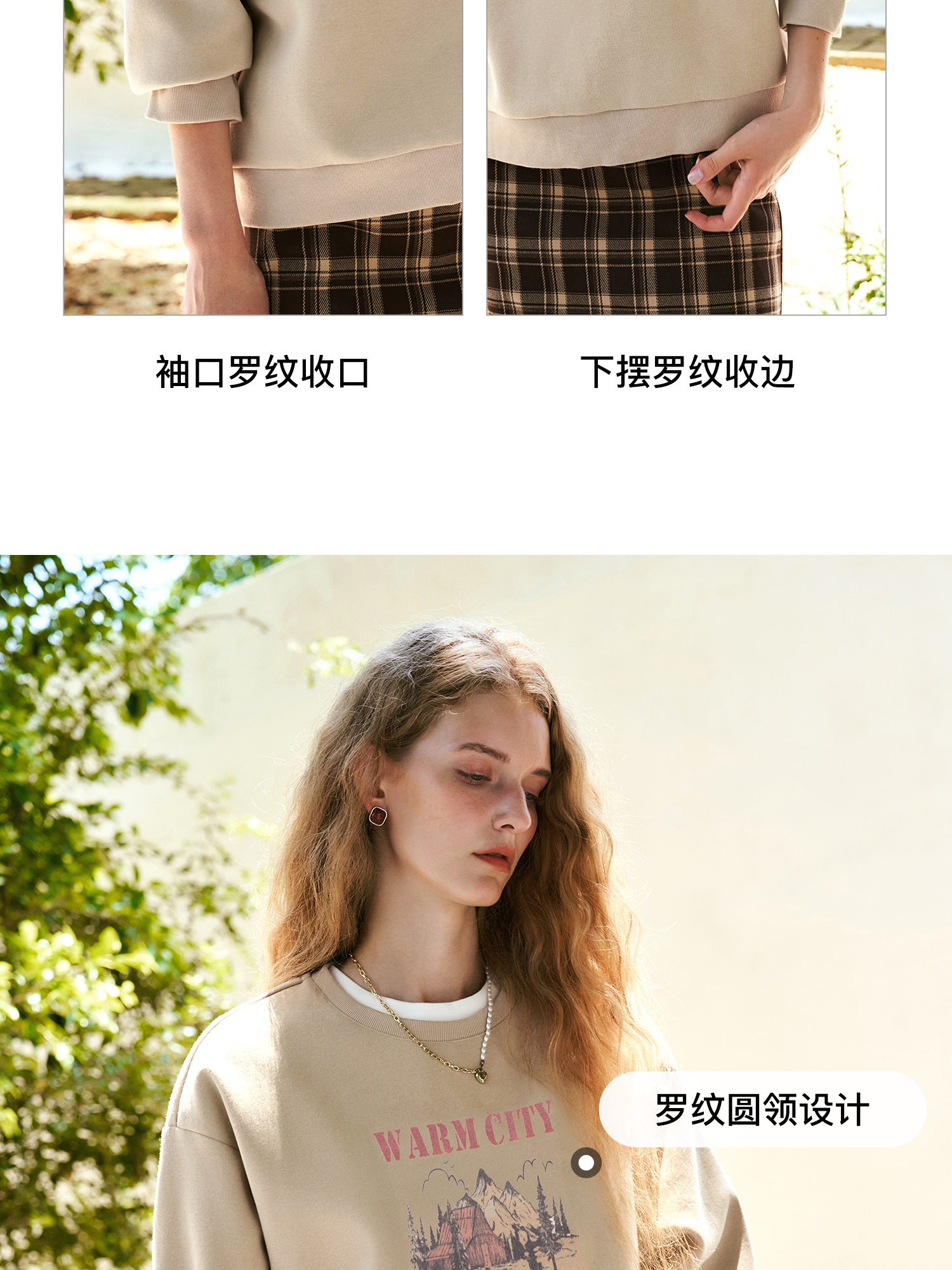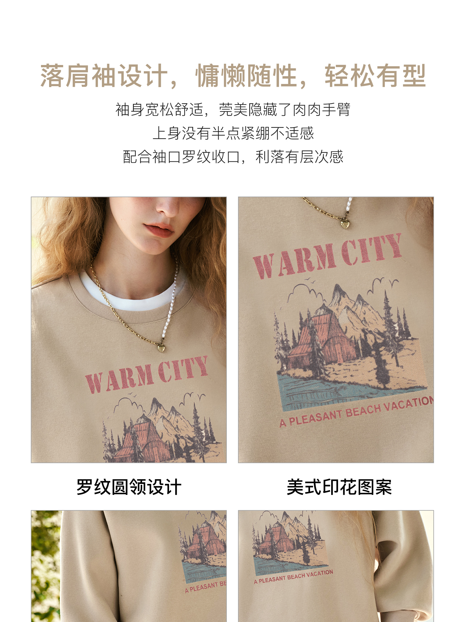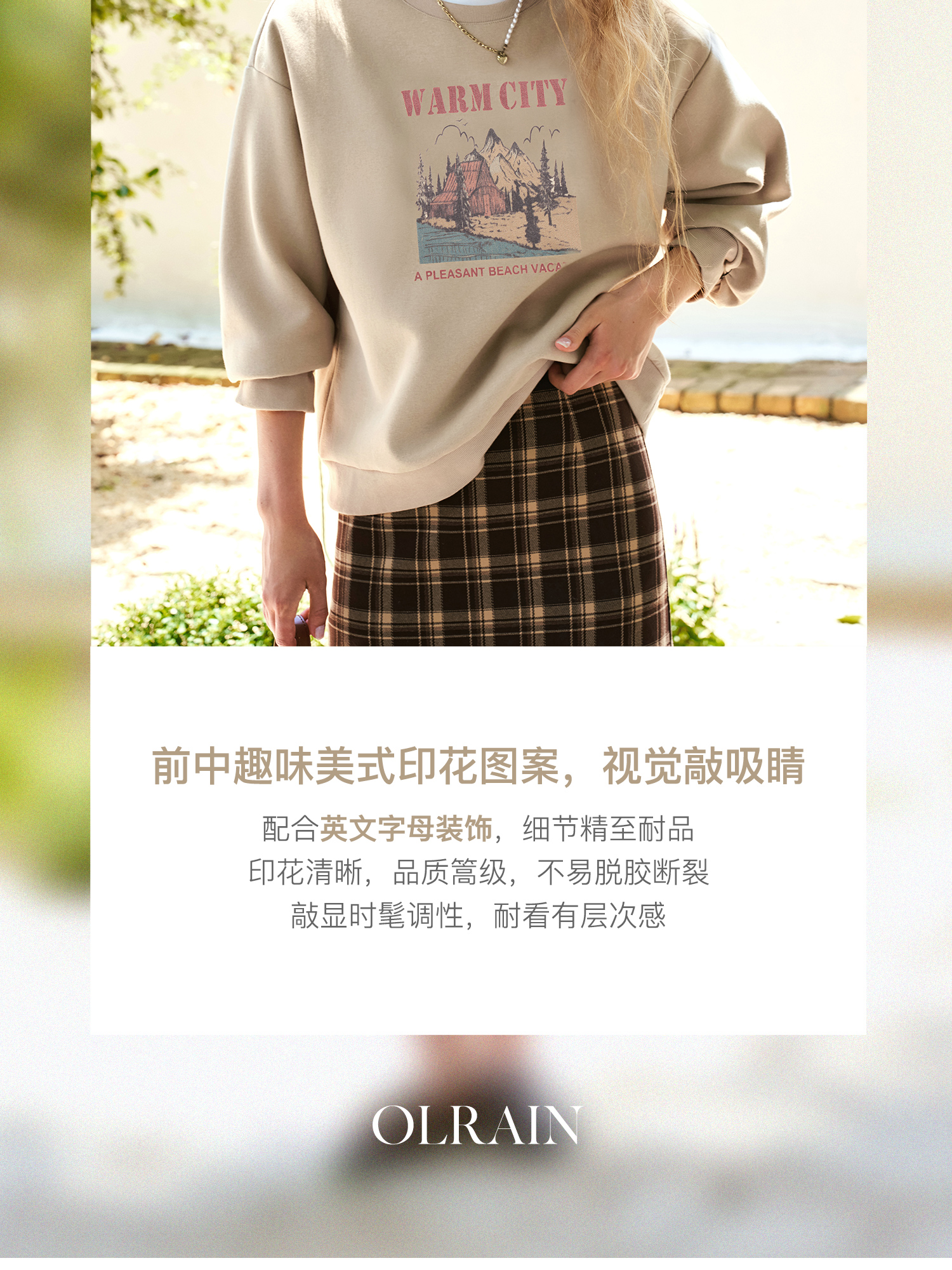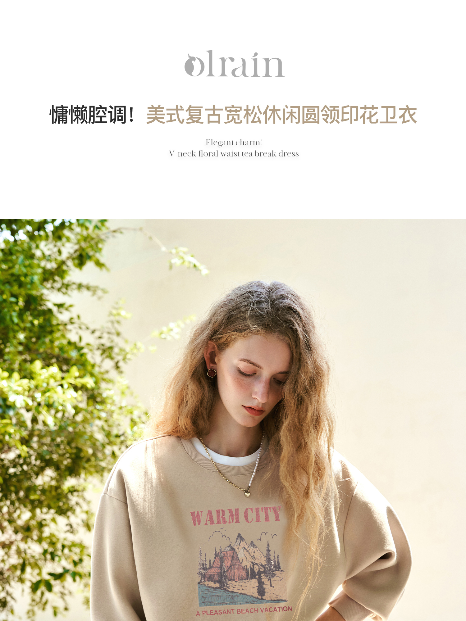 OLrain欧芮儿美式圆领卫衣女秋季2024年新款复古宽松休闲印花上衣