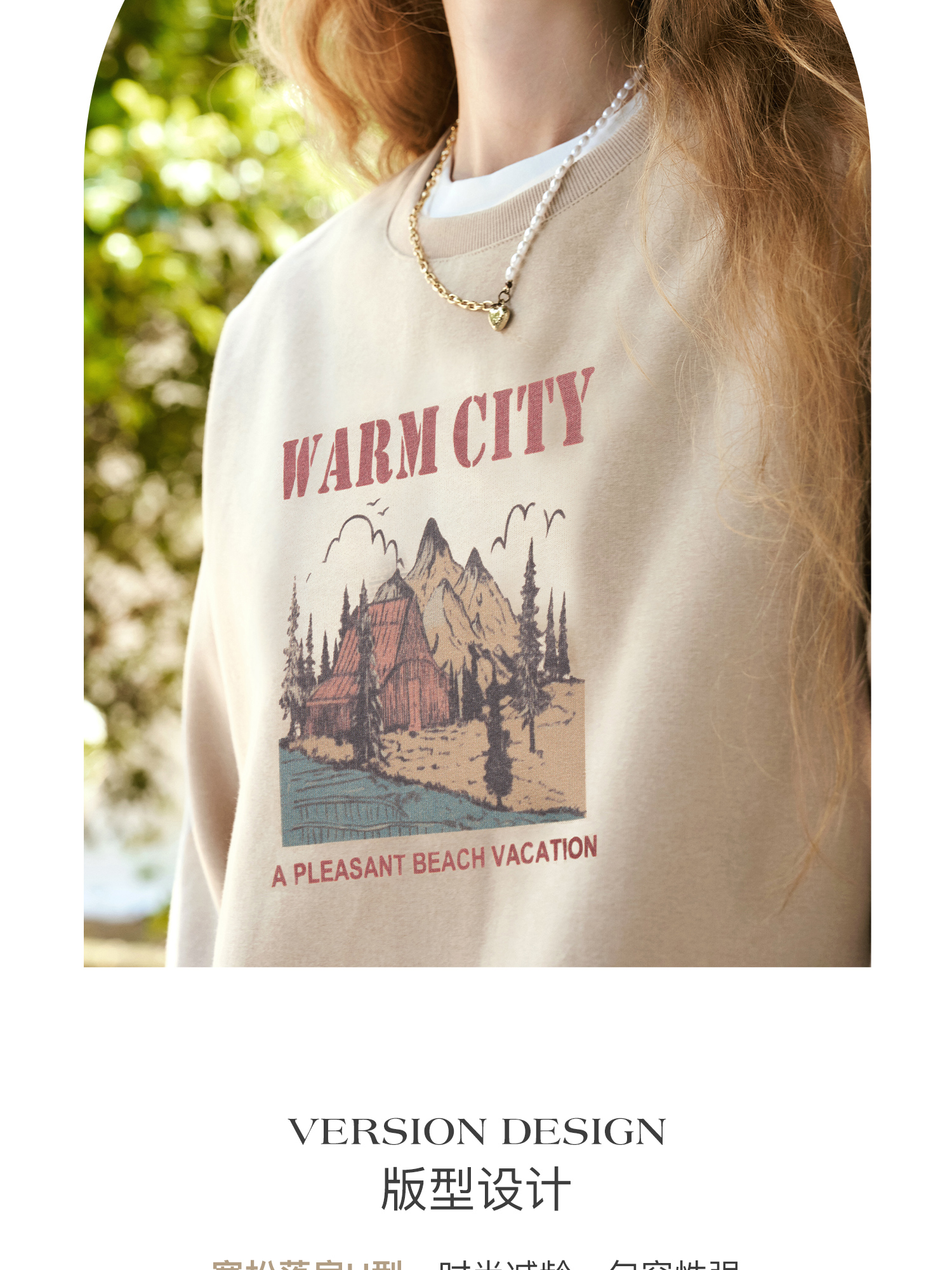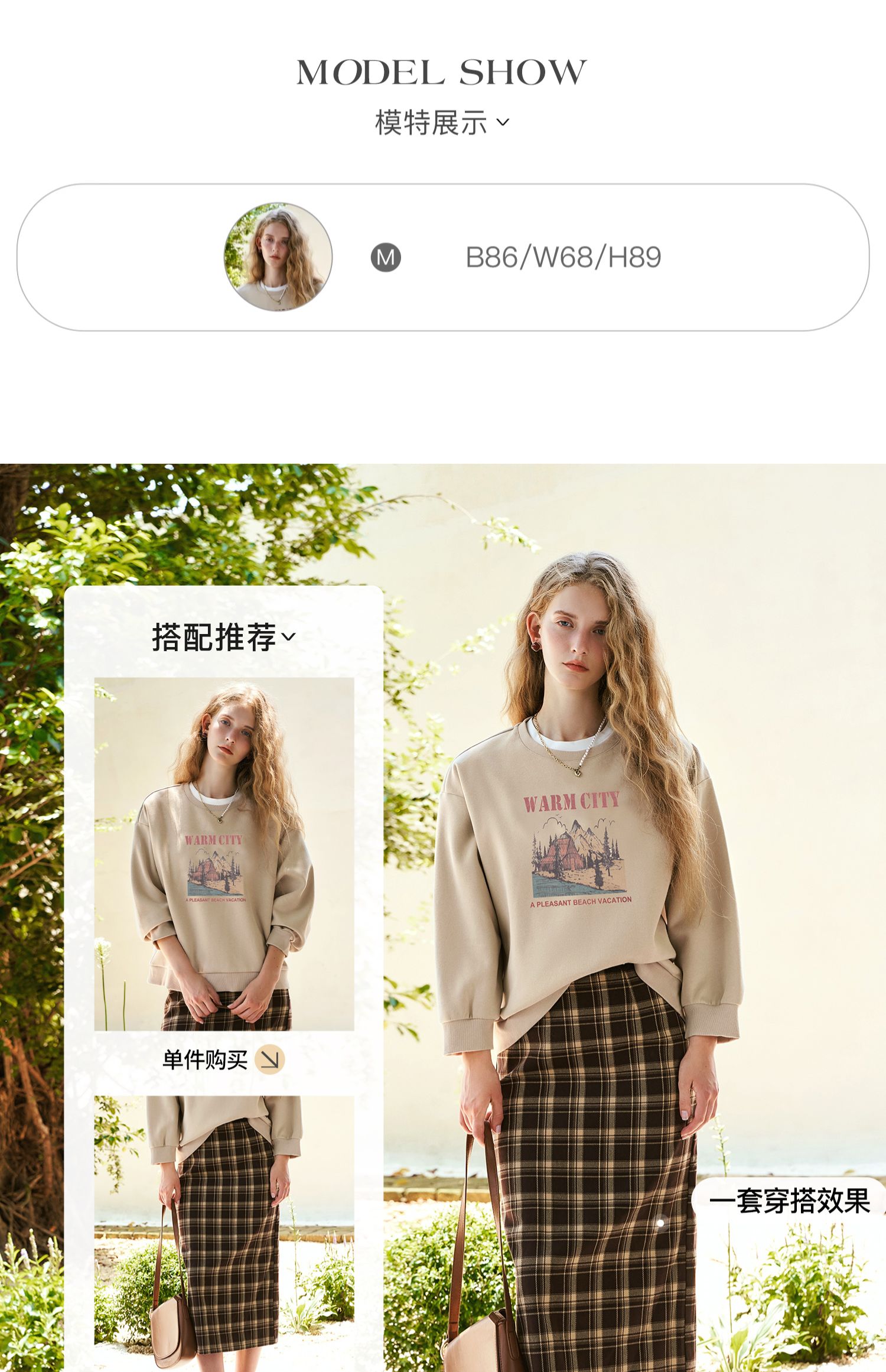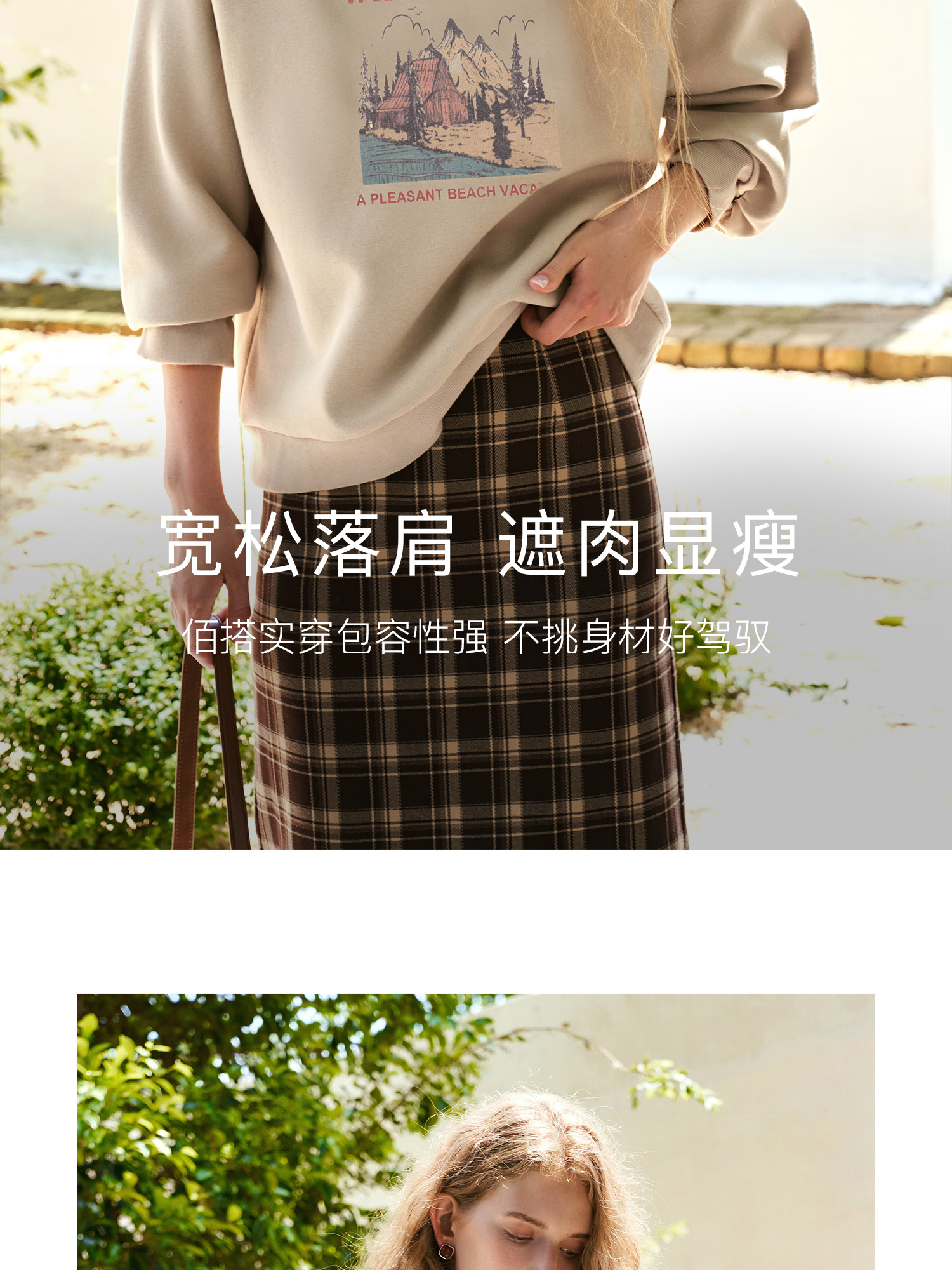 OLrain欧芮儿美式圆领卫衣女秋季2024年新款复古宽松休闲印花上衣