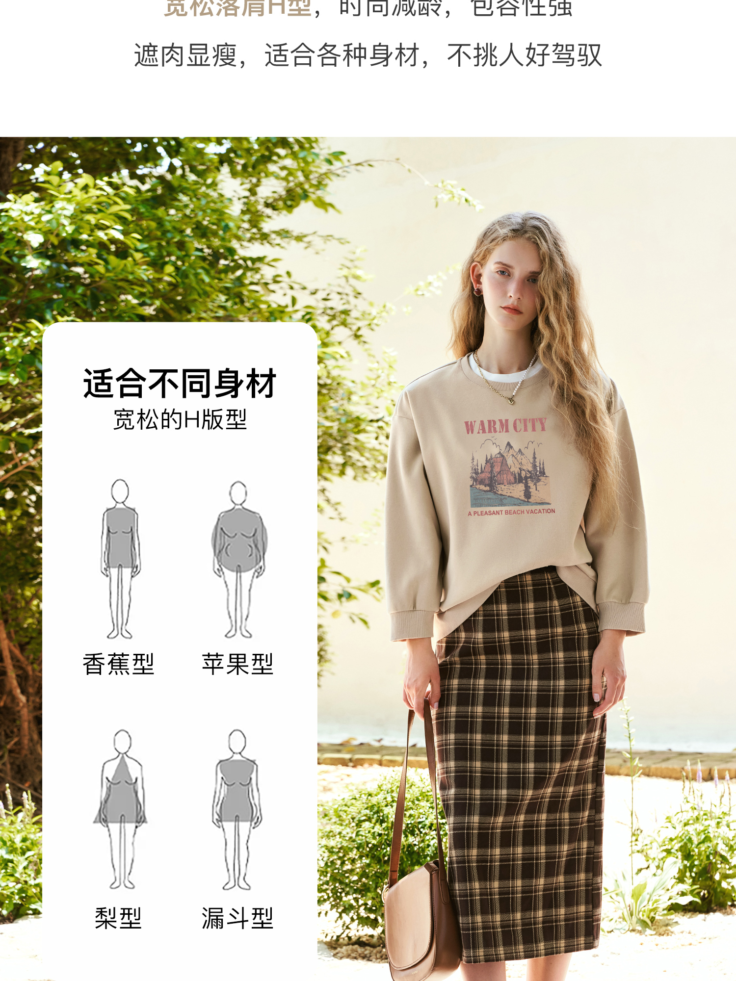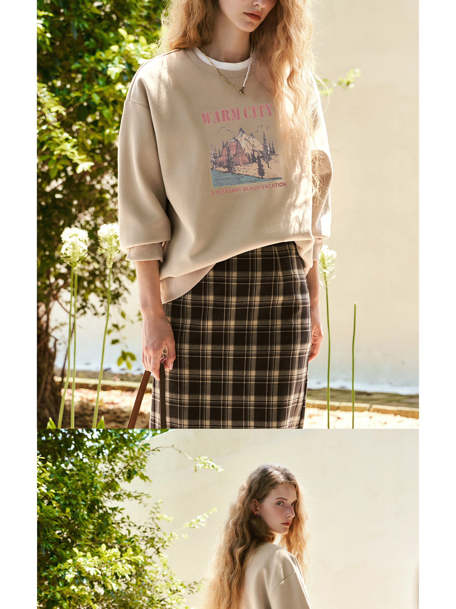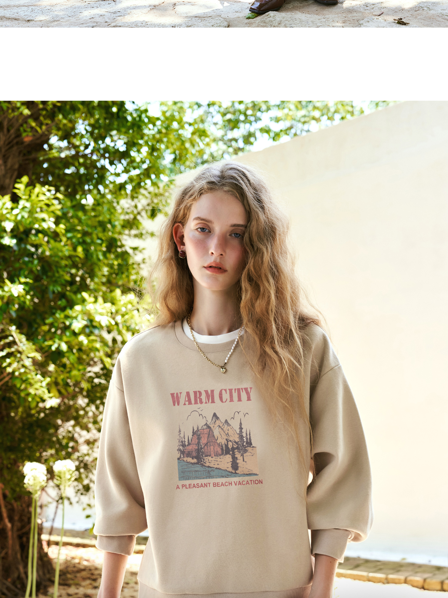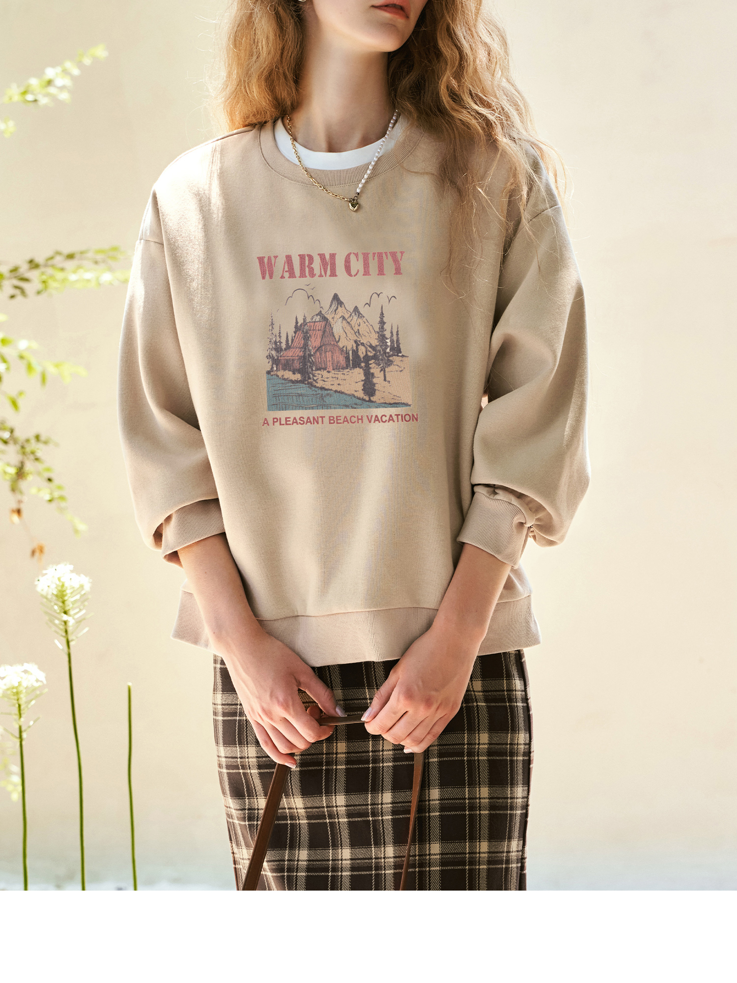 OLrain欧芮儿美式圆领卫衣女秋季2024年新款复古宽松休闲印花上衣