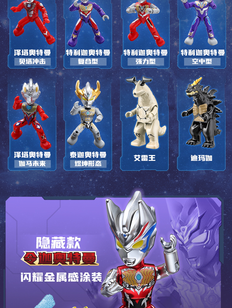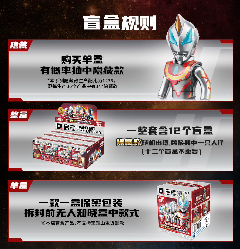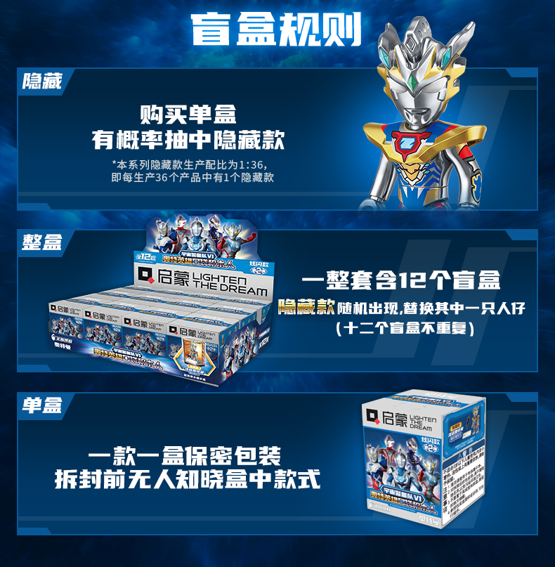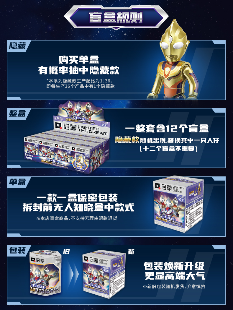 【启蒙】口袋积木人特利迦奥特曼盲盒正品儿童拼装益智玩具