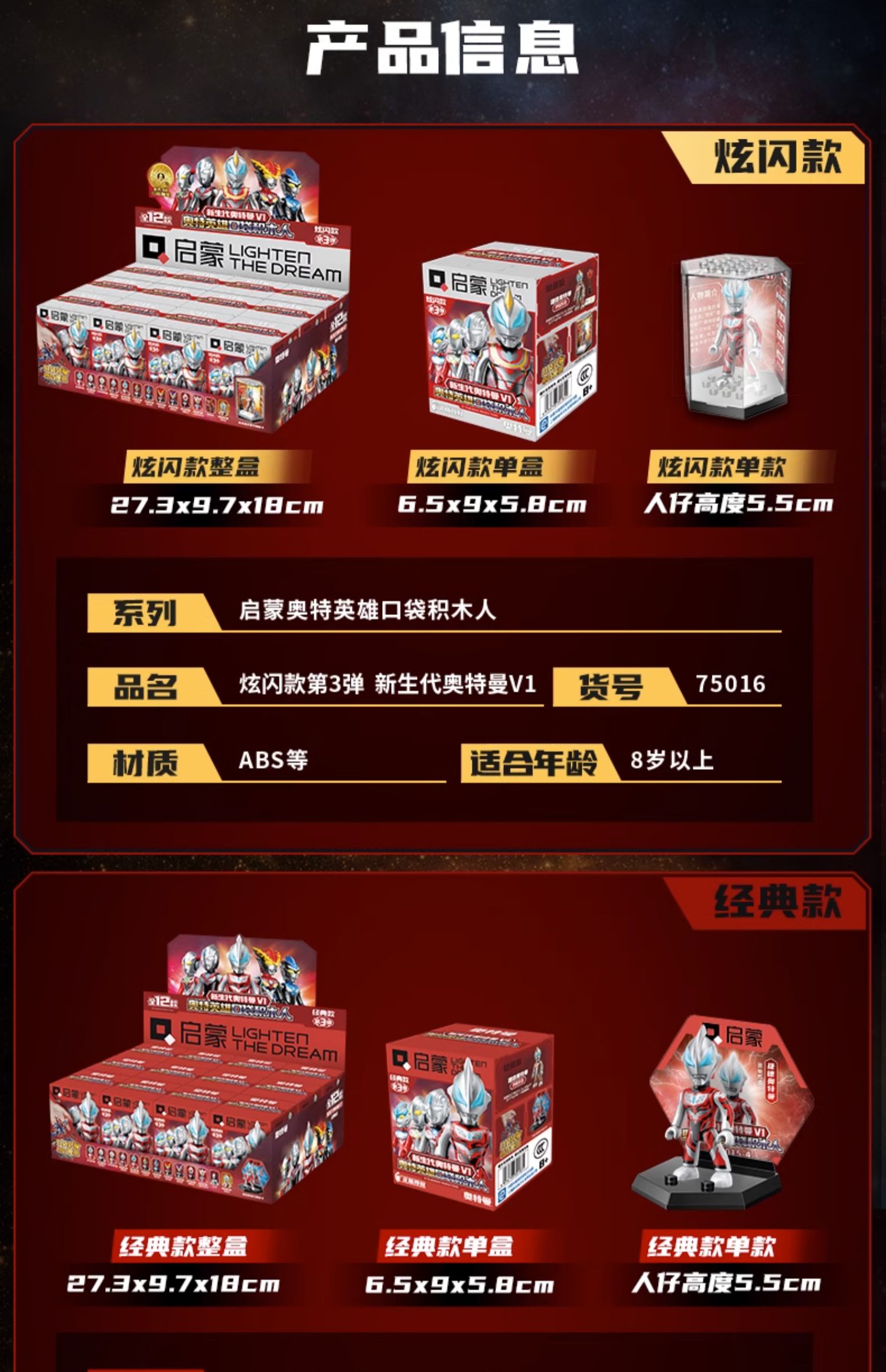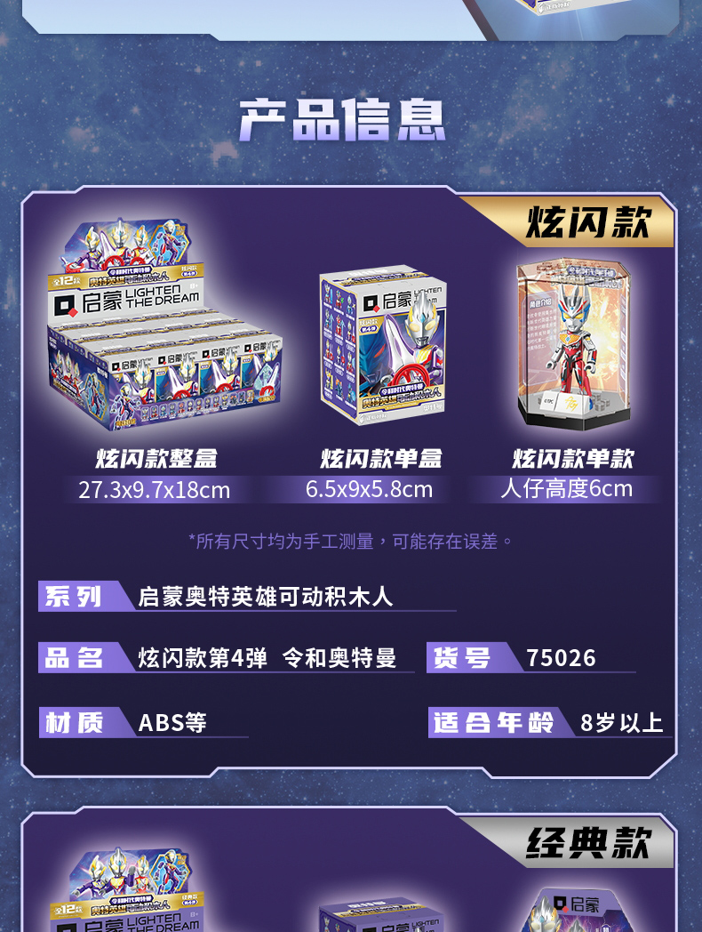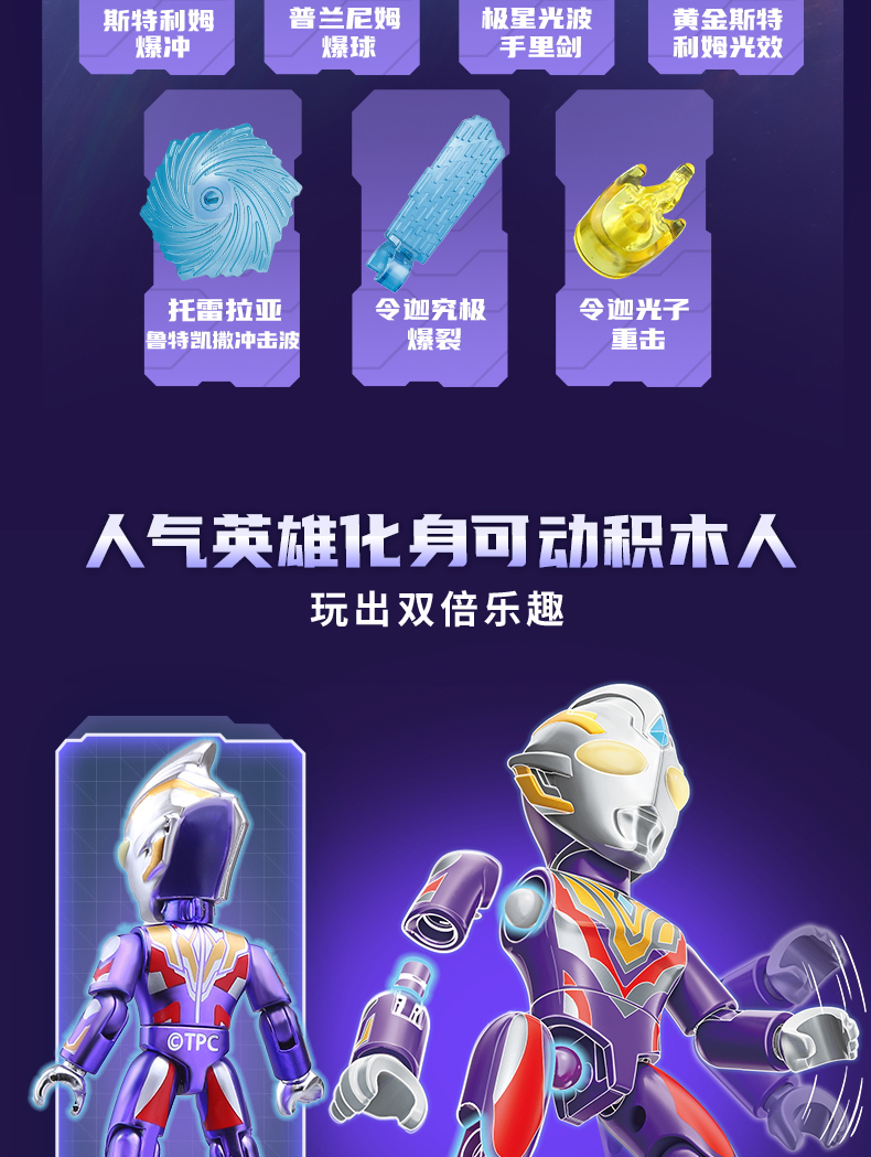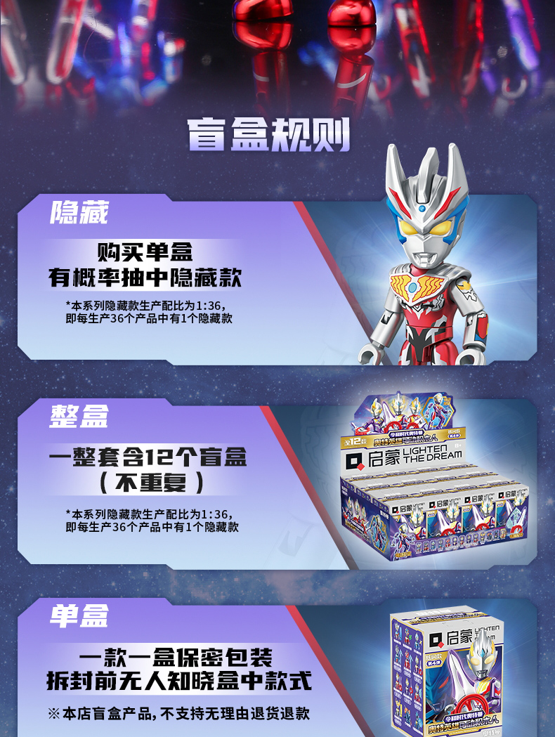 【启蒙】口袋积木人特利迦奥特曼盲盒正品儿童拼装益智玩具