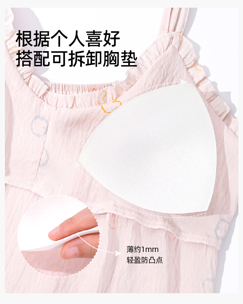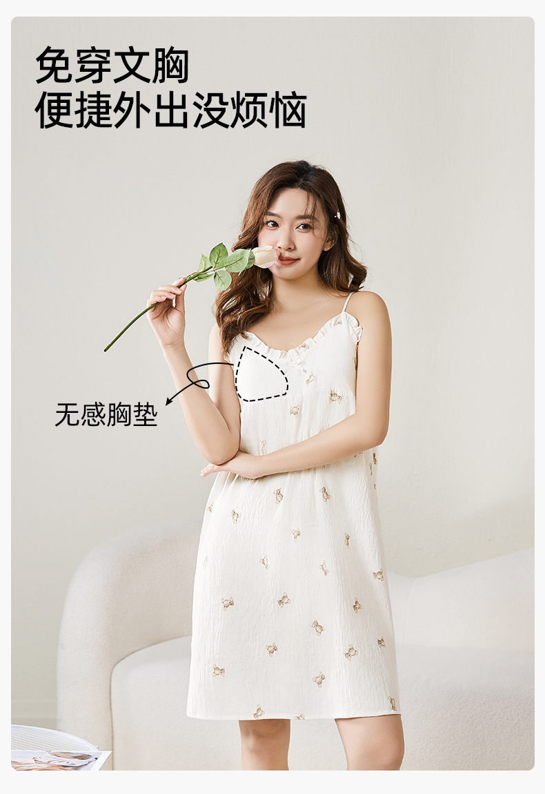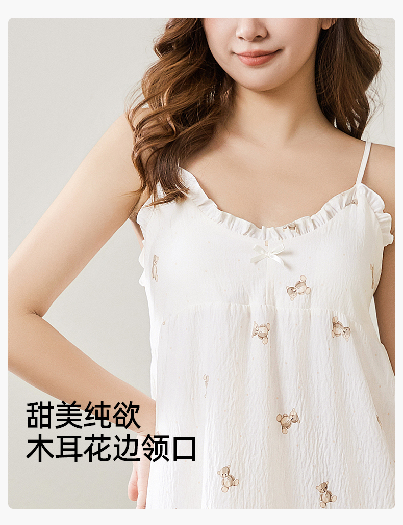 熳洁儿 带胸垫性感睡裙防走光泡泡棉甜美吊带裙家居服24253003