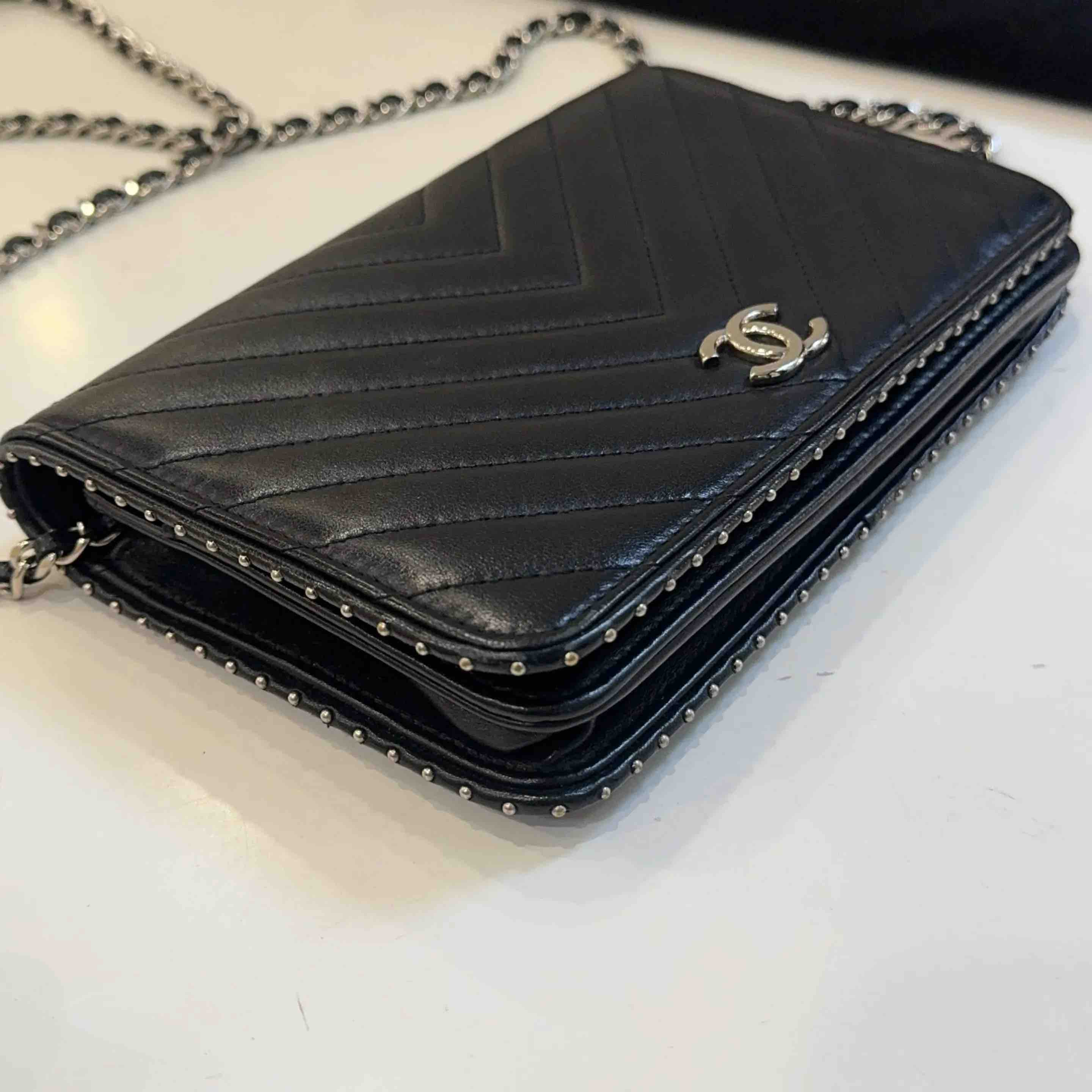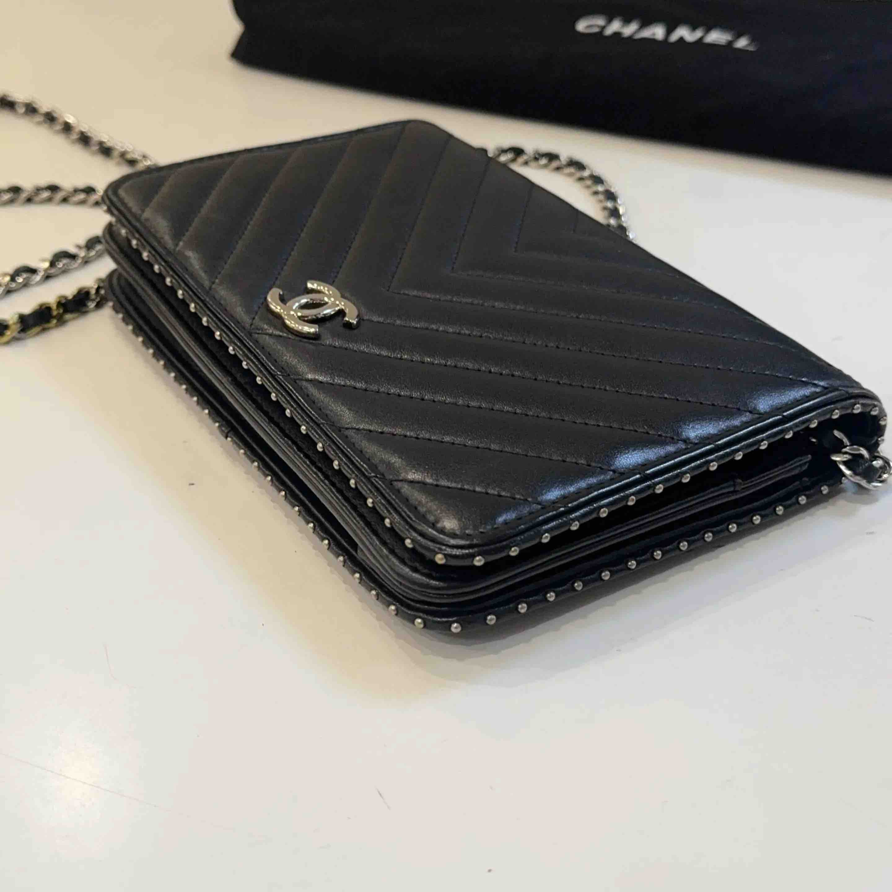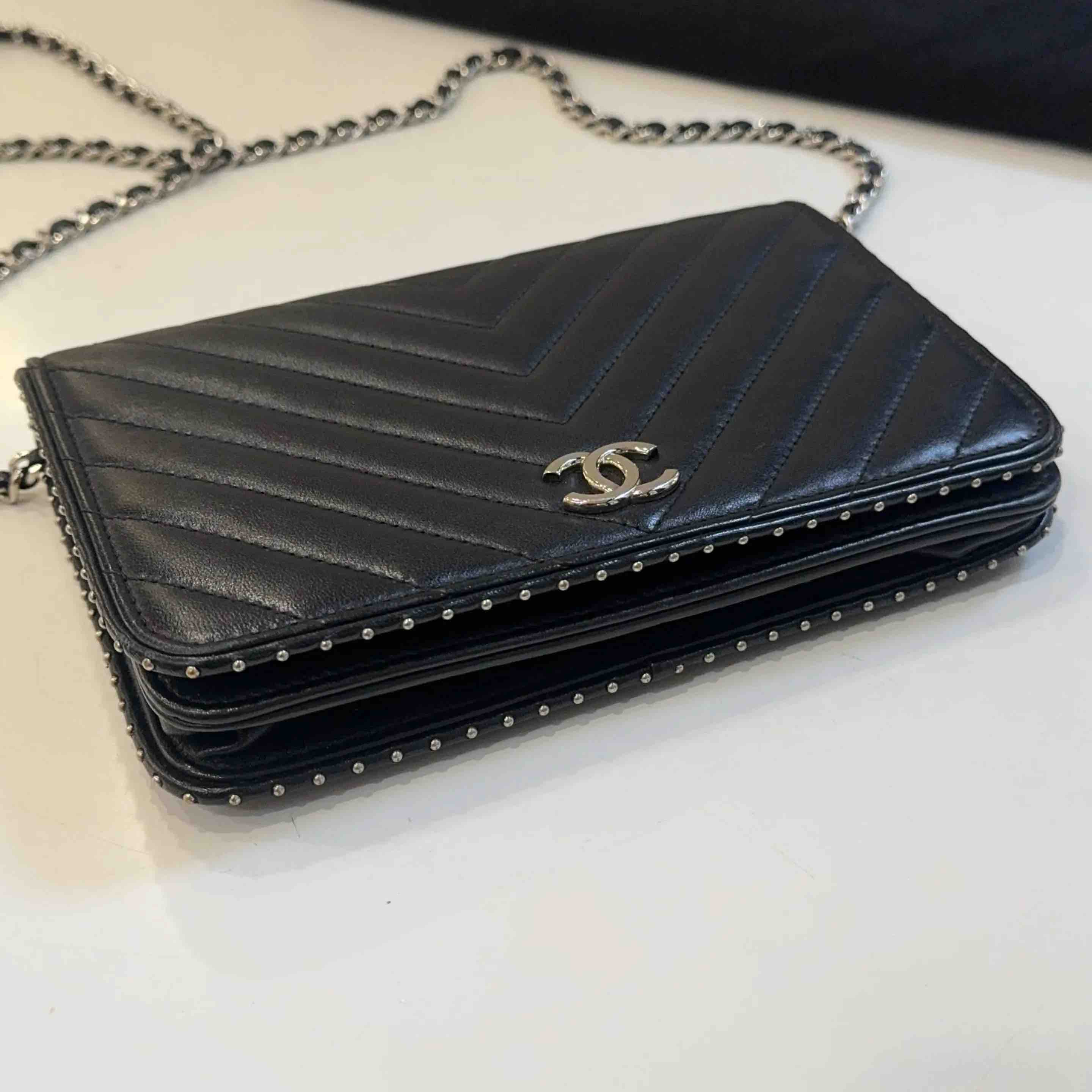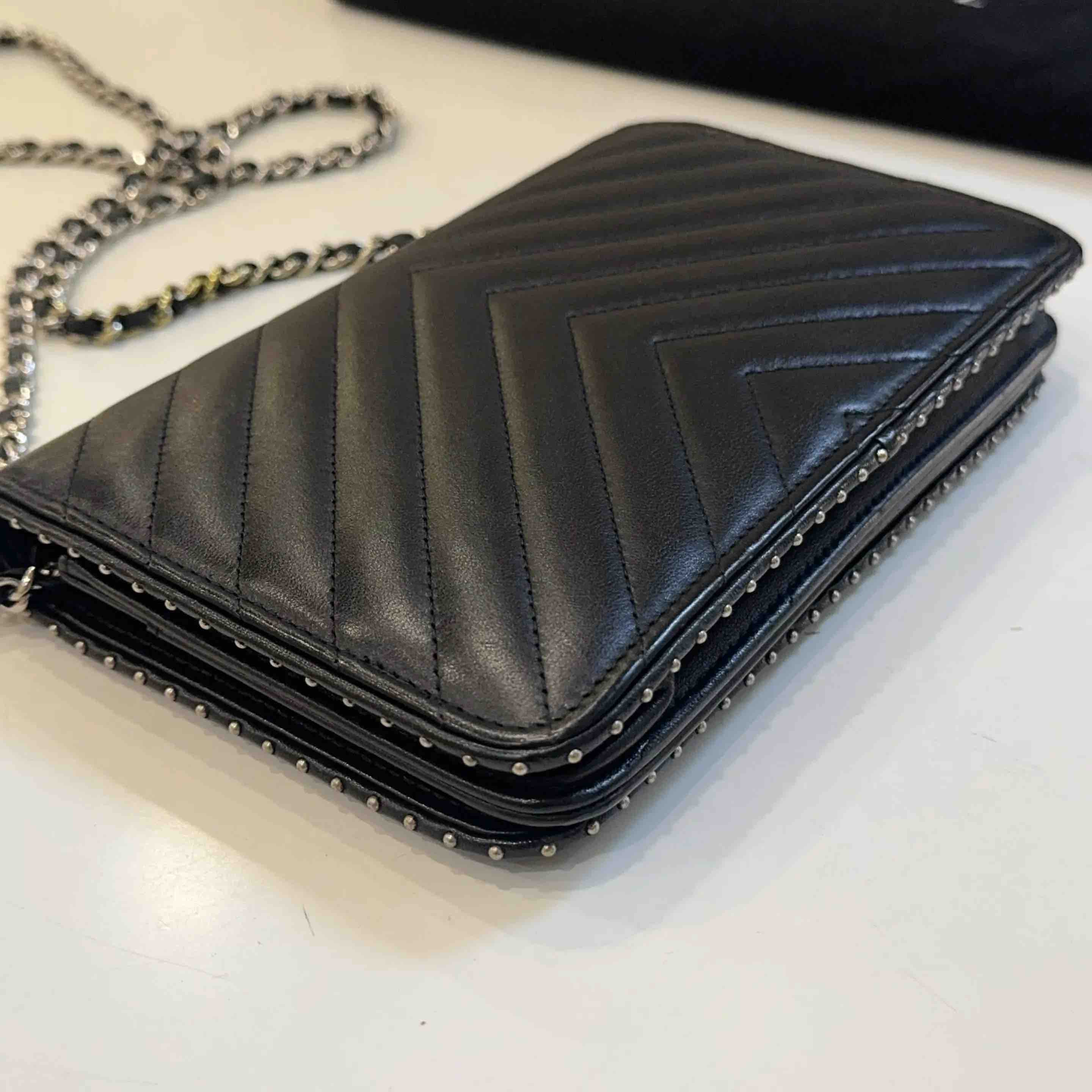 Chanel V纹 铆钉 Woc 链条包
