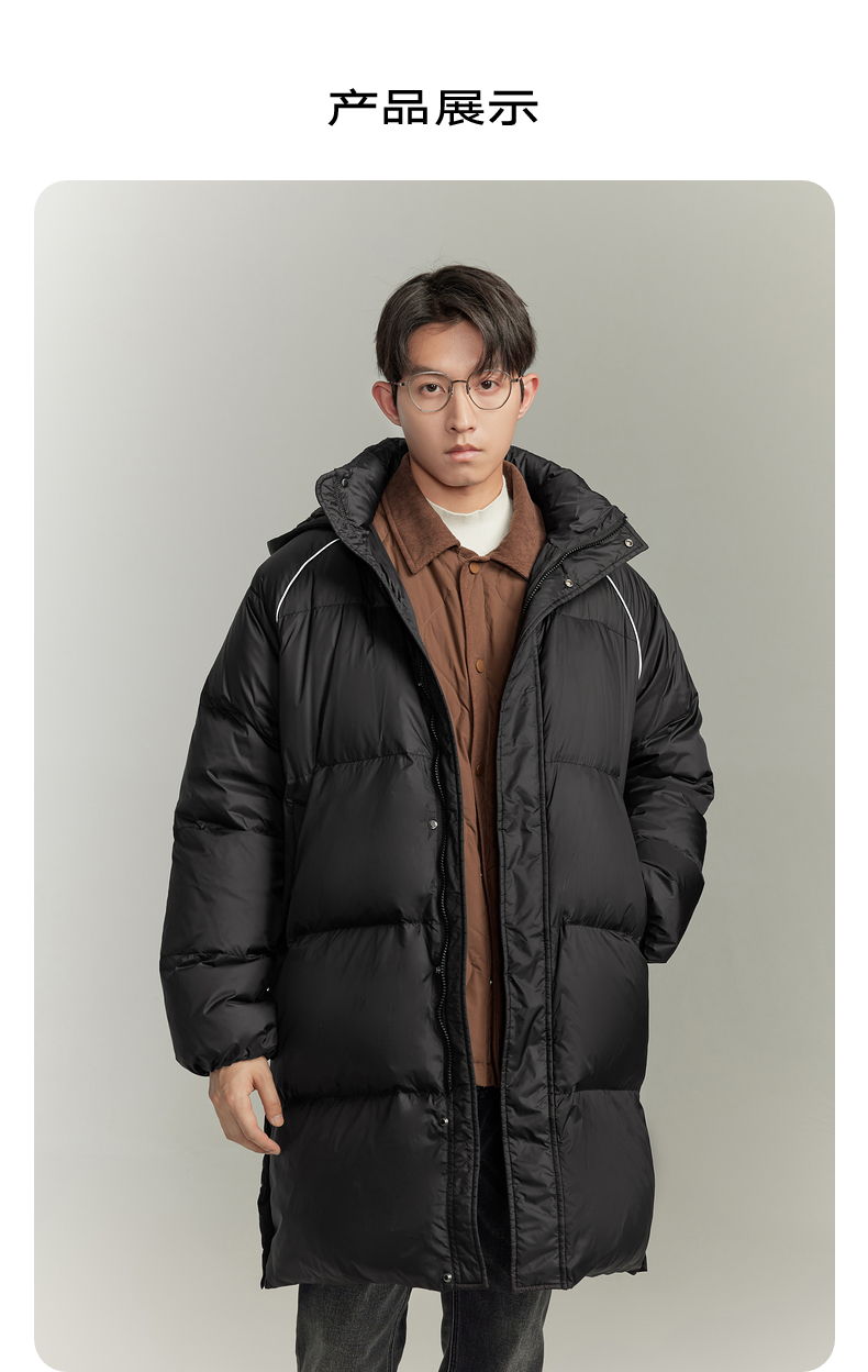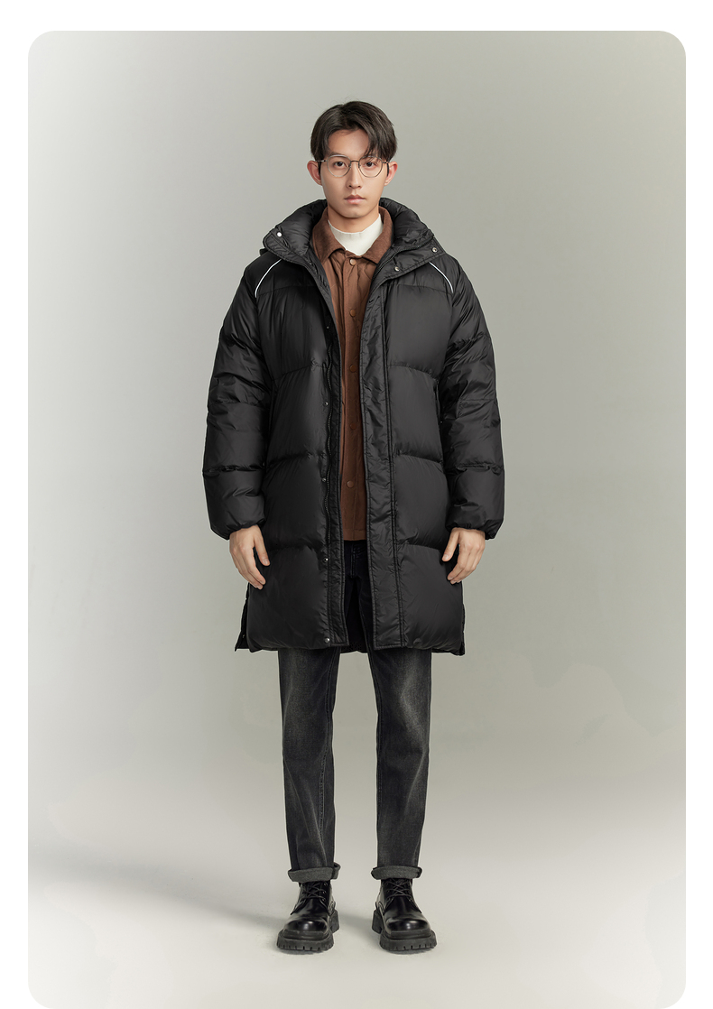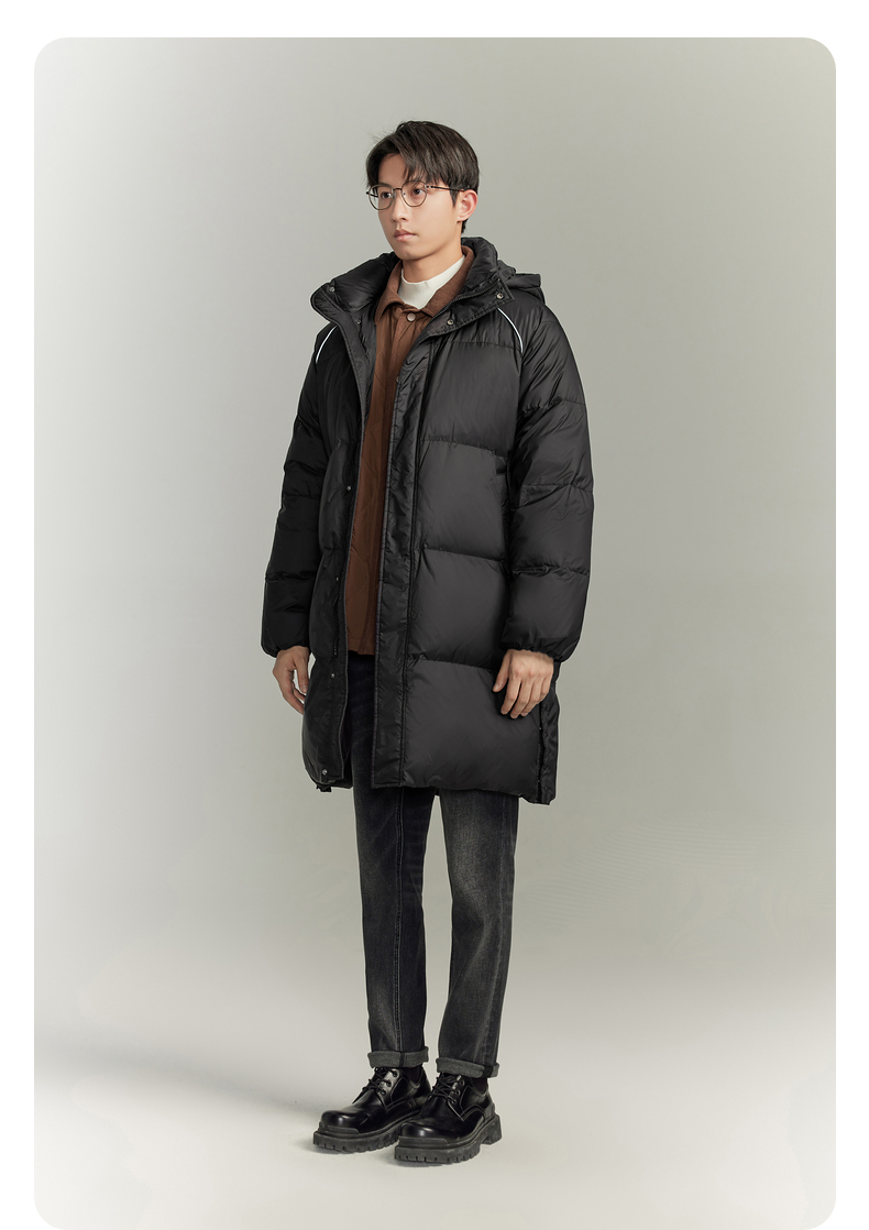 GXG撞色休闲简约连帽羽绒服保暖鸭绒长款羽绒服男 冬季热卖